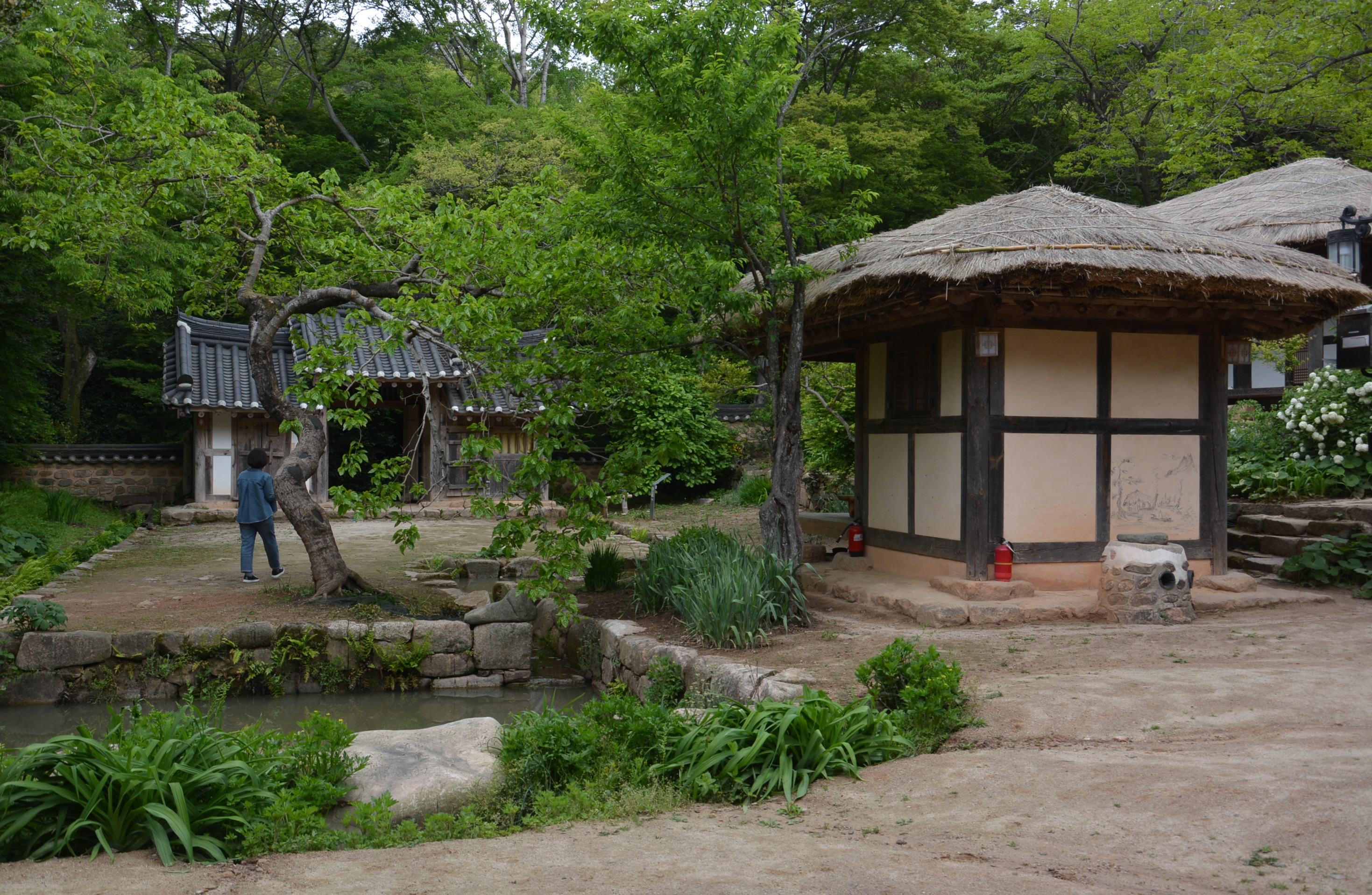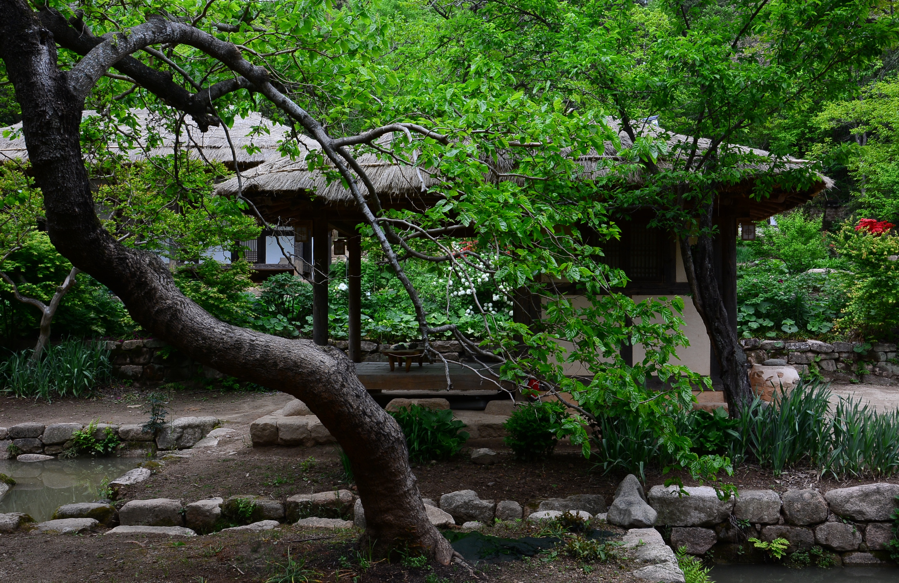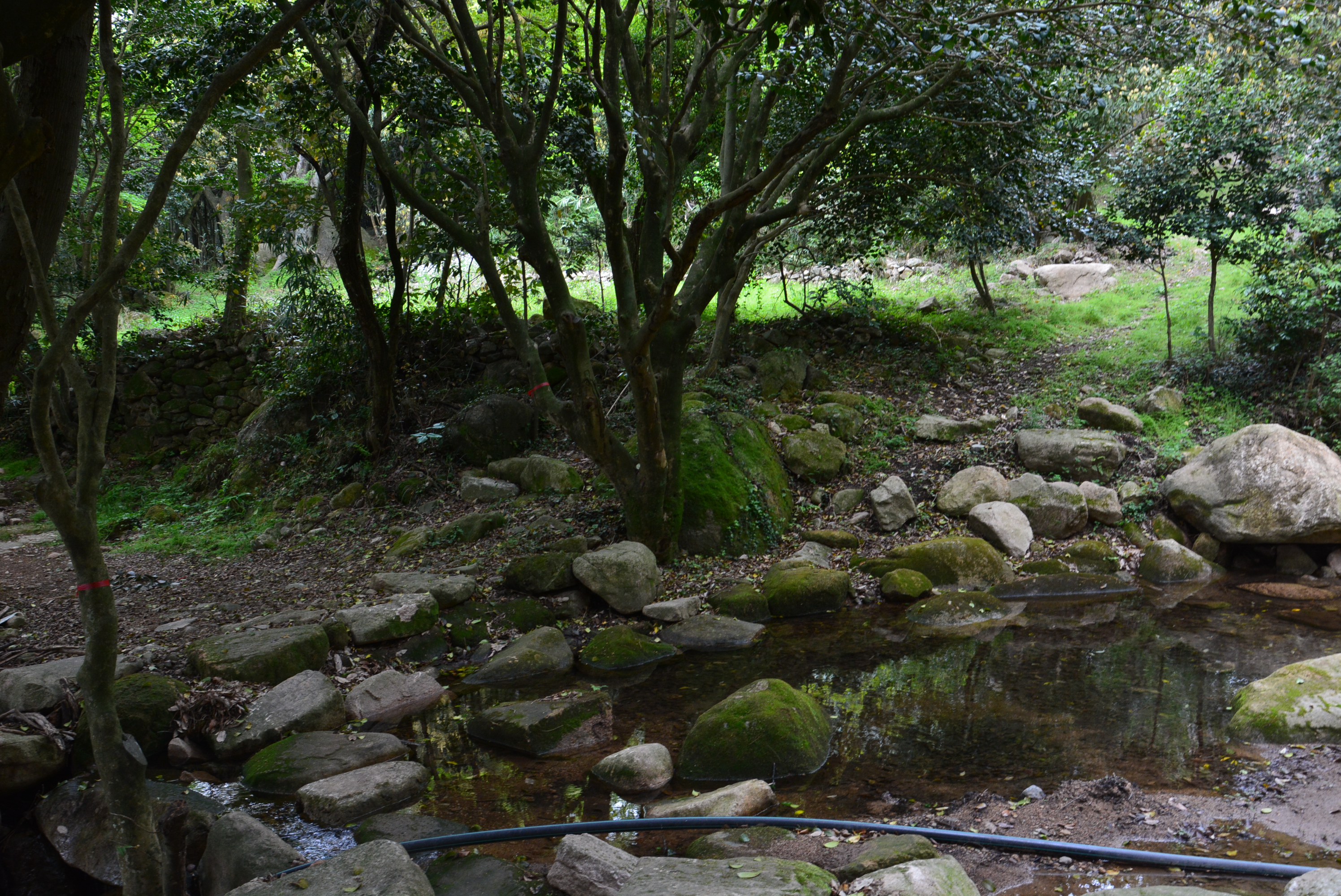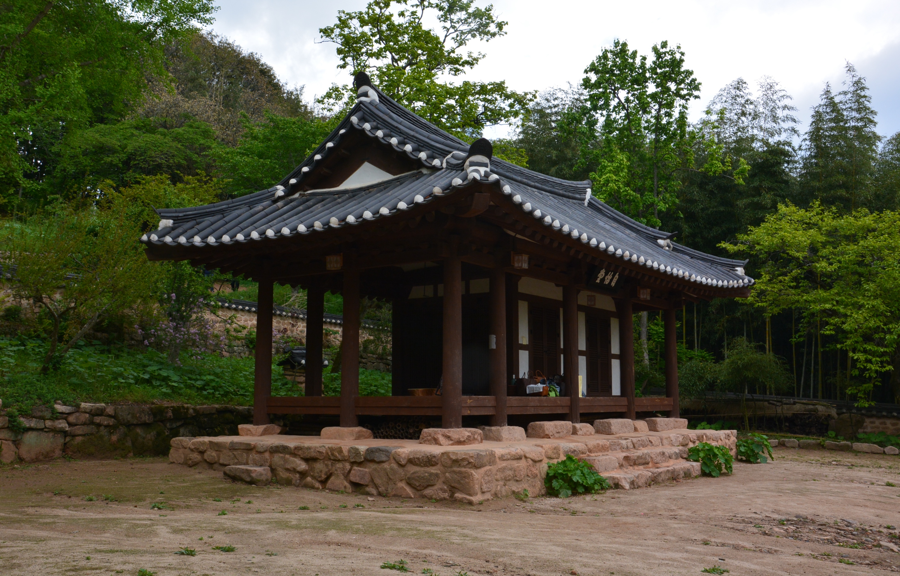이곳 정자 앞 마당엔 각진 직선형태의 유상곡수가 있다.