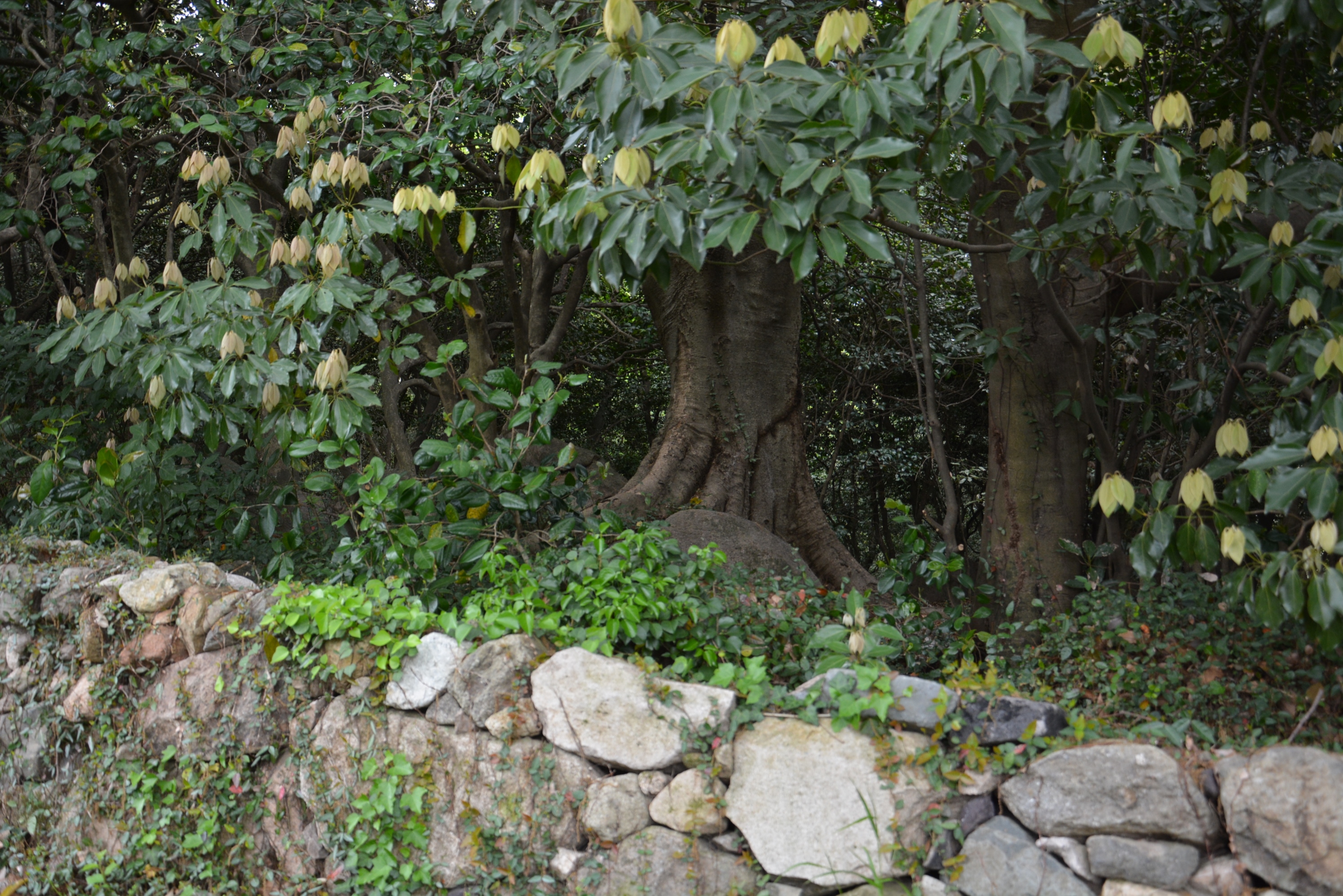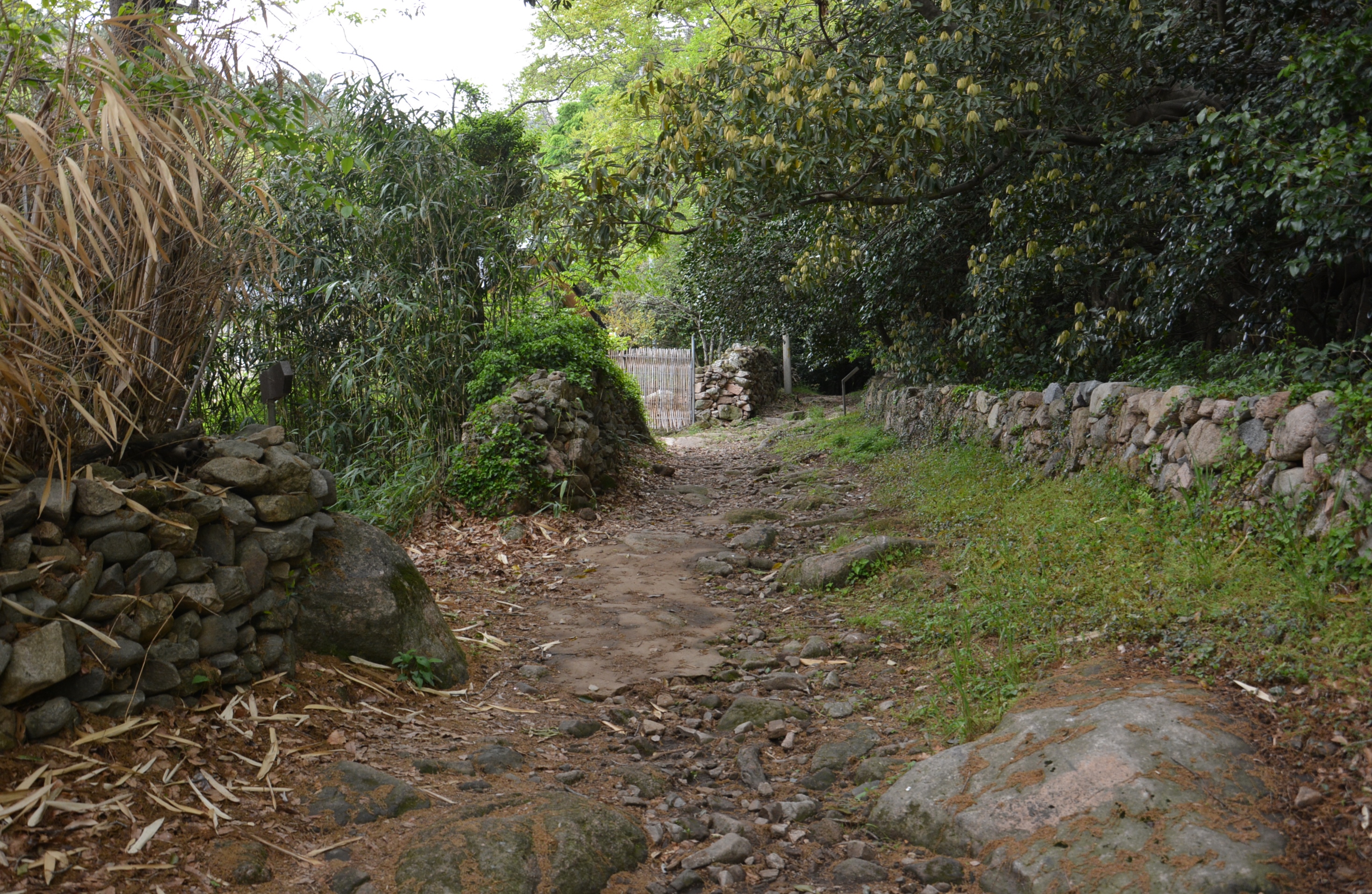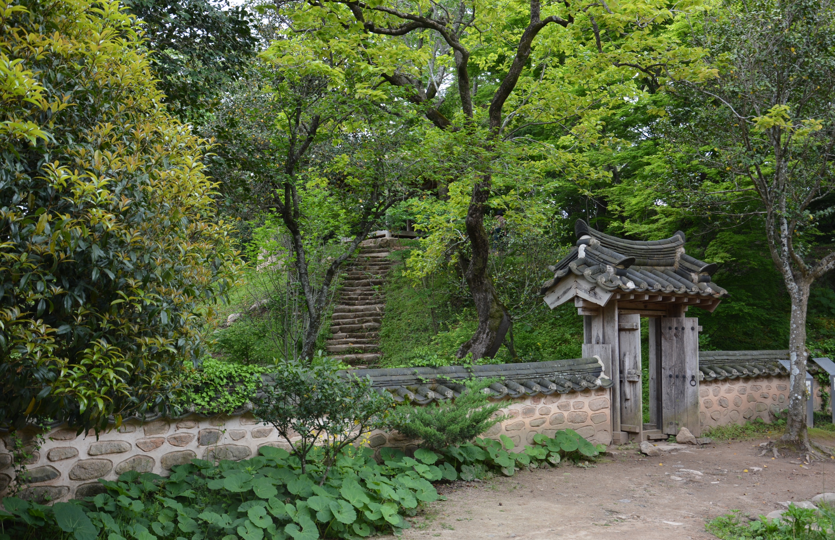 담으로 둘러진 내원 아랫쪽 탐방로를 따라 내려서 안운제, 월출산다원 방향으로 내려가 본다.