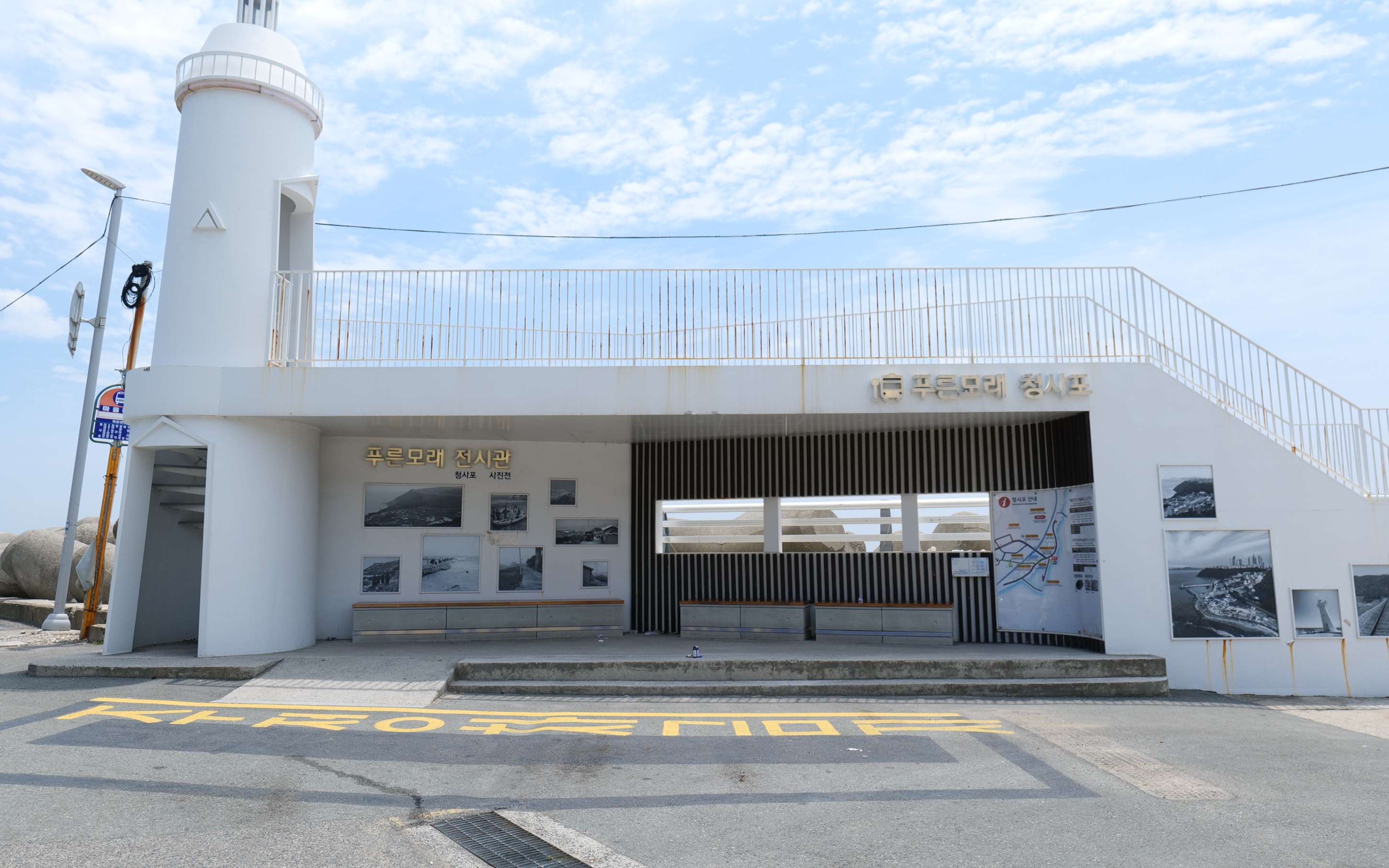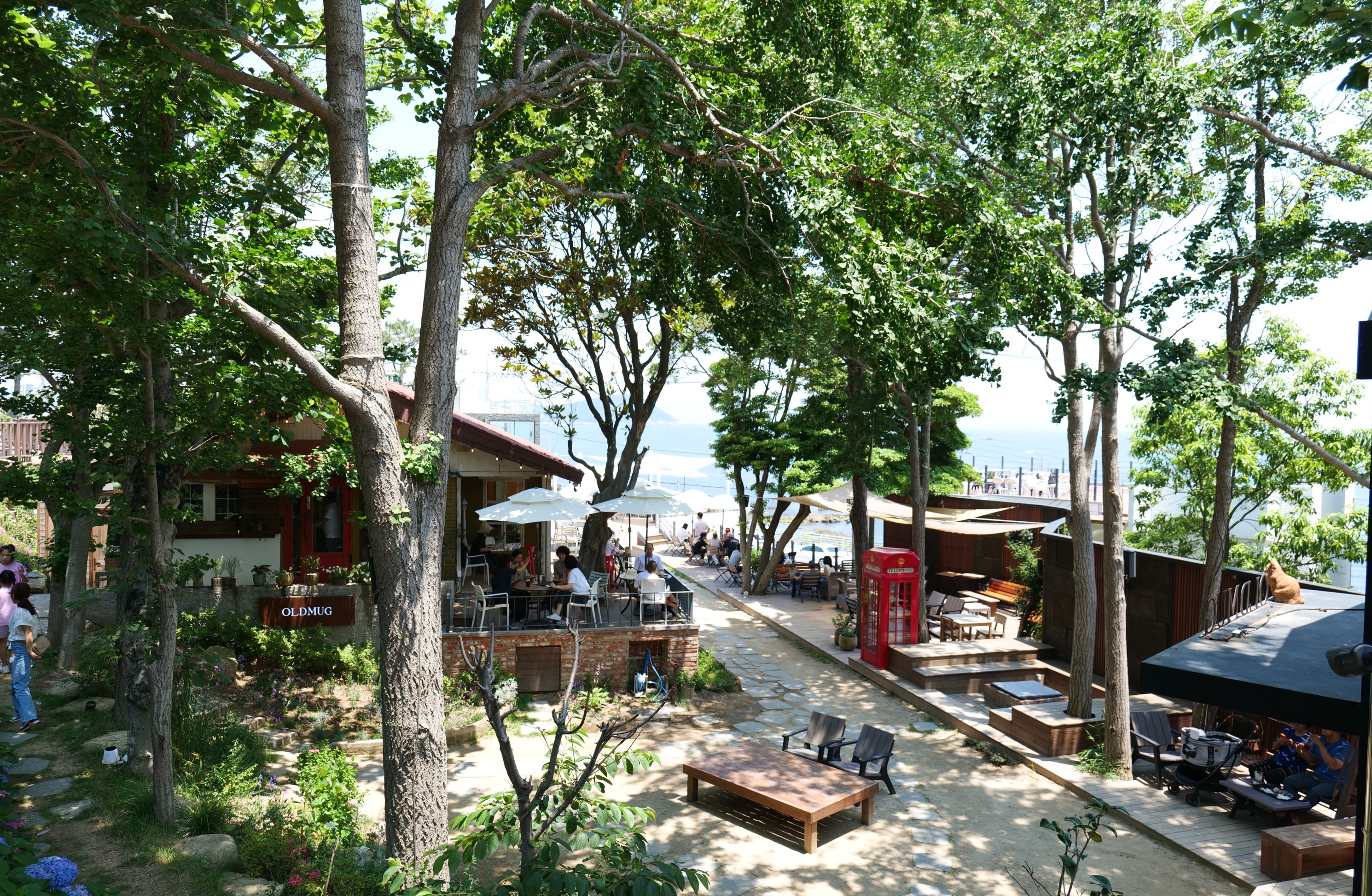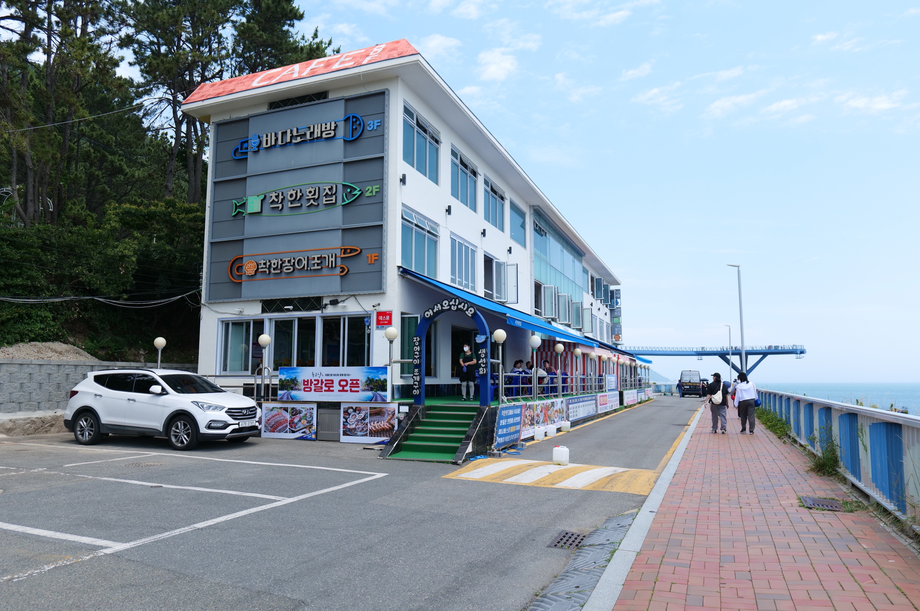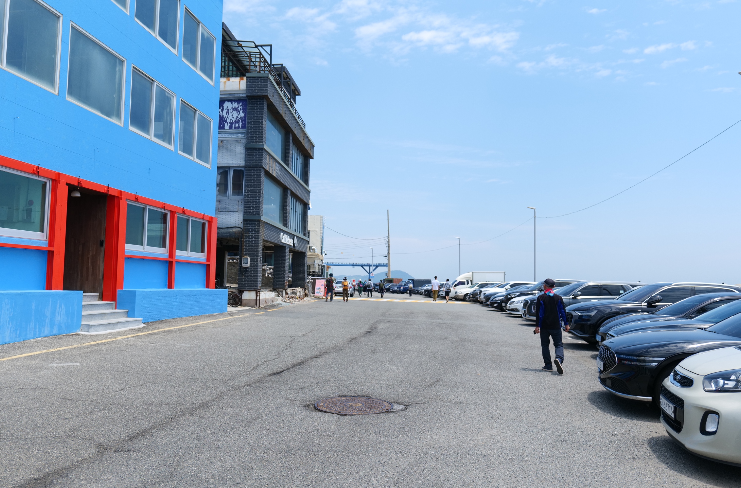 저곳 해안에 나란히 있는 두채의 건물 뒷편에 카페윤이 있다.