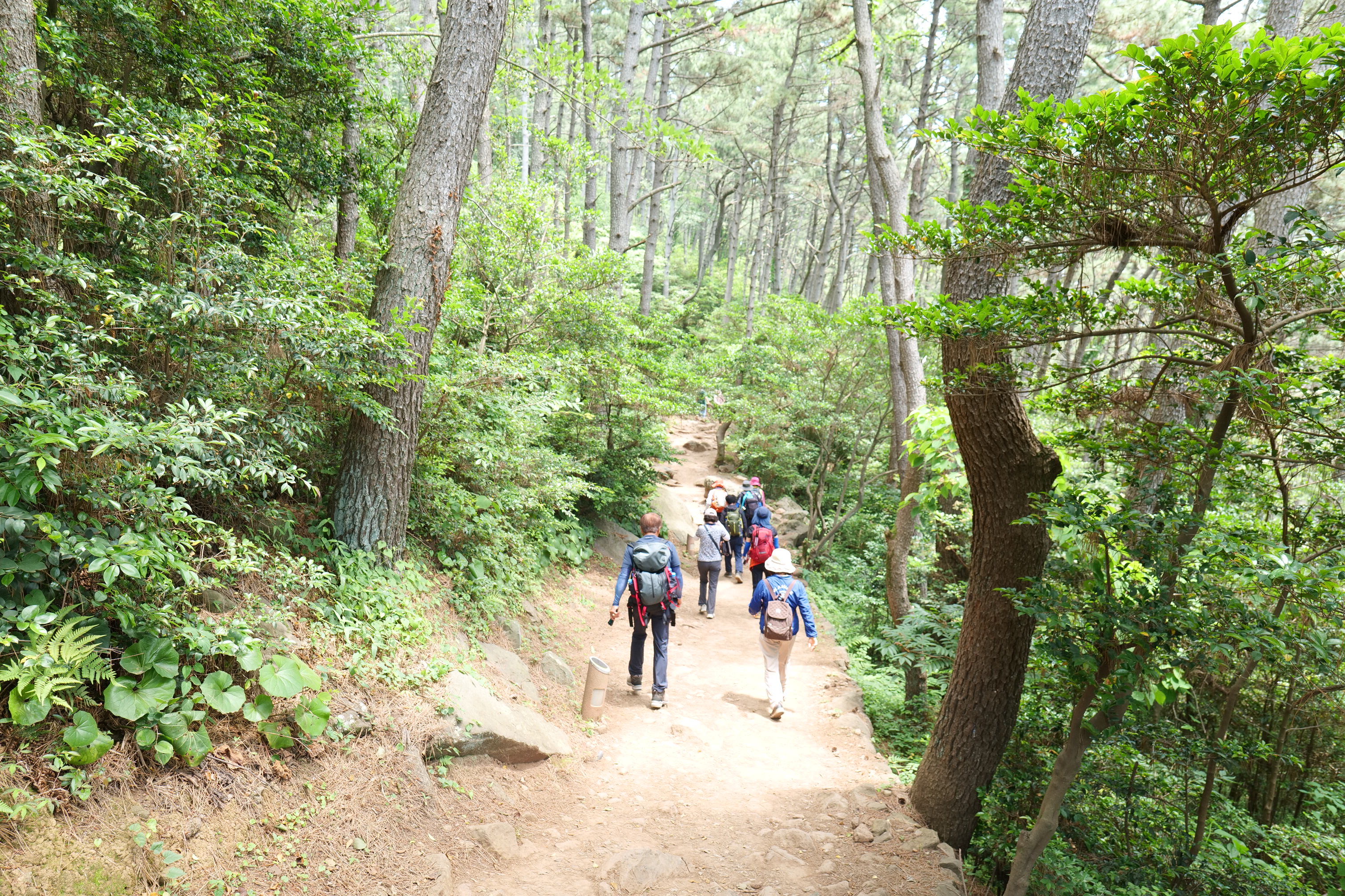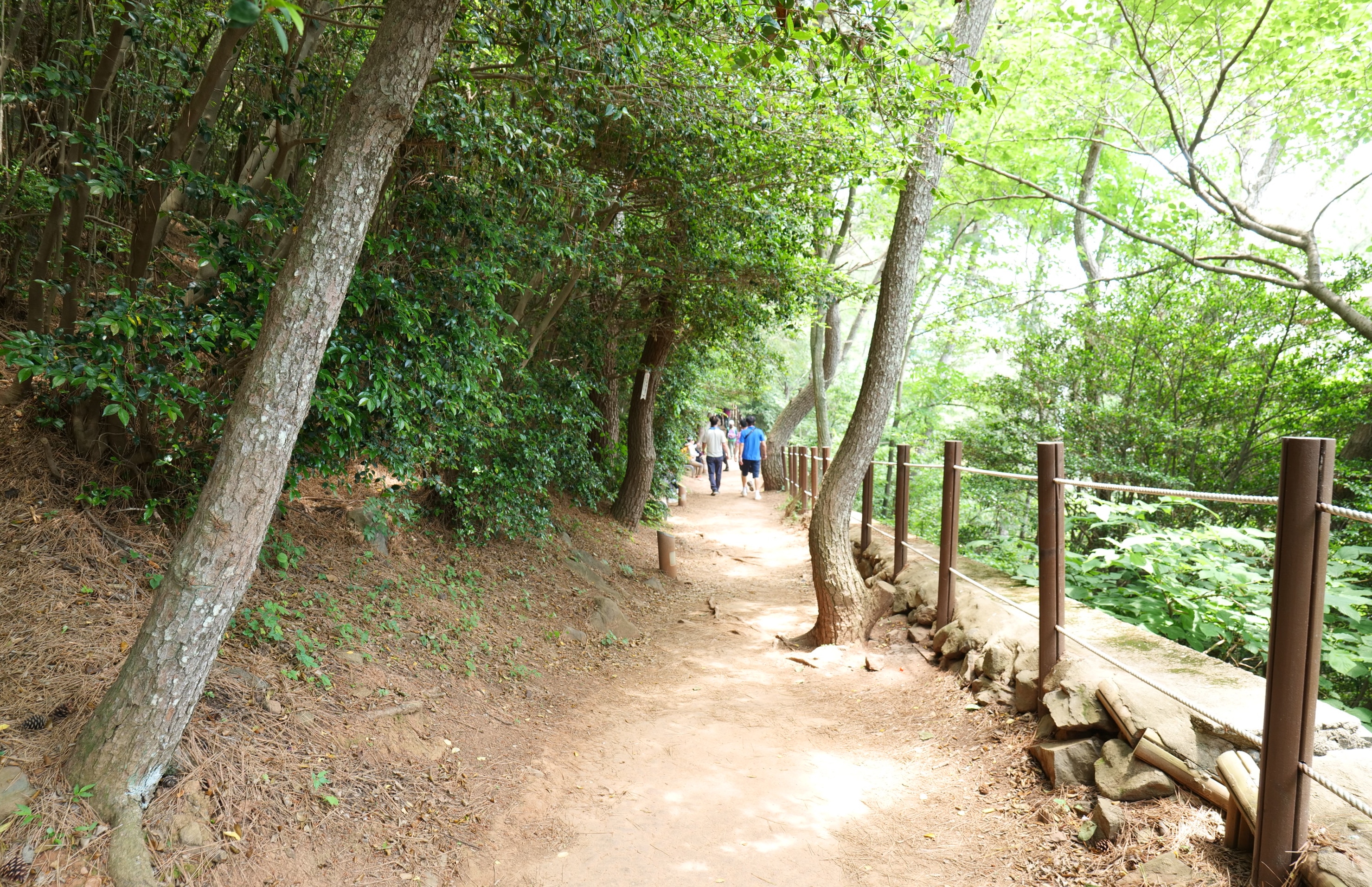 허리쯤으로 섬을 한바퀴 도는 산책로와 정상으로 오르는 길이 있다.