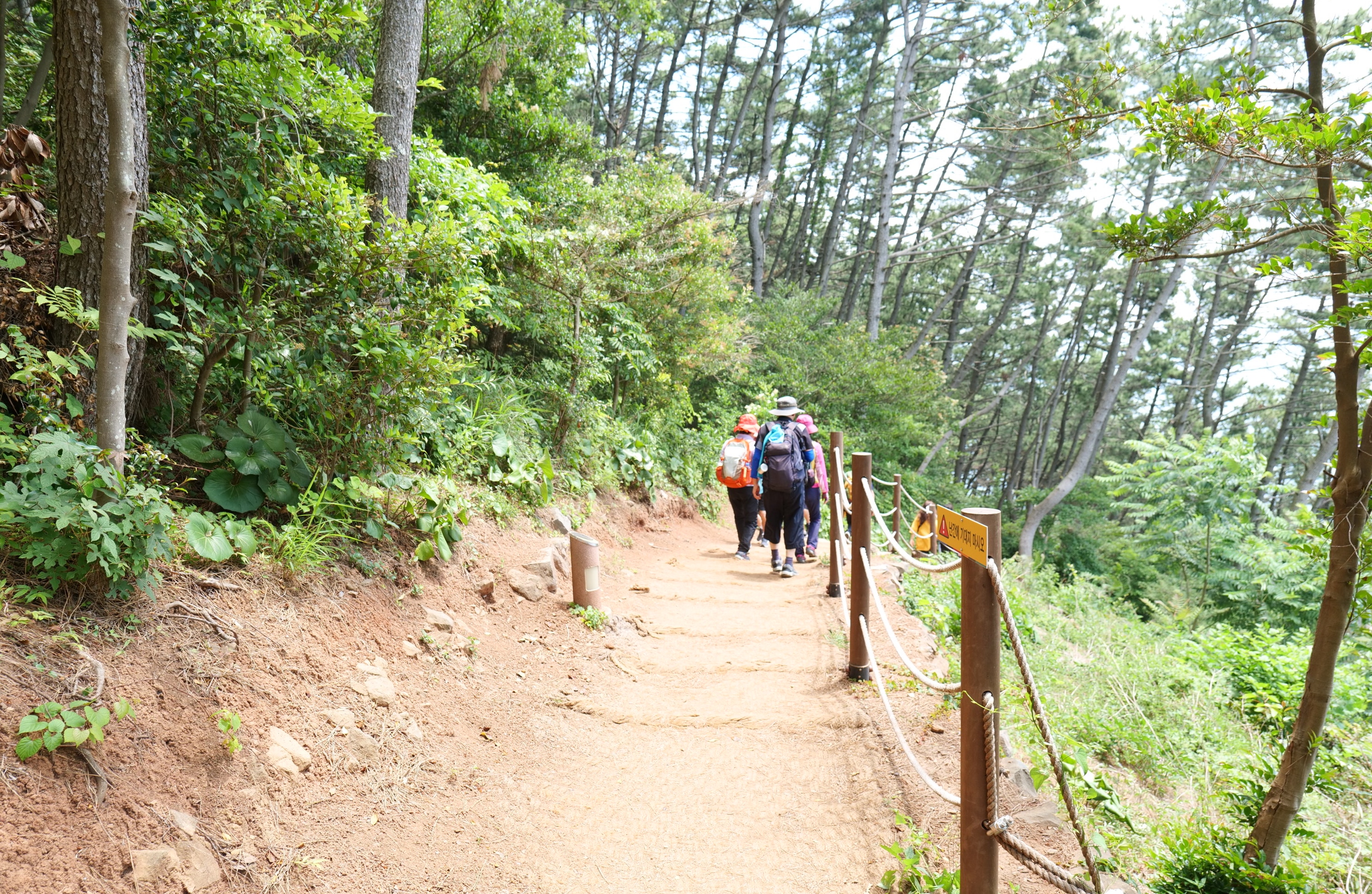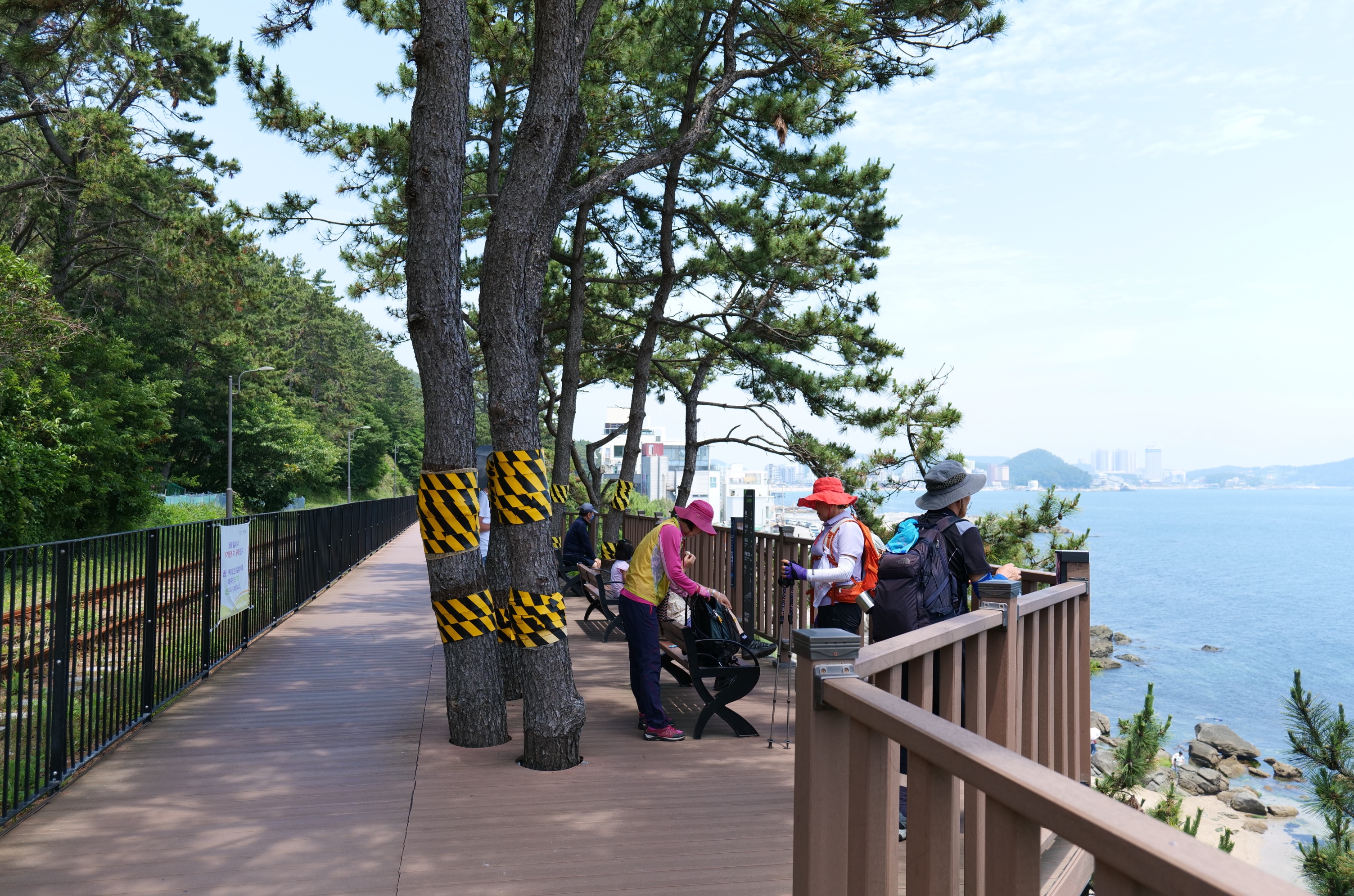 이웃하여 데크로 정비된 도보길이 있으나 아무도 걷는 사람이 보이지 않는다. 뒤에 알았지만 현 이 길은 공사로 인해 금년 8월 어느날까지 통행을 차단하였다.