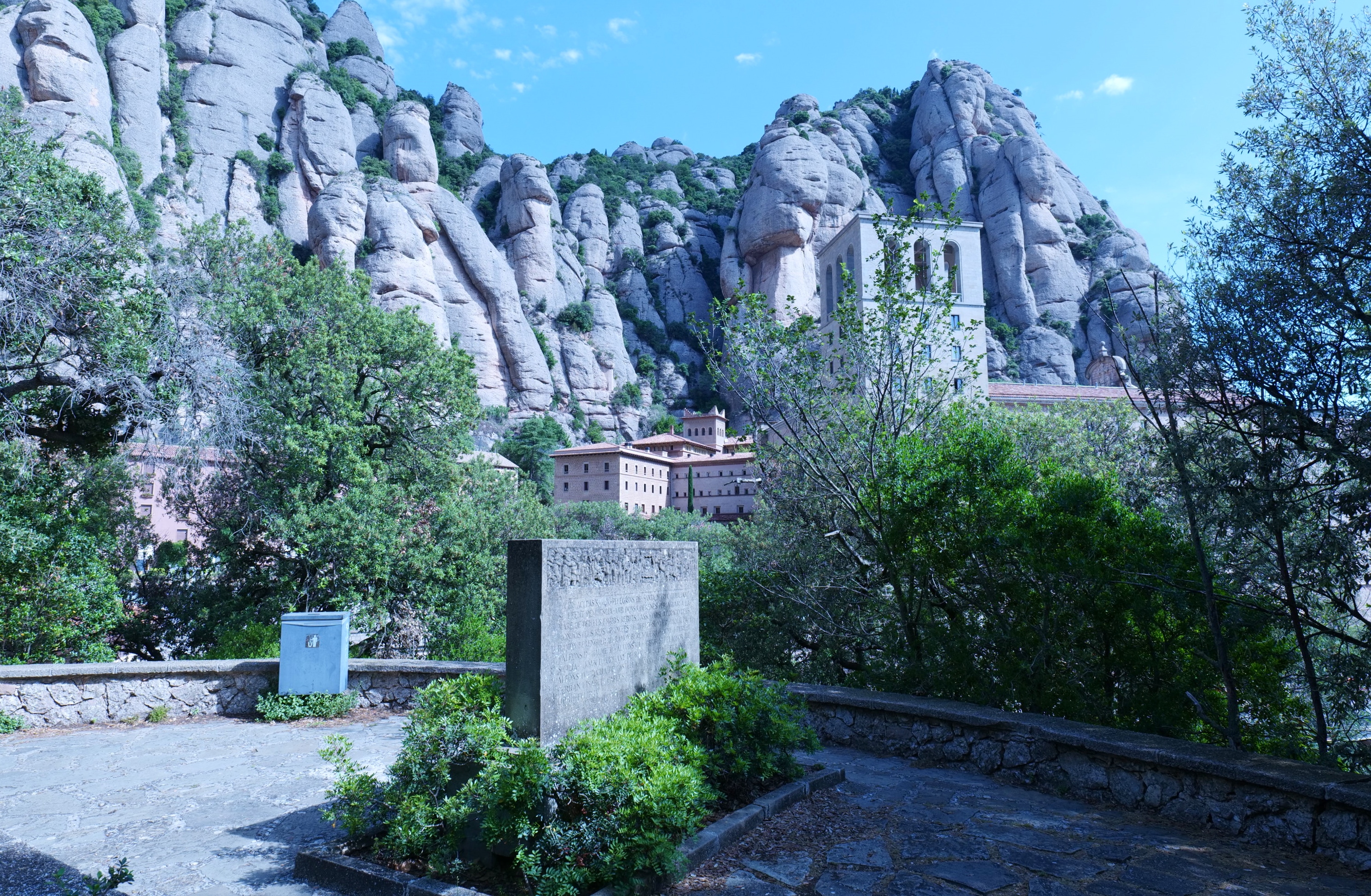 몬세라트는 바로셀로나에서 북서쪽으로 약간의 거리에 위치한 산으로 카탈루냐어로 '톱니 모양의 산'이란뜻이란다. 정상은 1,236m, 주변 바위는 역암으로 이루어져 있으며 주변이 온통 이런 산세를 유지하고 있다.