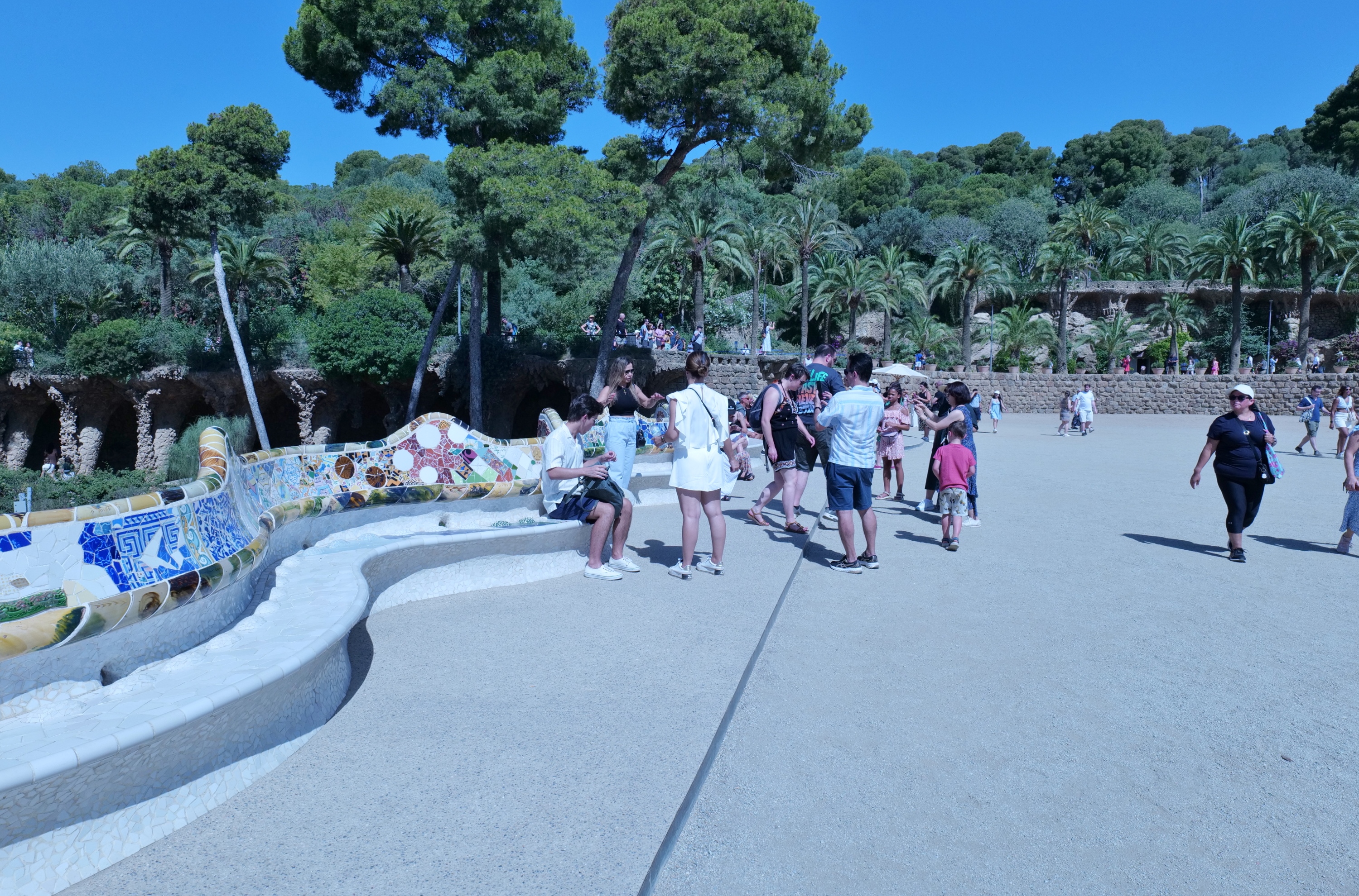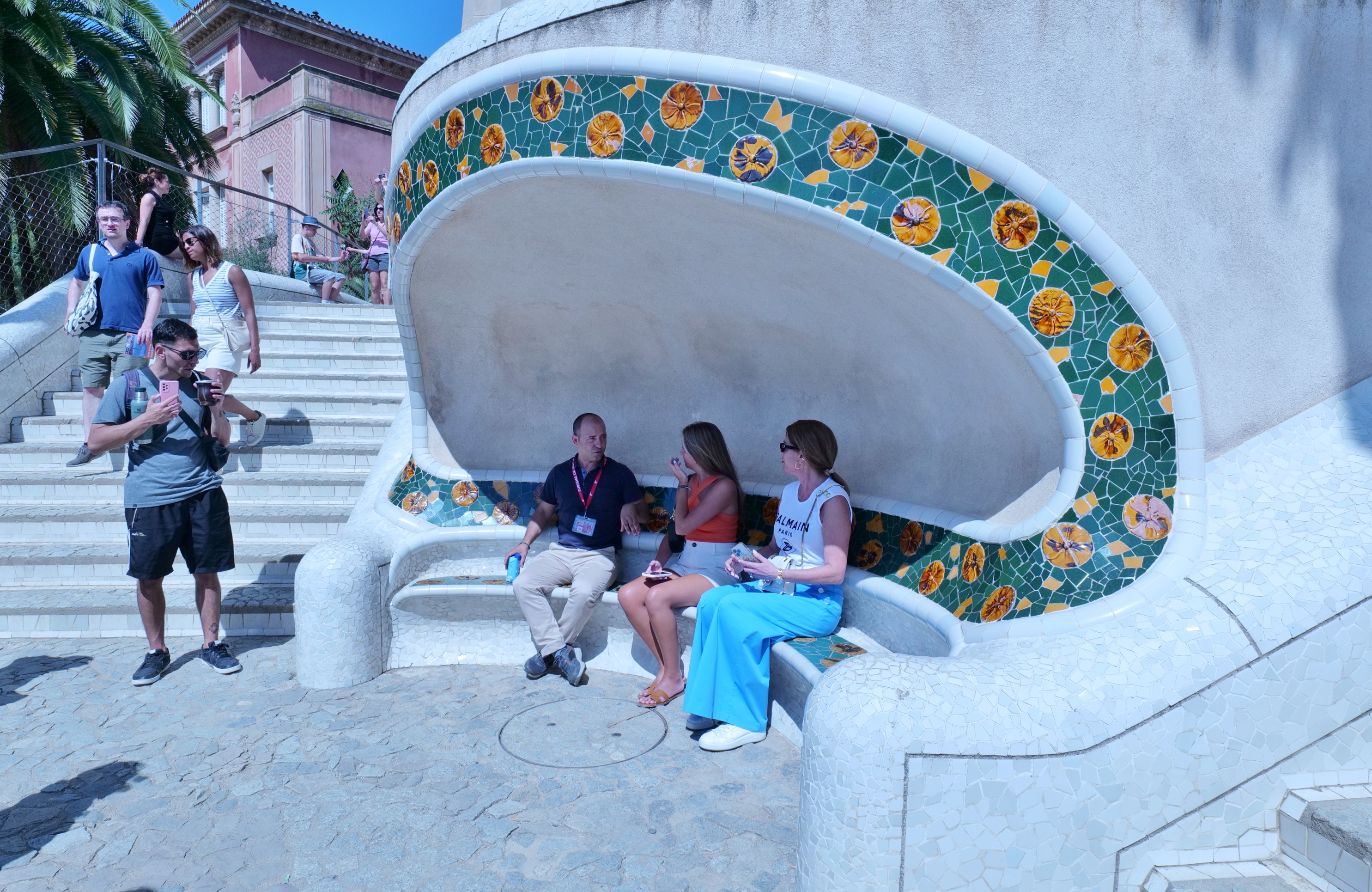 가이드가 이곳 구엘공원에서 세계에서 가장 긴 벤치를 볼 수 있다고 했는데 광장 둘레를 따라 죽 이어붙인 타일벤치다.