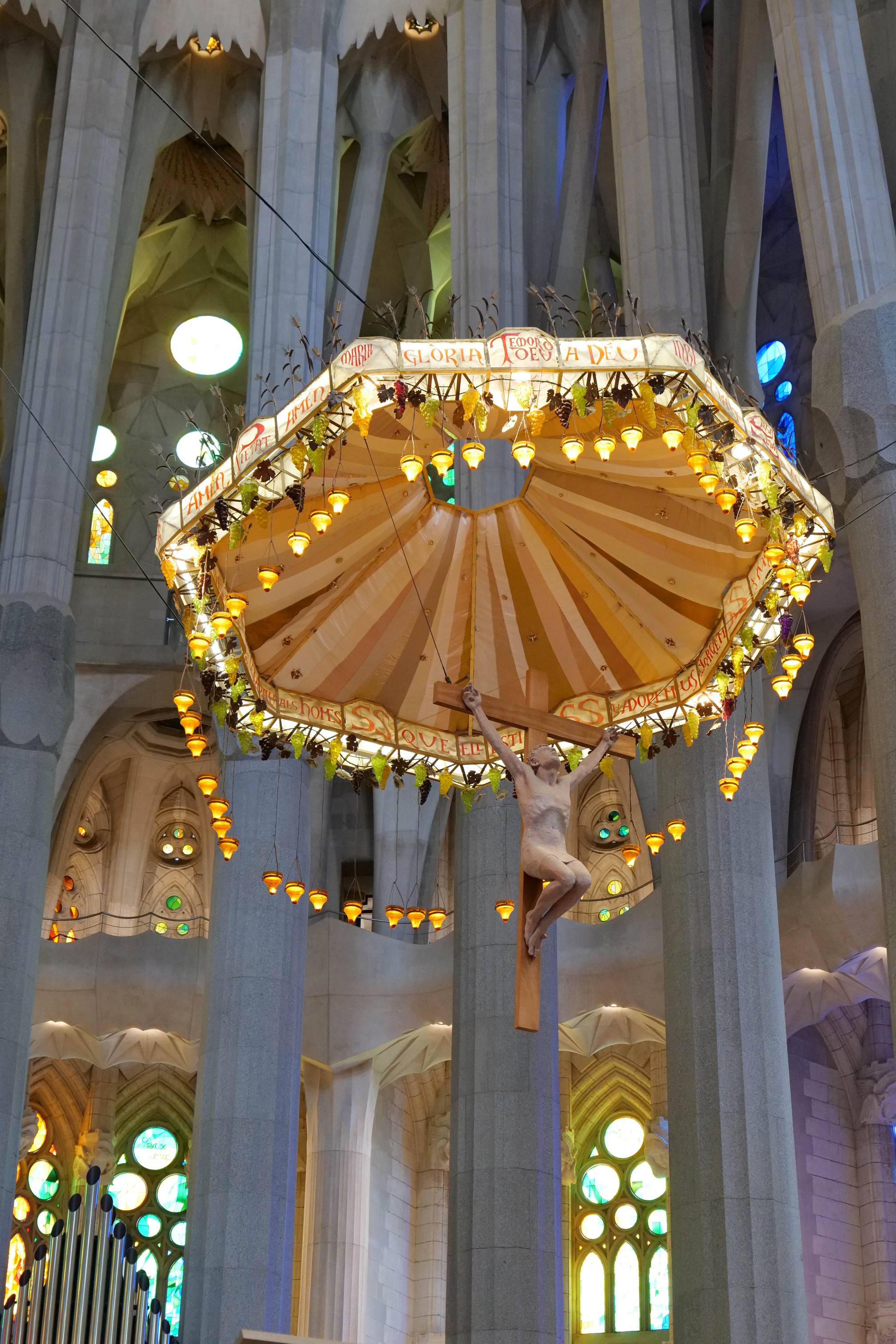 가우디는 긴 와이어로프의 마디마디에 모래 자루를 달아 옆으로 당겨 그 견디는 힘의 구조를 계산했다. 그리고 그 모양을 건물 디자인에 그대로 적용했다. 모래 자루의 무게로 인해 로프가 늘어지는 모양(이를 현수선 또는 신의 곡선이라 한다.)에 따라 건물 전체의 구조가 결정됐고, 그 형태에 대한 압력과 하중을 계산해 기둥의 위치와 숫자를 정해 나갔다. 이렇게 만들어진 실험 모델을 180도 뒤집으면 이 구축물의 윤곽선(현수선 아치)이 가우디가 그린 사그라다 파밀리아 교회 스케치와 유사하다.