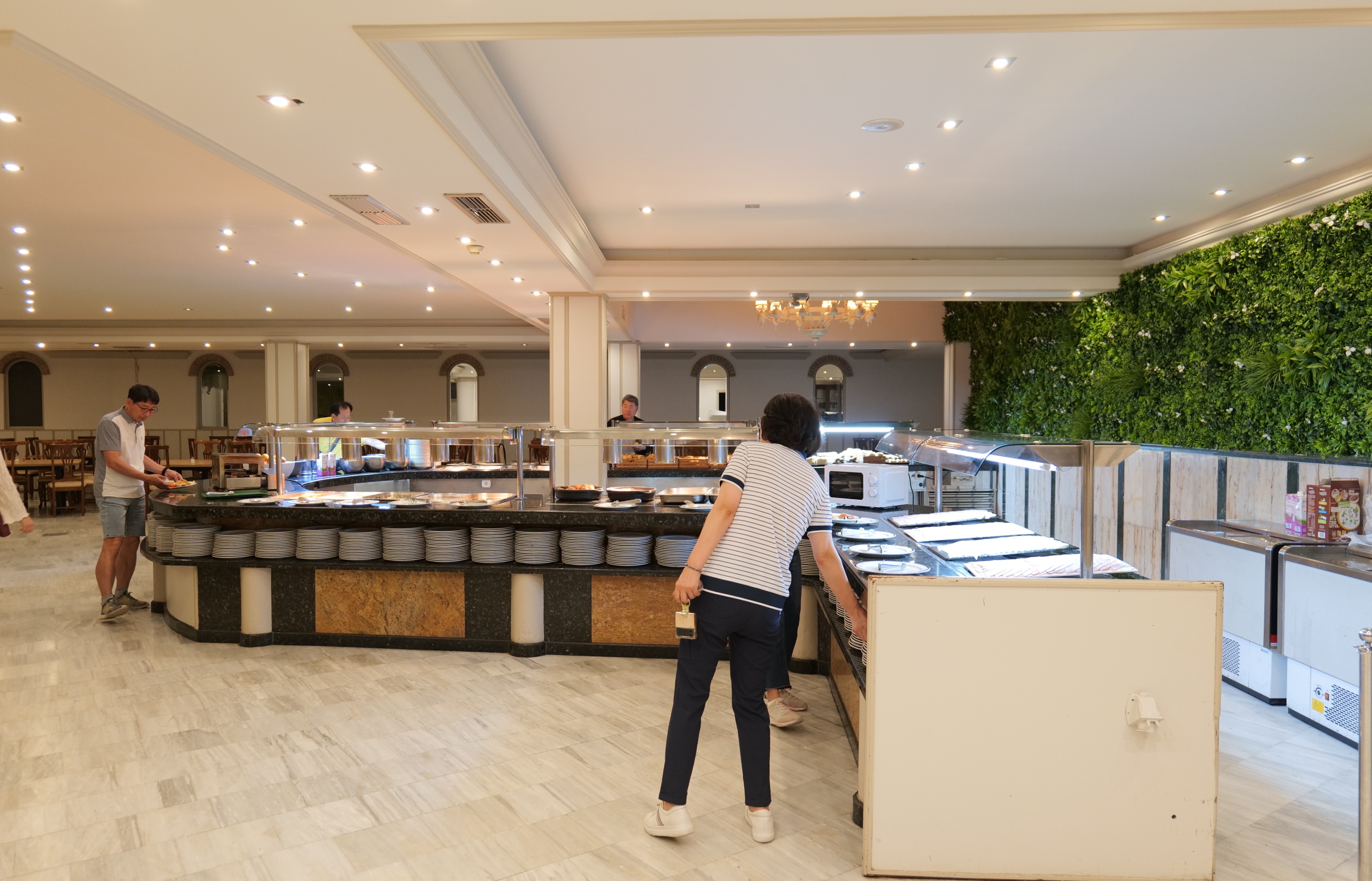 호텔에서 뷔페식 식사는 음식의 종류와 수량에 따라 차이가 있지만 대체로 무난하다.