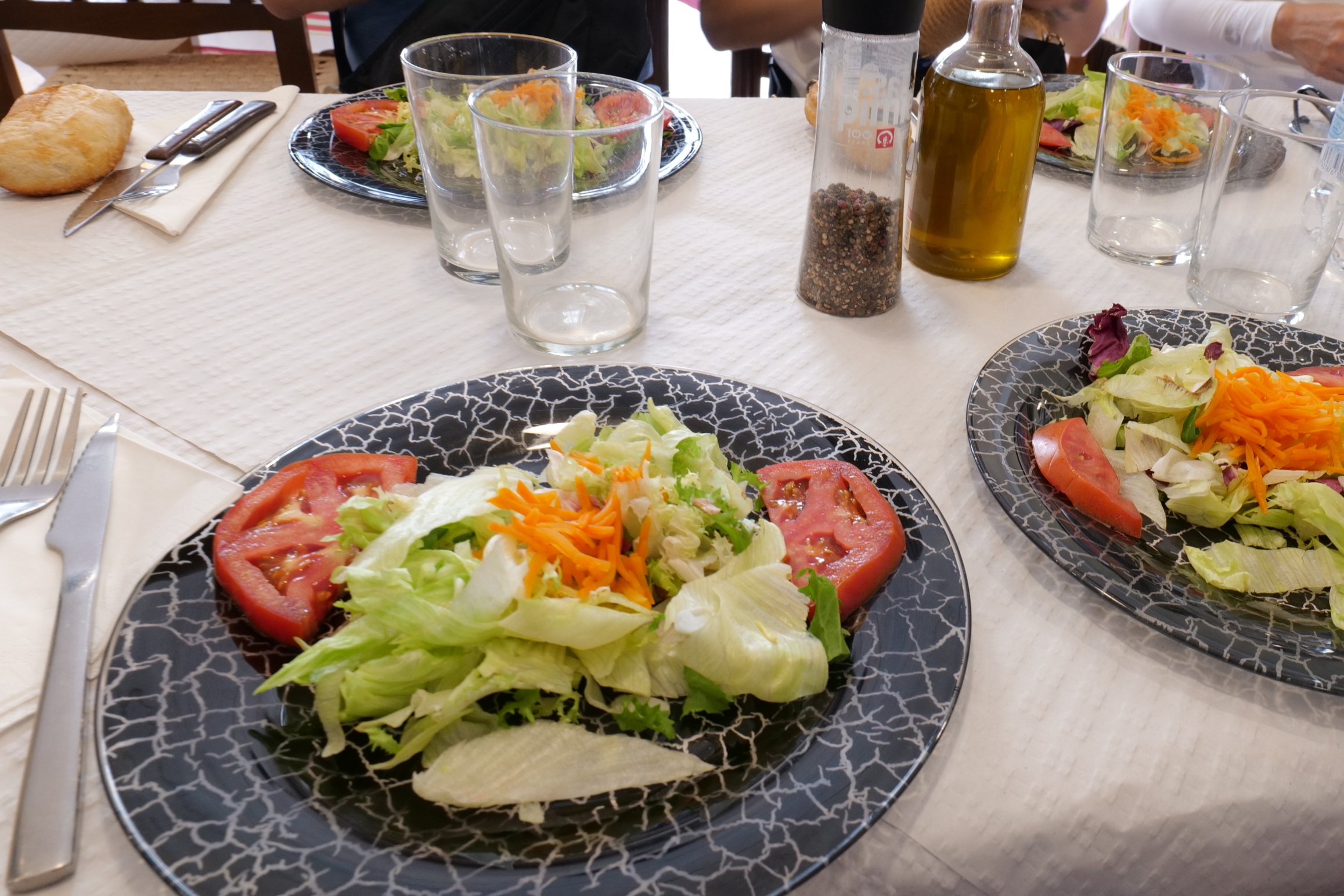 야채 샐러드에 빵,