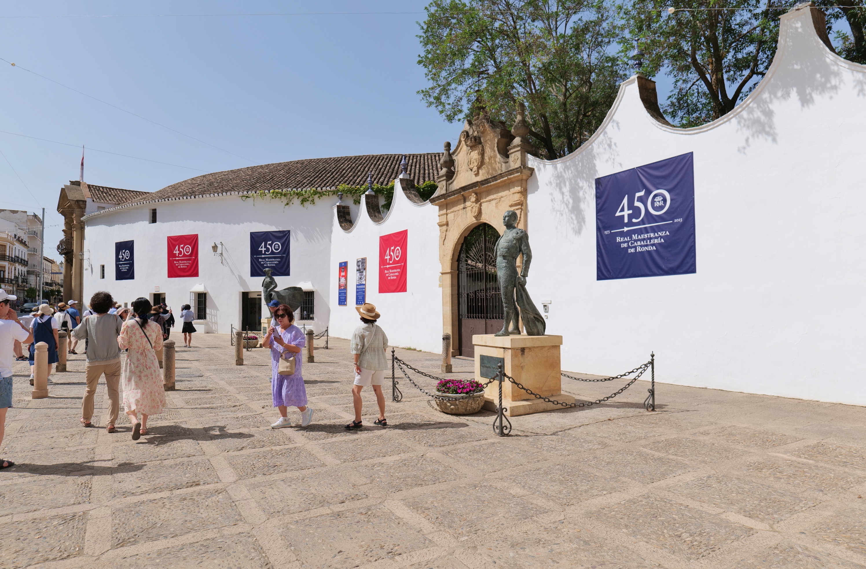 원형으로 건축된 18세기 투우장 및 박물관은 토로스 데 론다 광장으로 표시되어 있다.