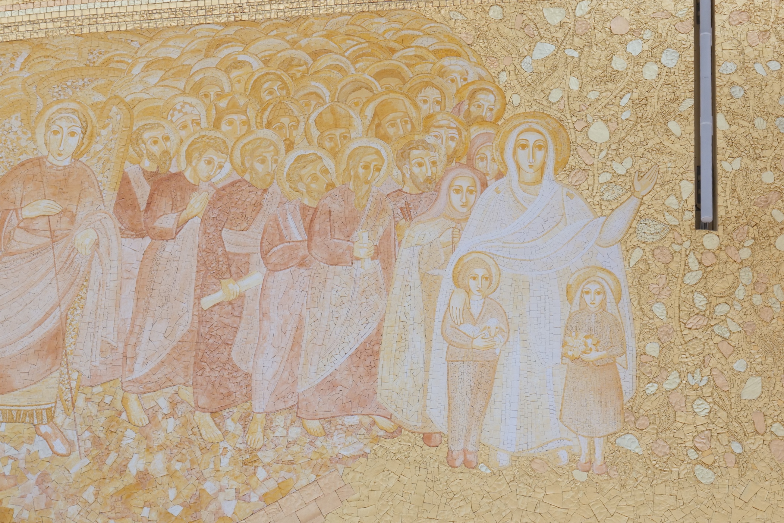 저기 노란 빛 반원형에 씌여진 라틴어는 '가장 신성한 묵주의 여왕이시여, 저희를 위해 빌으소서'라는 뜻이란다, 특징의 하나라면 성모 발현을 처음 접했던 3명의 목동들 묘가 이곳에 있다.