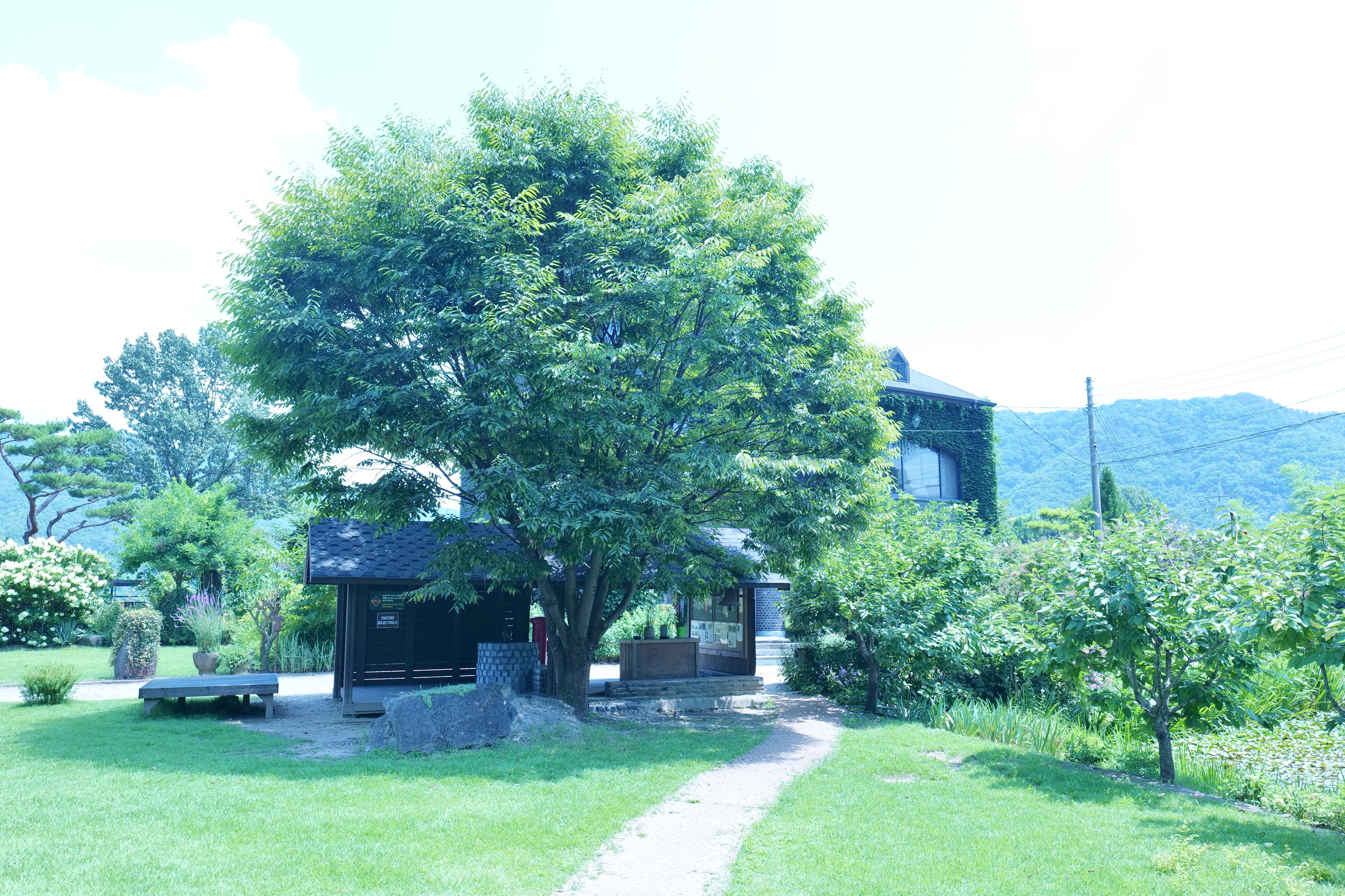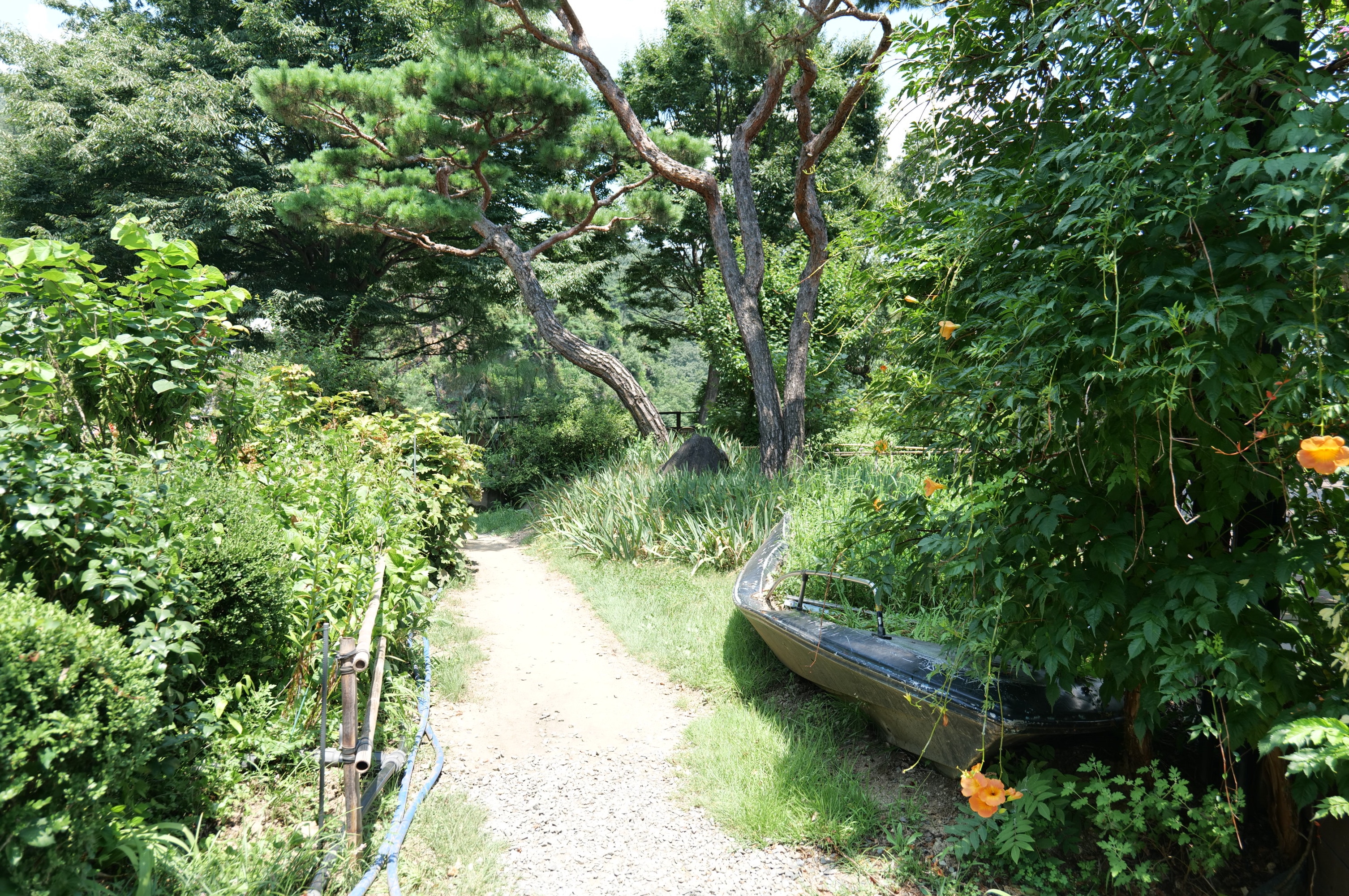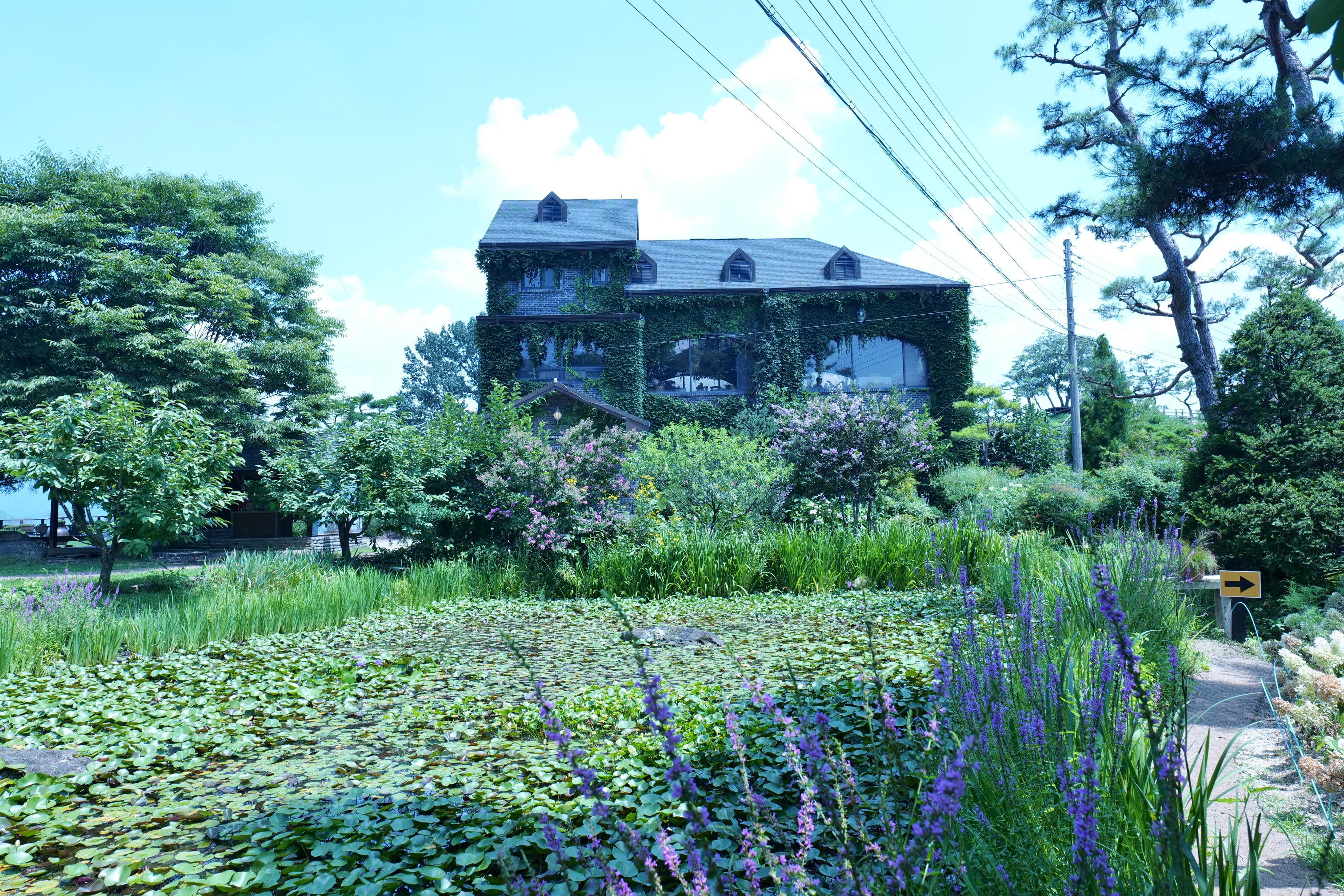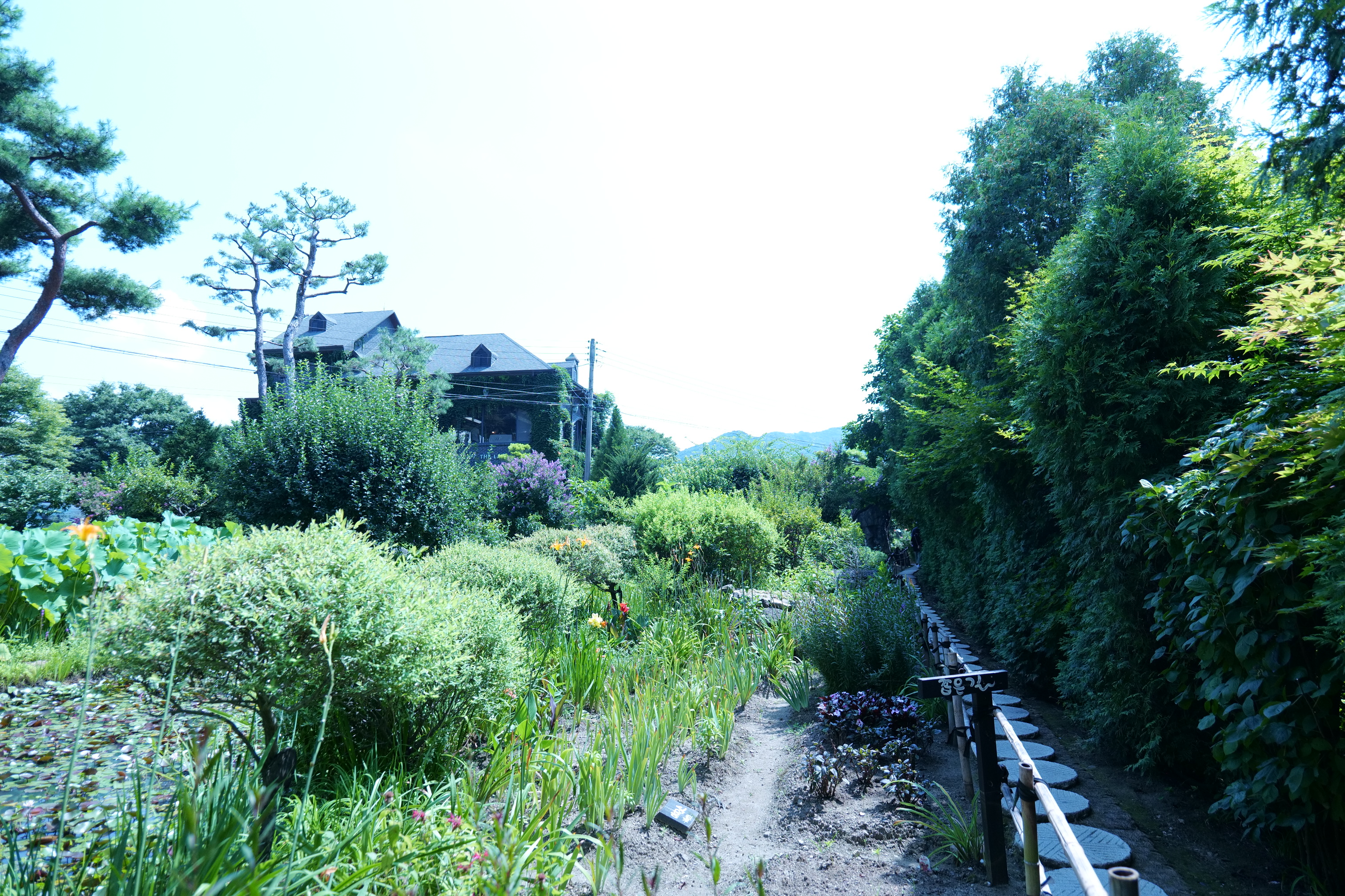 이 카페에서 진행 방향에서 볼때 우측 구역을 한바퀴 돌아오면 카페 앞쪽이 된다. 좌측 구역은 5농가의 주택?이 있으며 주변 역시 잘 단장된 정원이다. 카페 주변은 이 학습원의 중심지 역할을 한다.