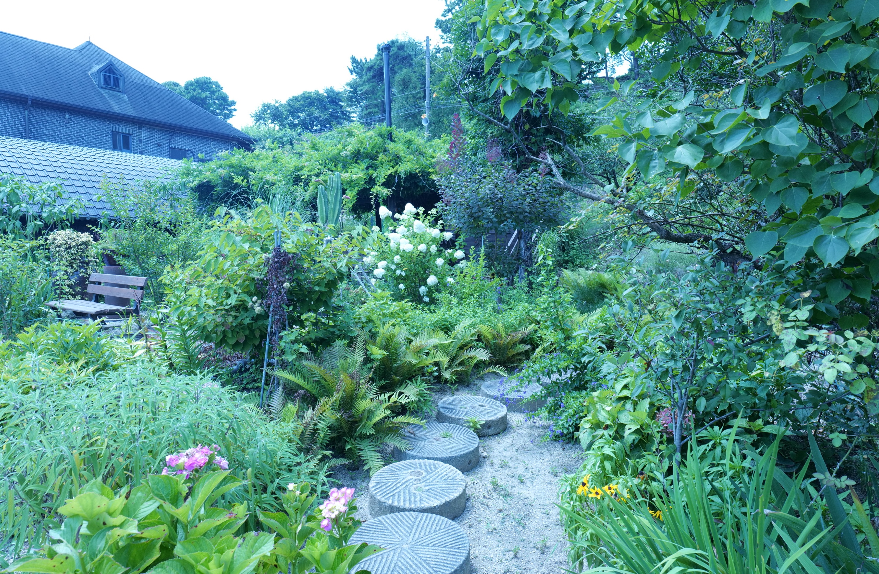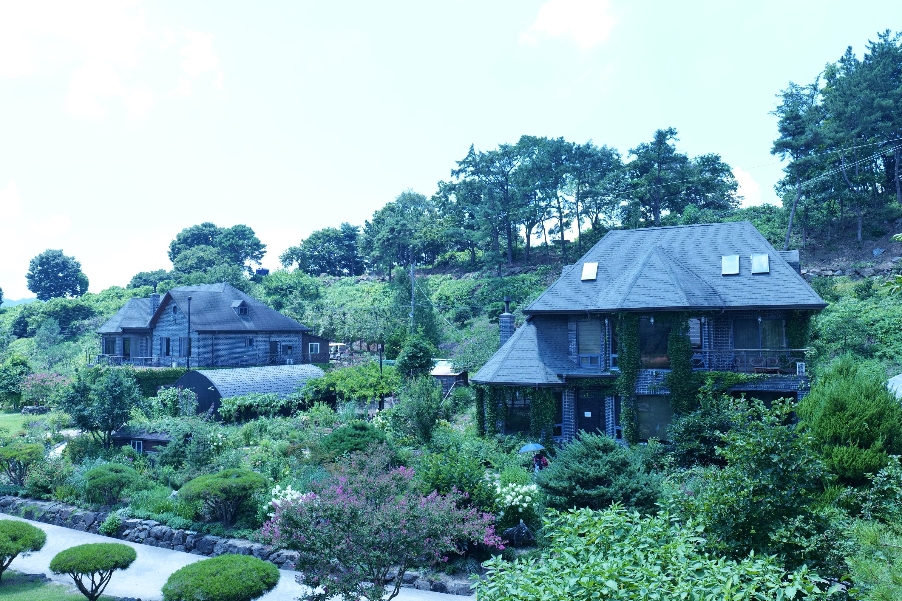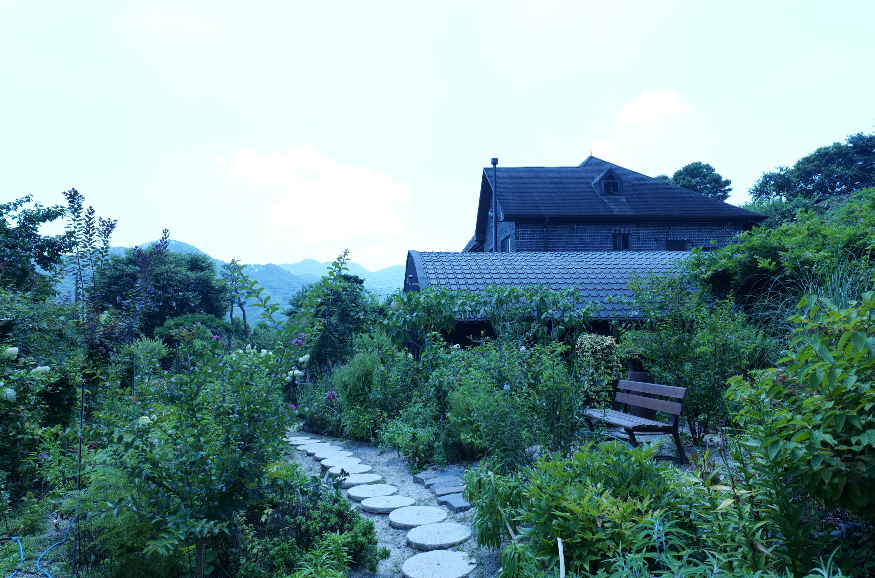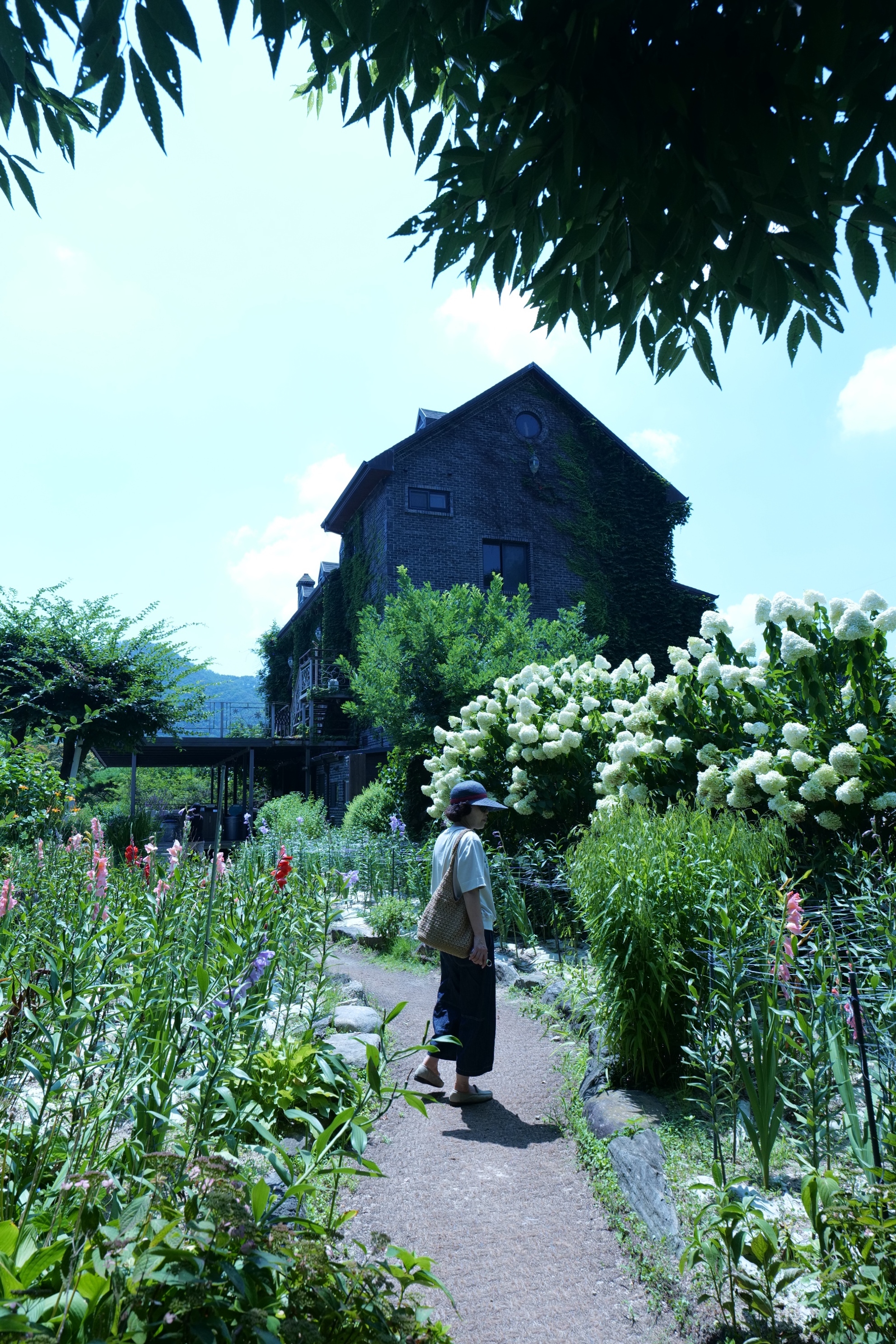 이 카페에서 진행 방향에서 볼때 우측 구역을 한바퀴 돌아오면 카페 앞쪽이 된다. 좌측 구역은 5농가의 주택?이 있으며 주변 역시 잘 단장된 정원이다. 카페 주변은 이 학습원의 중심지 역할을 한다.