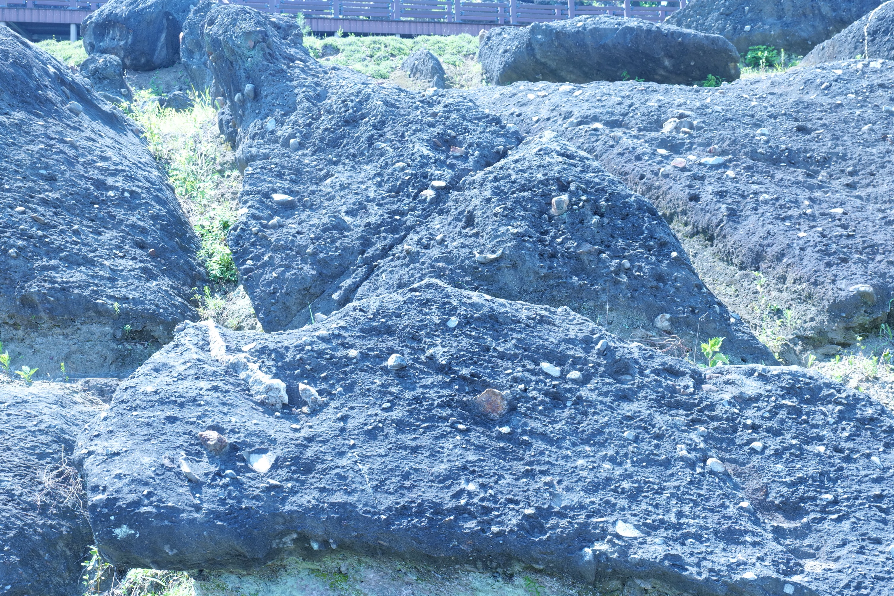 자갈이 송송 박혀있는 역암같으면서 바탕은 검은 (금강) 석회암으로 상상하면 되겠다.
