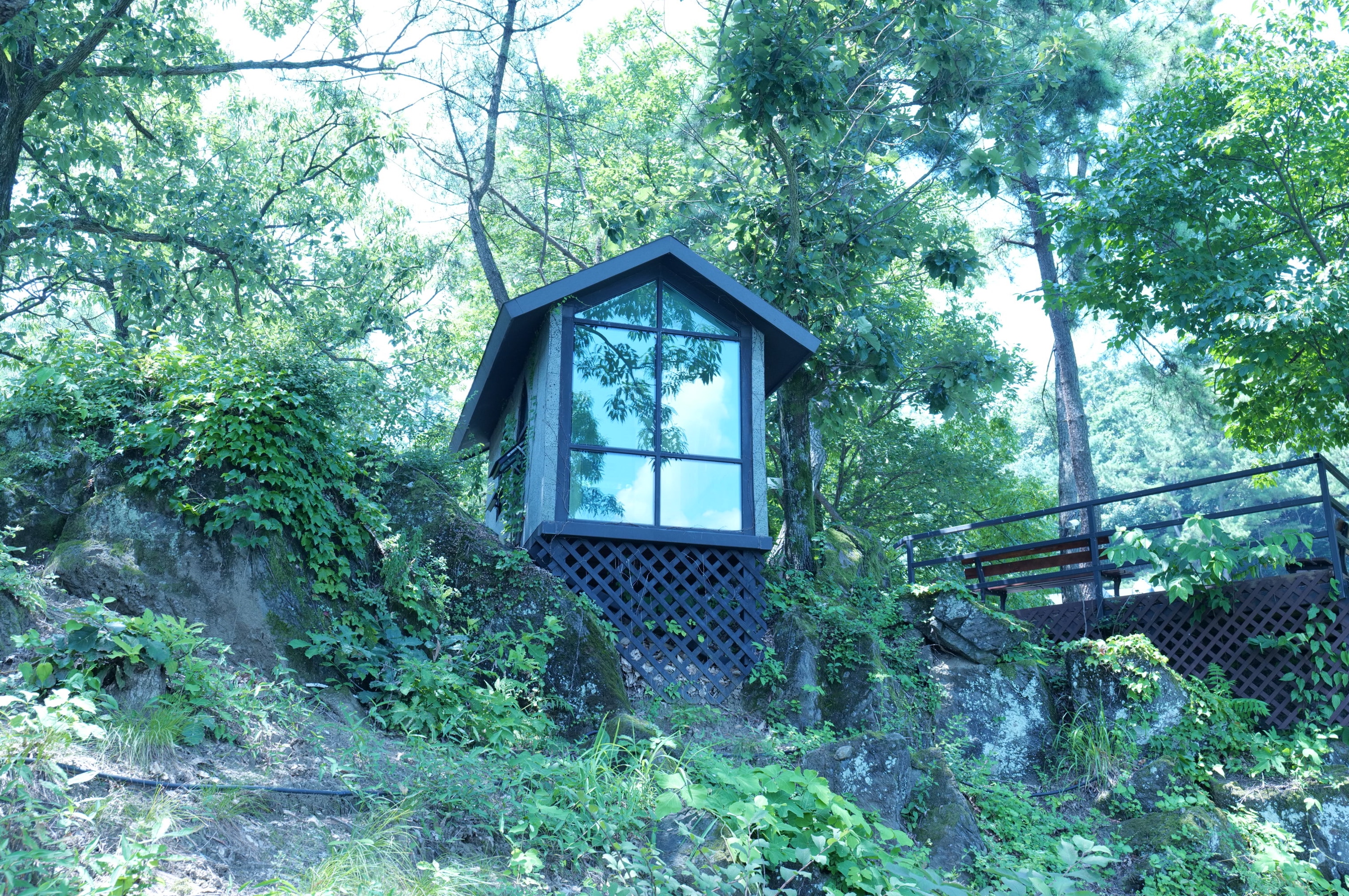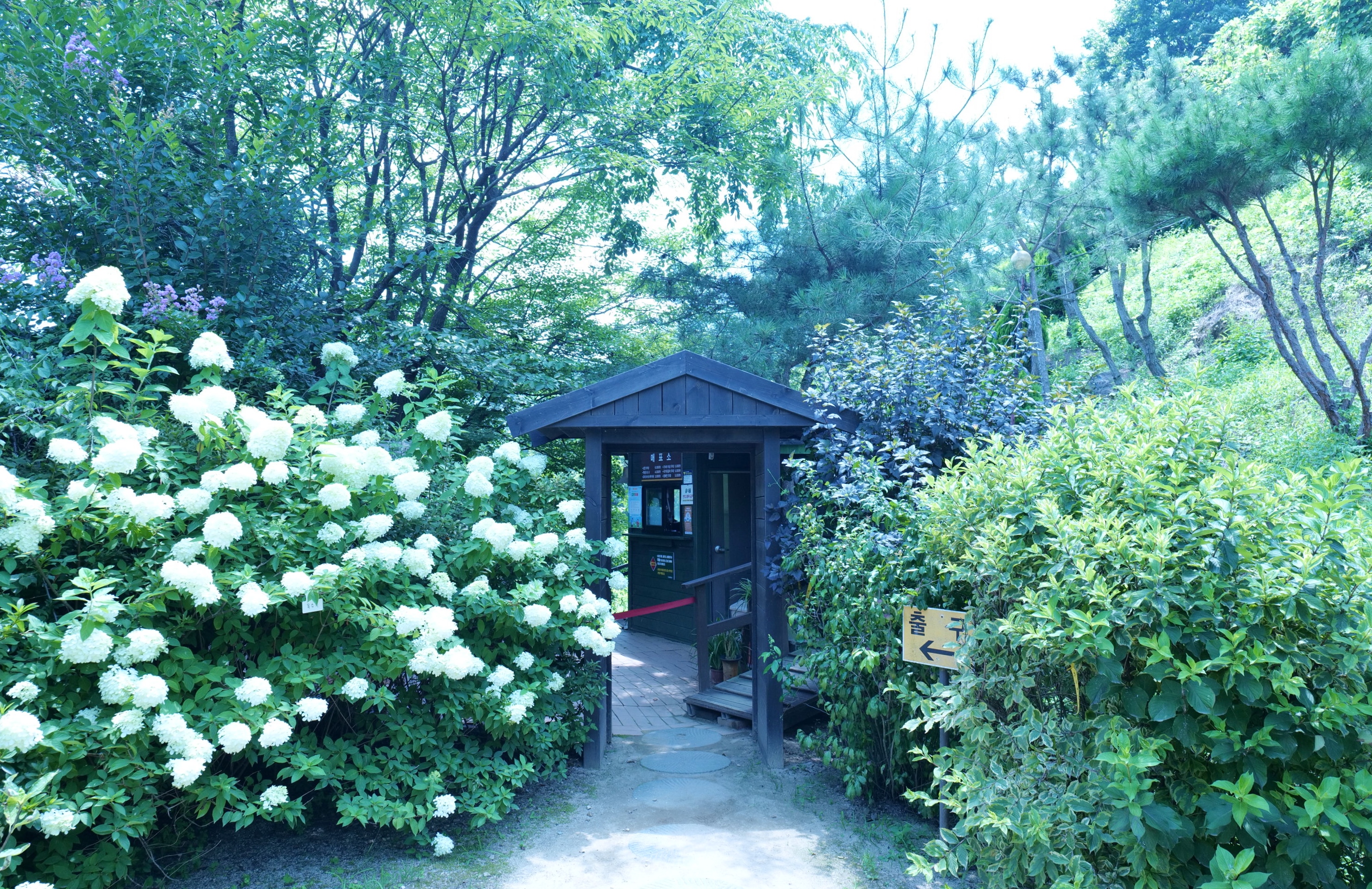 침목 계단길을 따라 오르면 조그만 매표소가 있다.