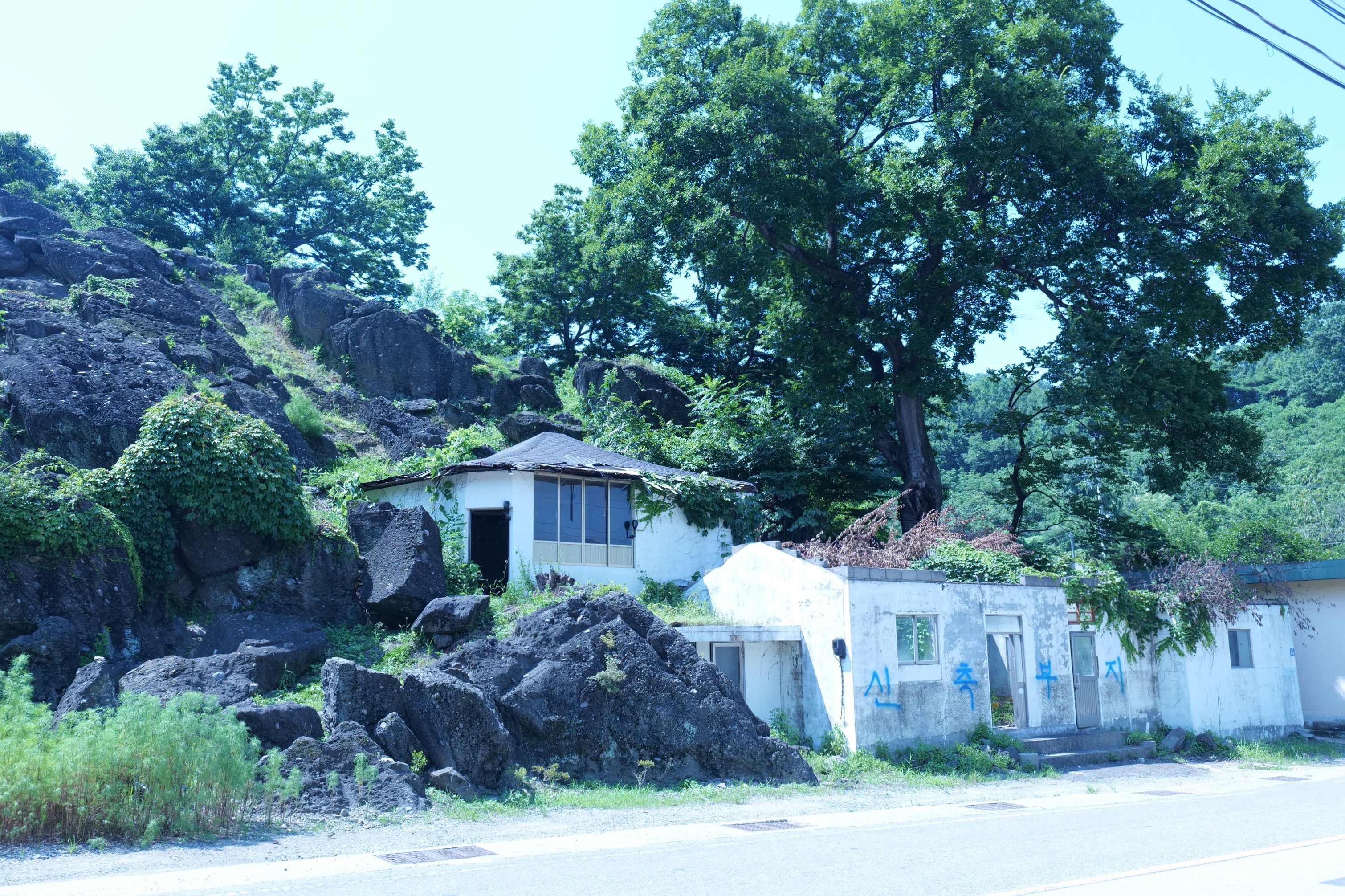 옥천 군북면 항곡마을은 마을 입구 돌팡깨를 중심으로 널리 퍼져있는 옥천대 변성퇴적임인 흑색 금강석회암 지대다.
