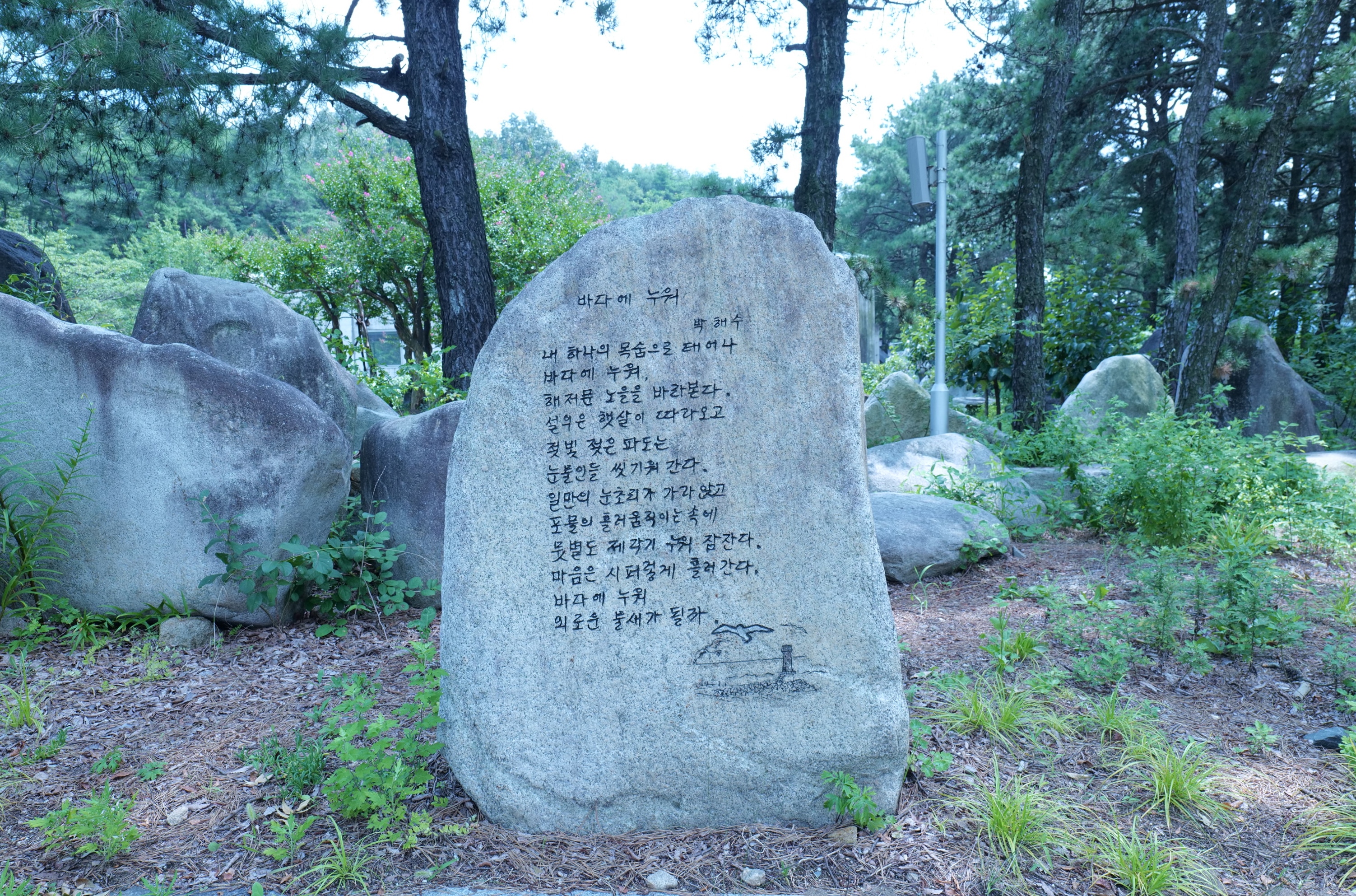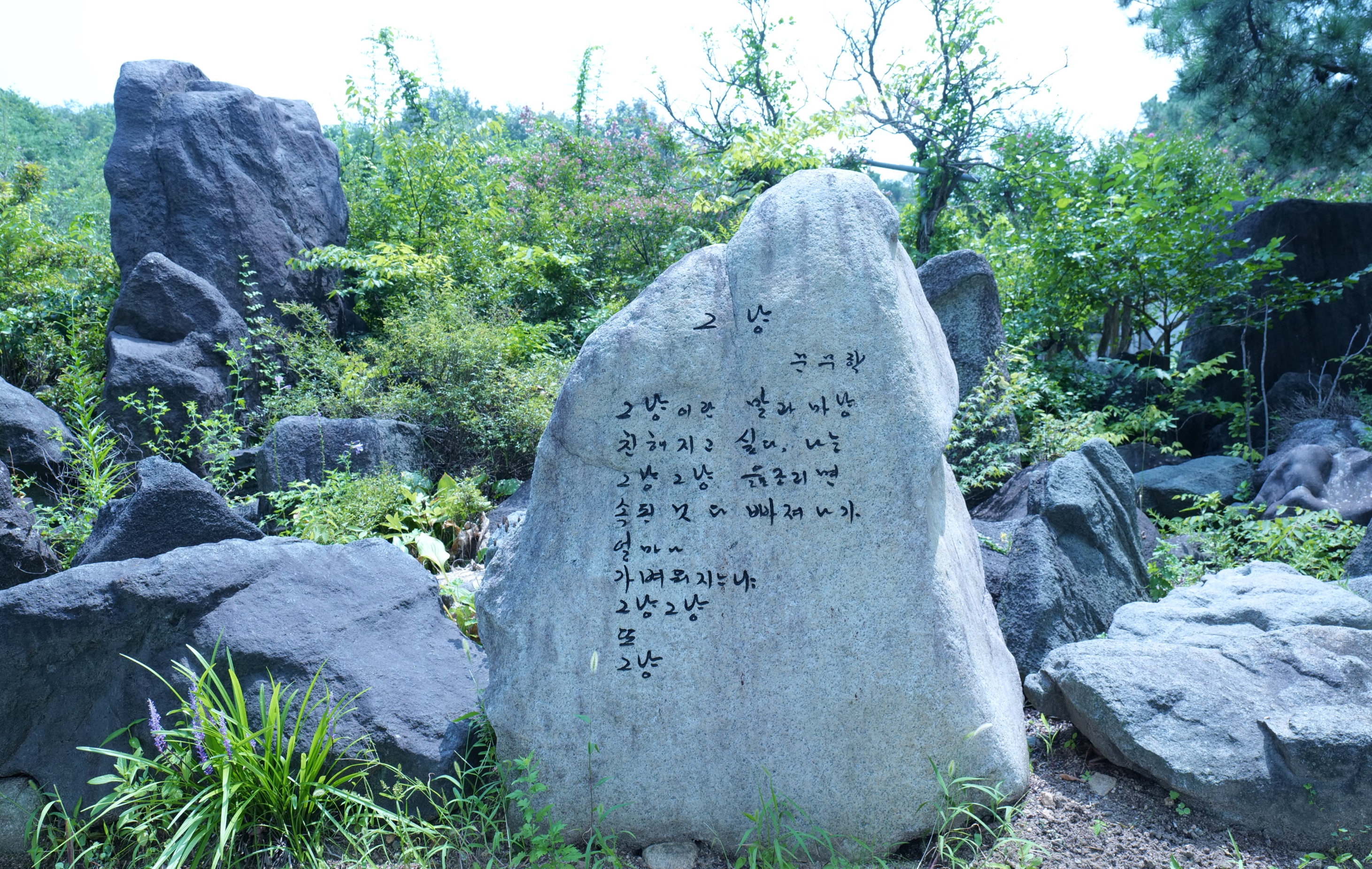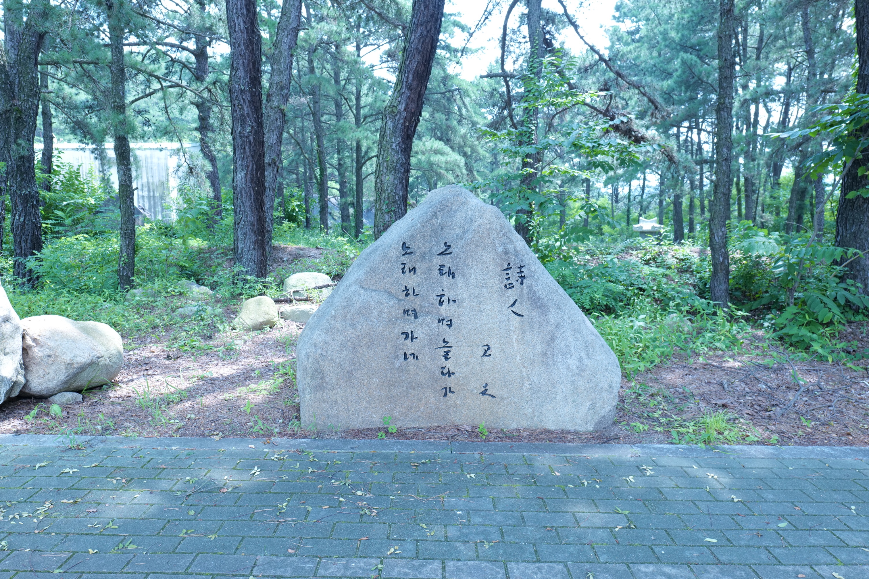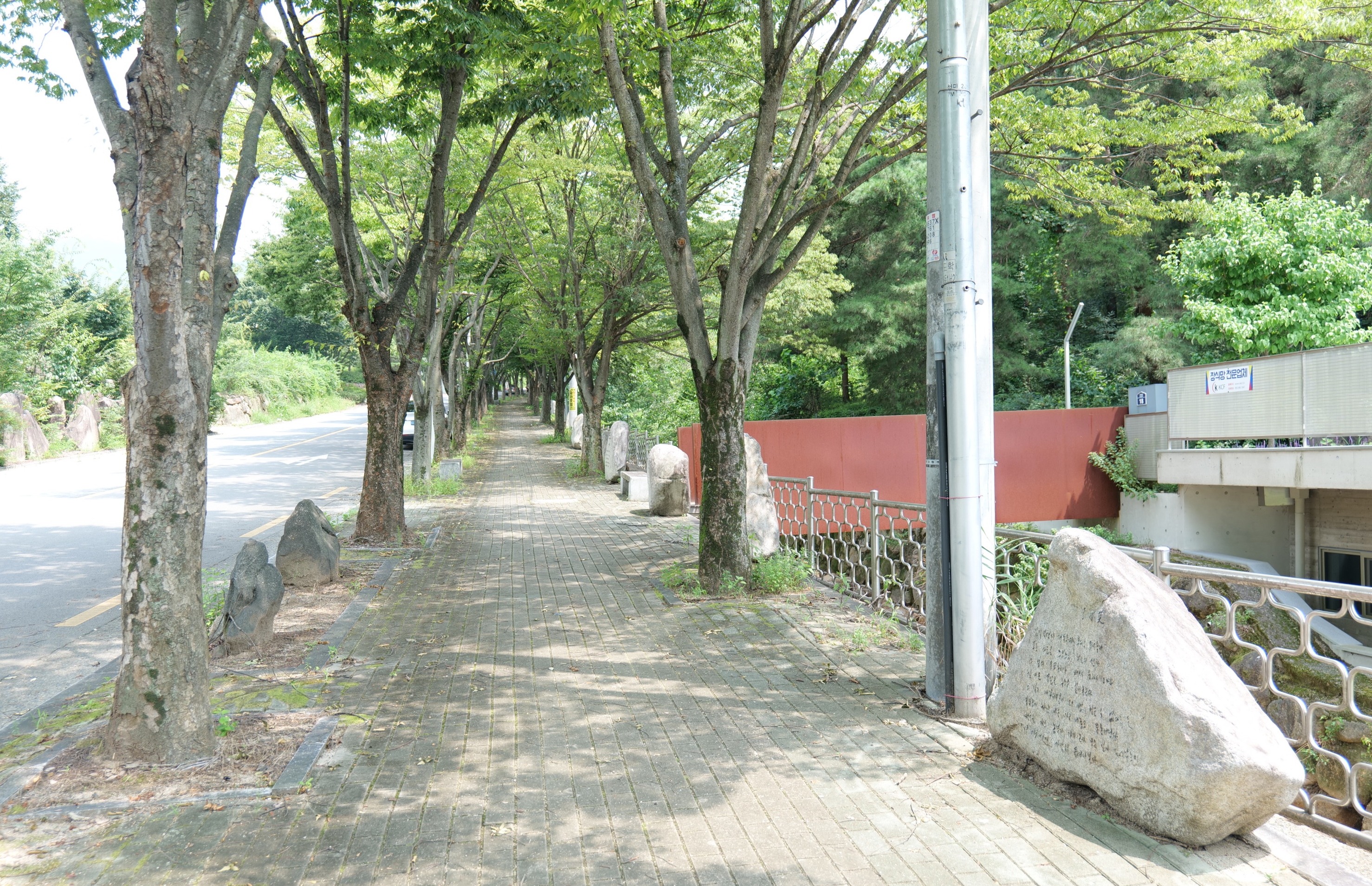한쪽 도로변에는 시를 새긴 바위가 도로변을 따라 줄지어 있다.
