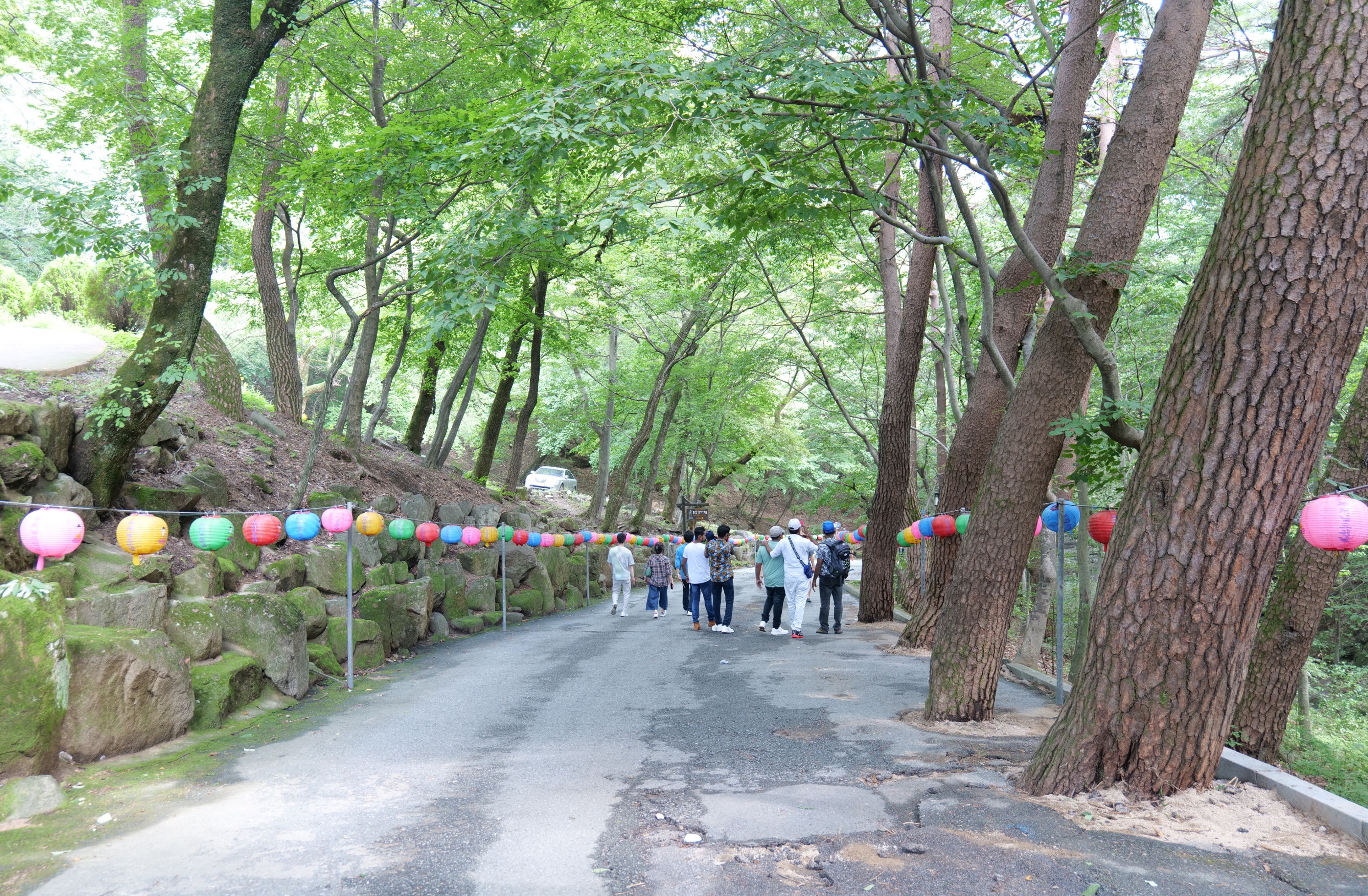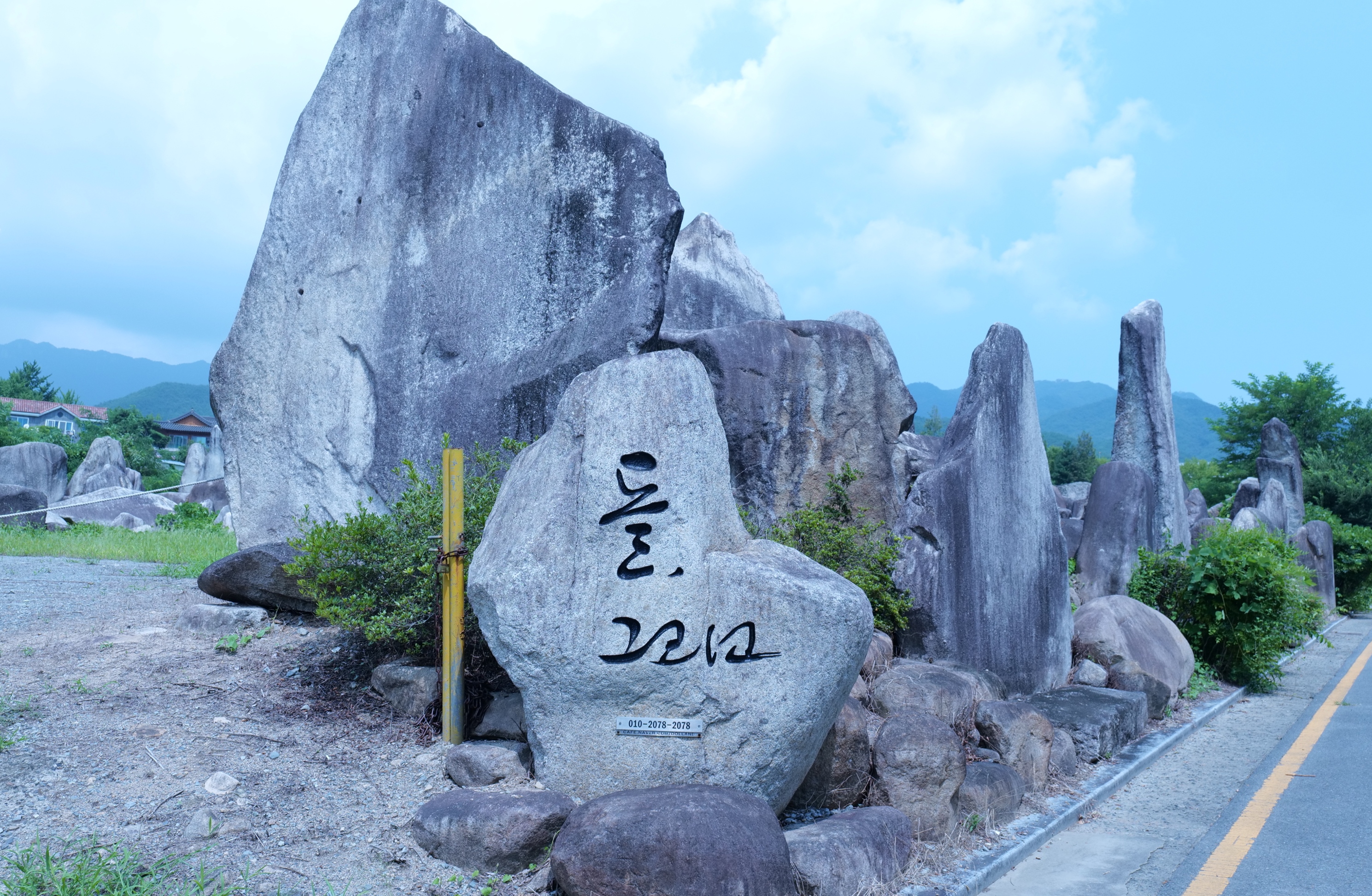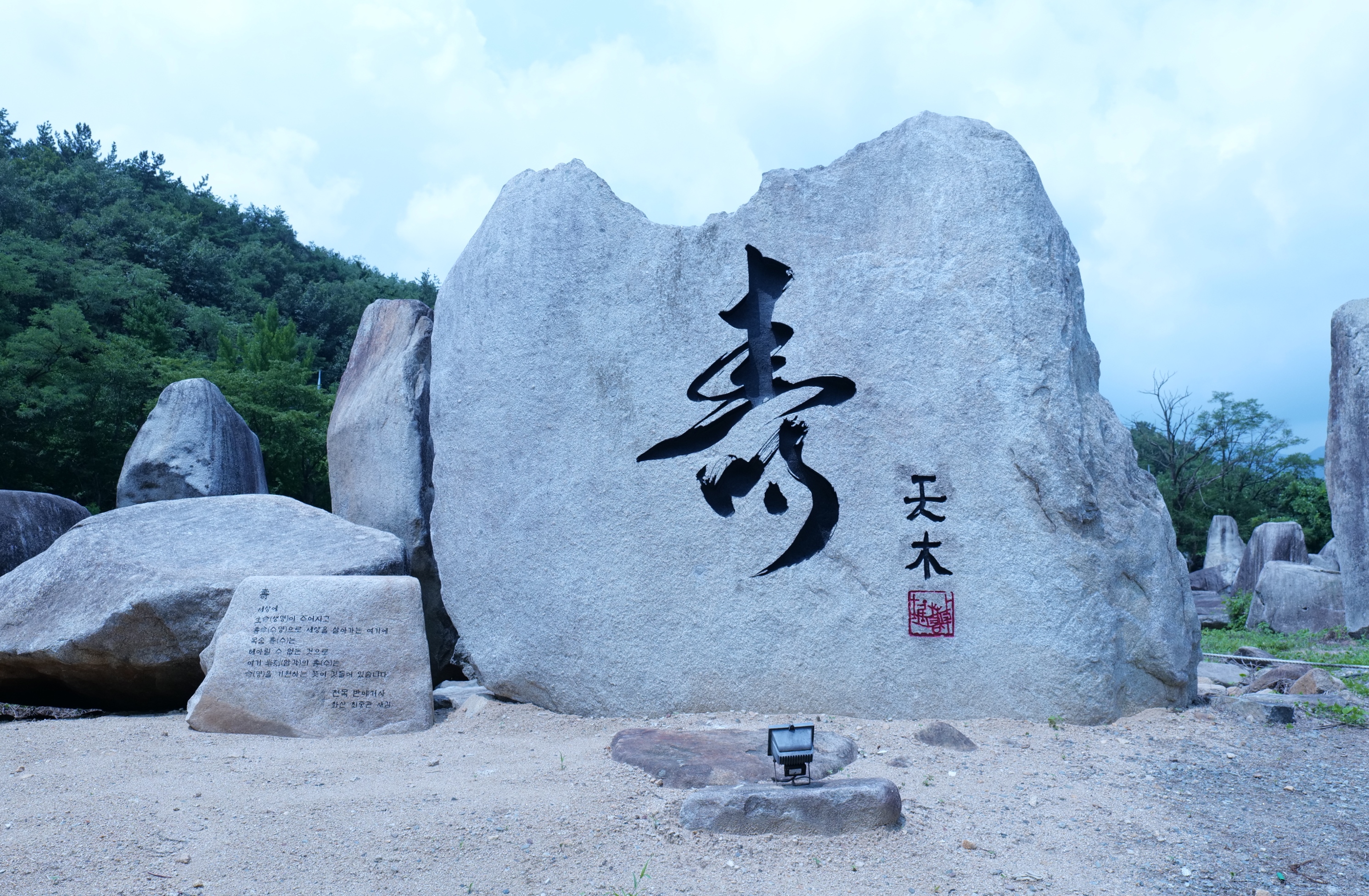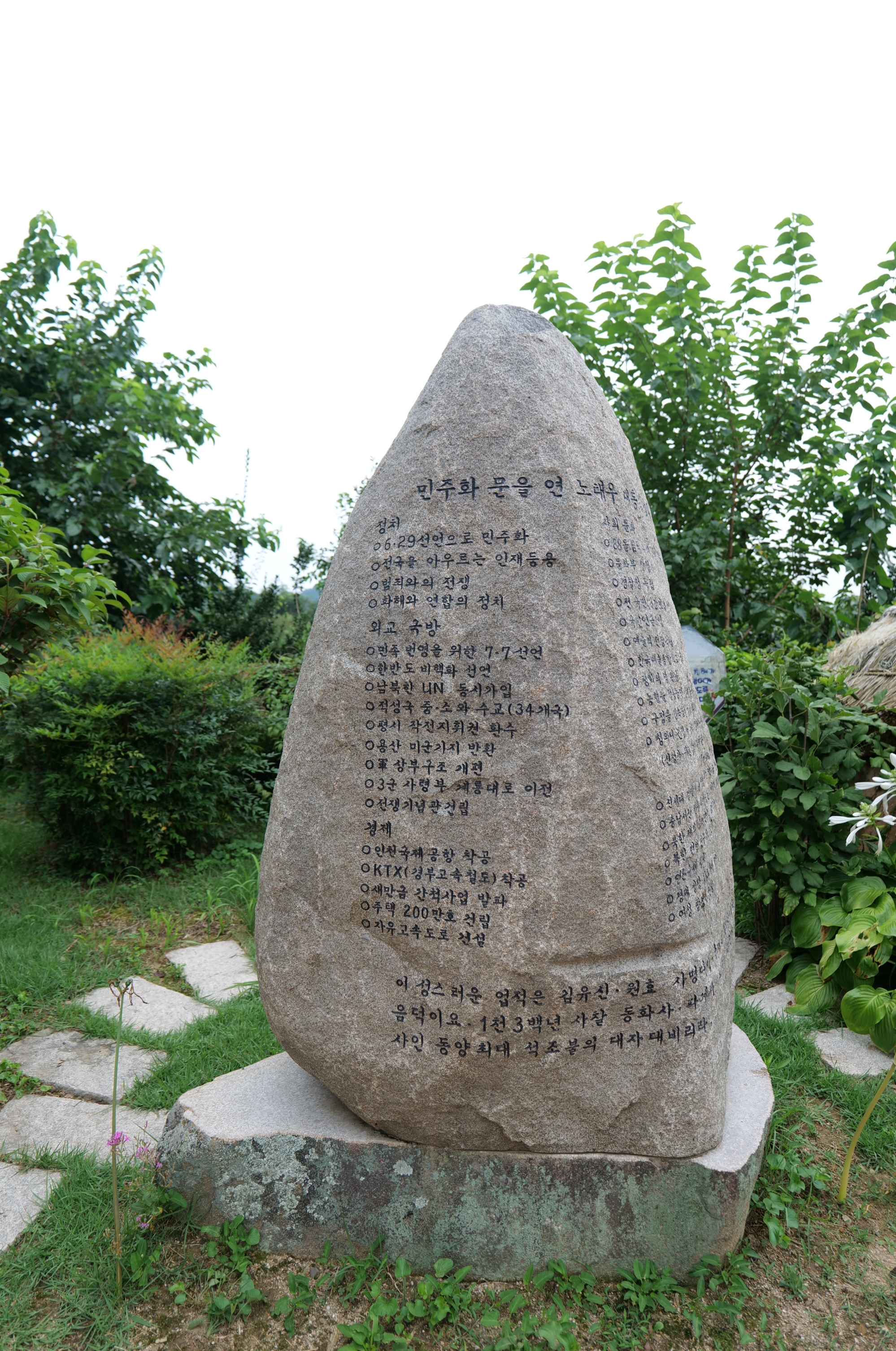 한쪽 도로변에는 시를 새긴 바위가 도로변을 따라 줄지어 있다.