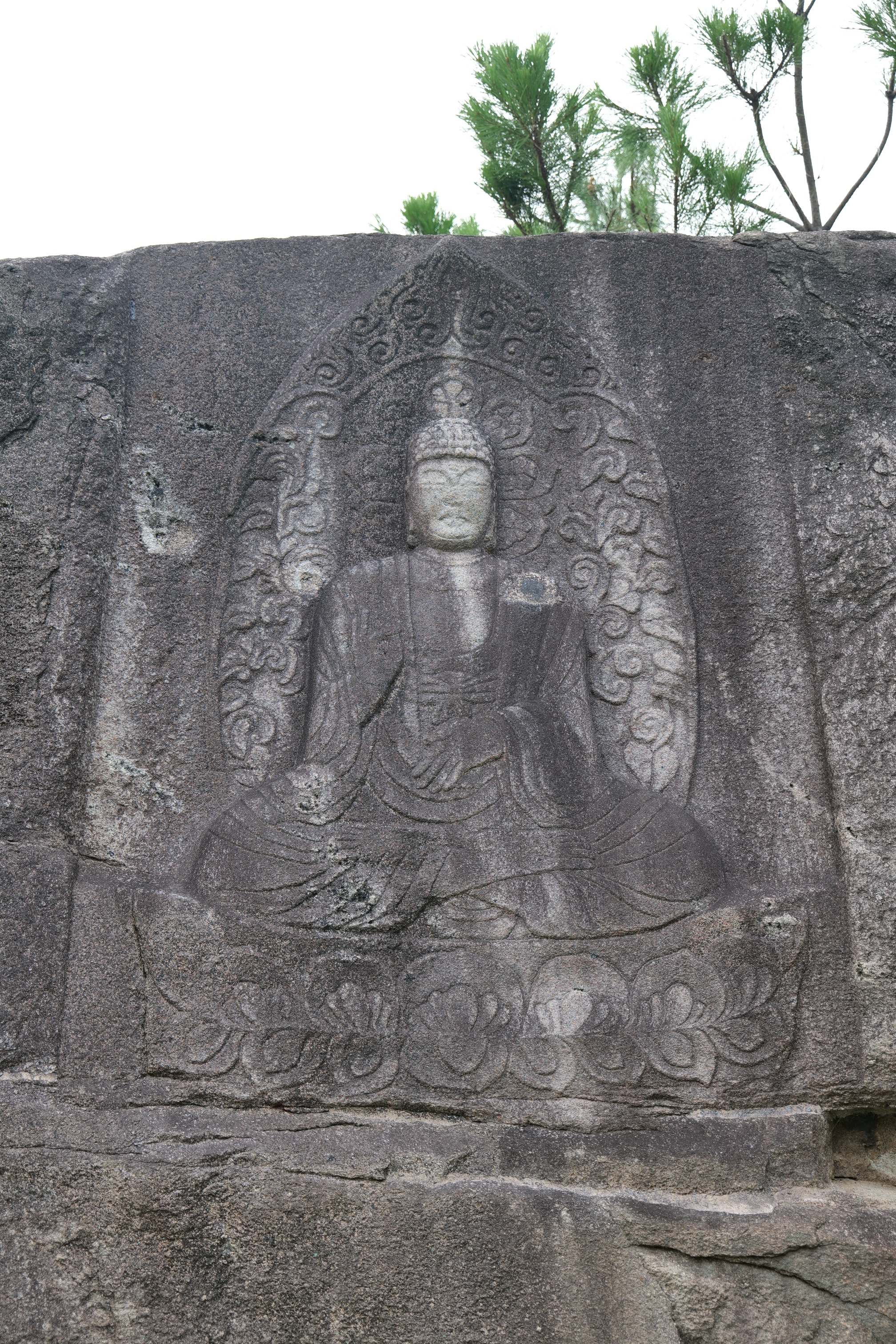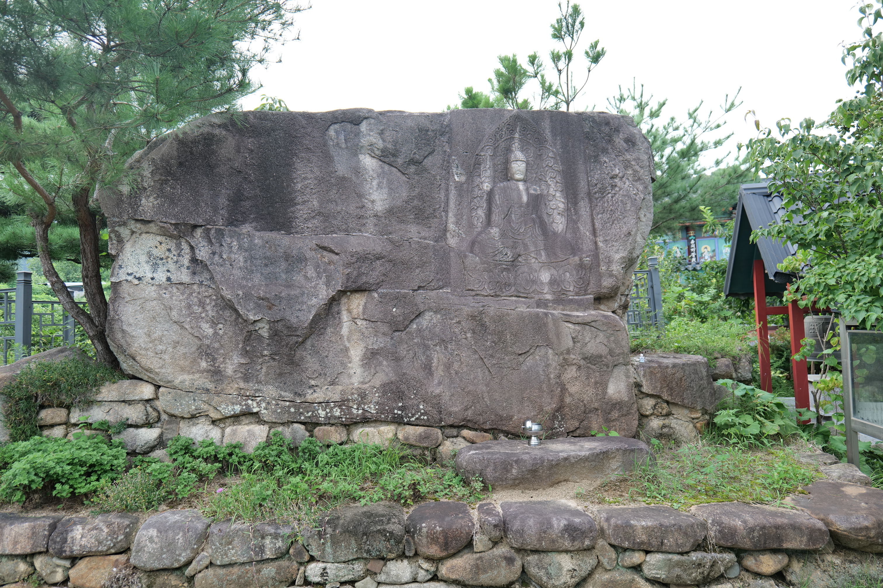 바위면에 감실 모양으로 얕게 파고 그 곳에 돋을새김한 좌불이다.(대구광역시 유형문화재 재18호)