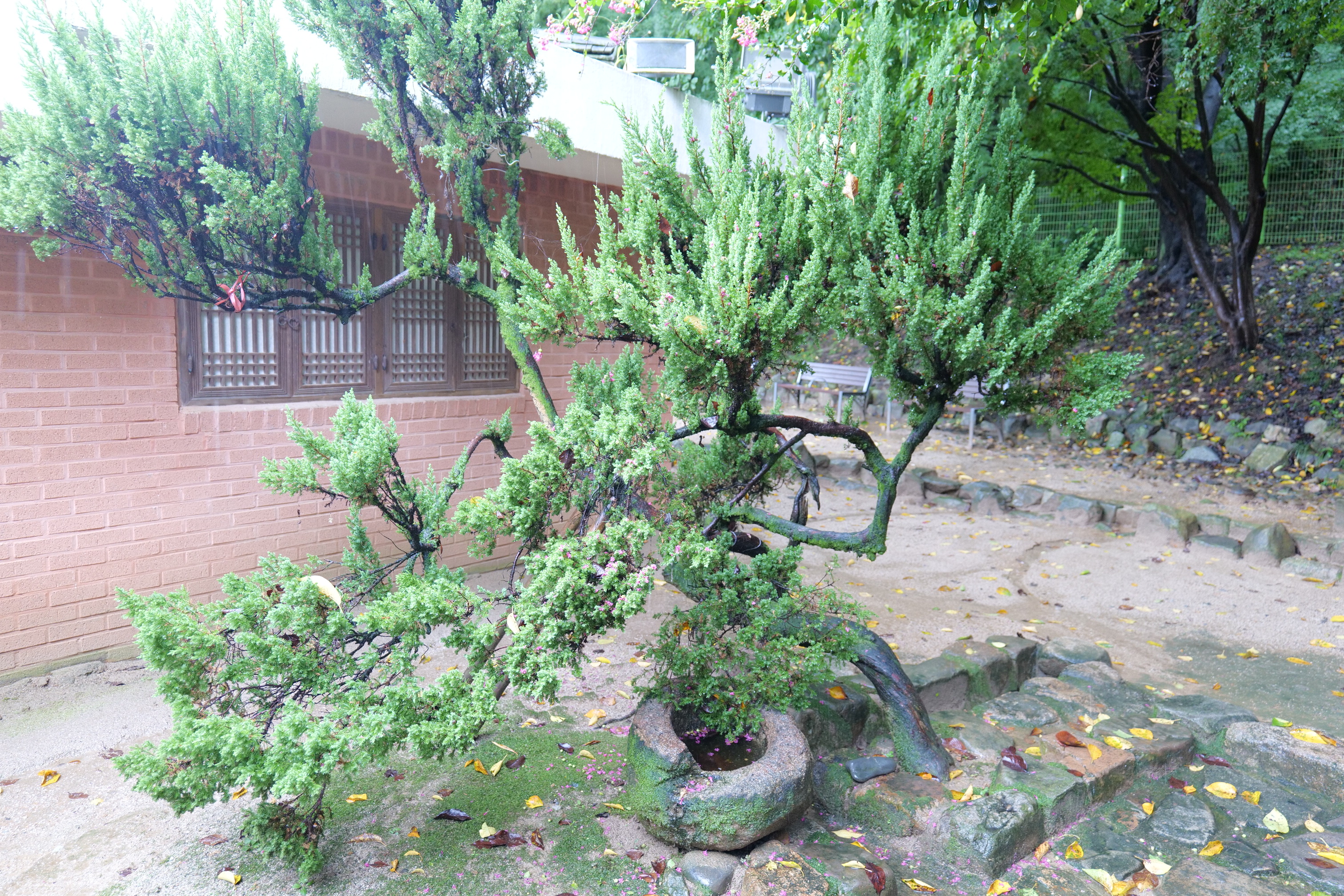 우물가 향나무 한그루가 있으나 그늘이어서인지 약해 보인다.