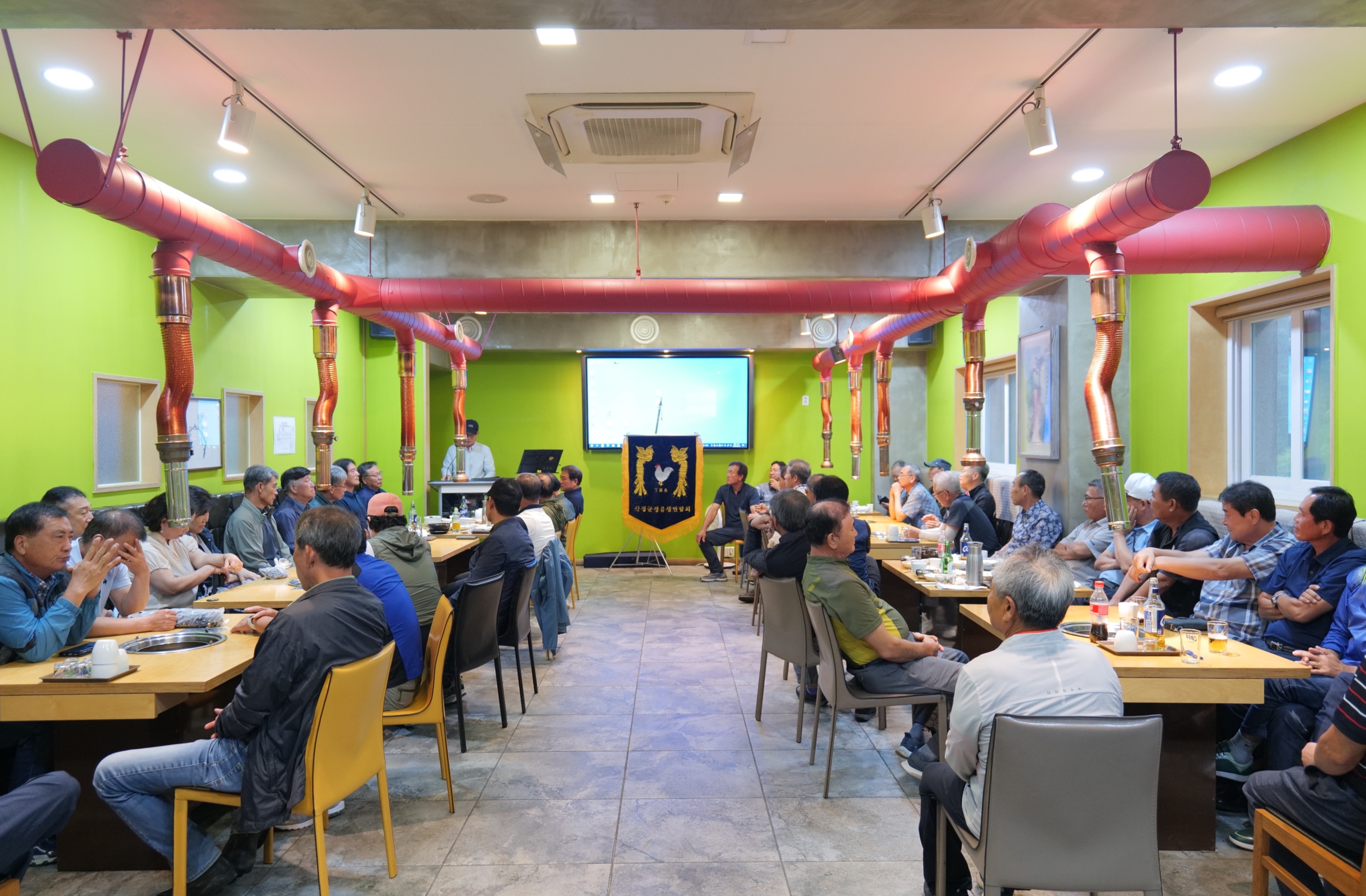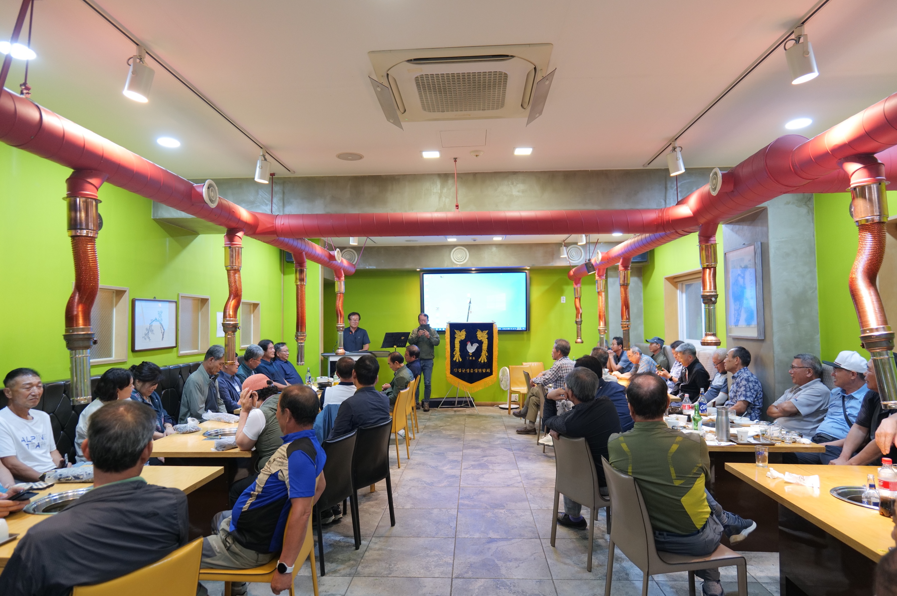 당초에는 금오산 저수지 주변에서 총회를 개최할려고 했는데 비로 인해 주인에게 양해를 구하니 흔쾌히 허락한다.