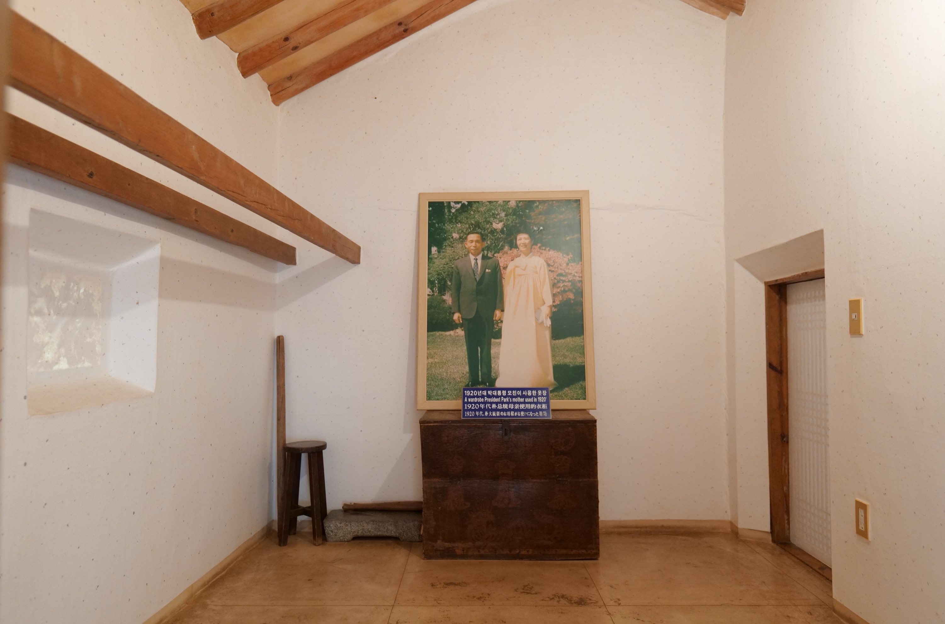 박대통령께서는 이 방에서 1917년 11월 14일 태어나시어 1937년 대구사범학교를 졸업하시고 문경초등학교 교사로 부임할 때까지 거처했던 방이다.