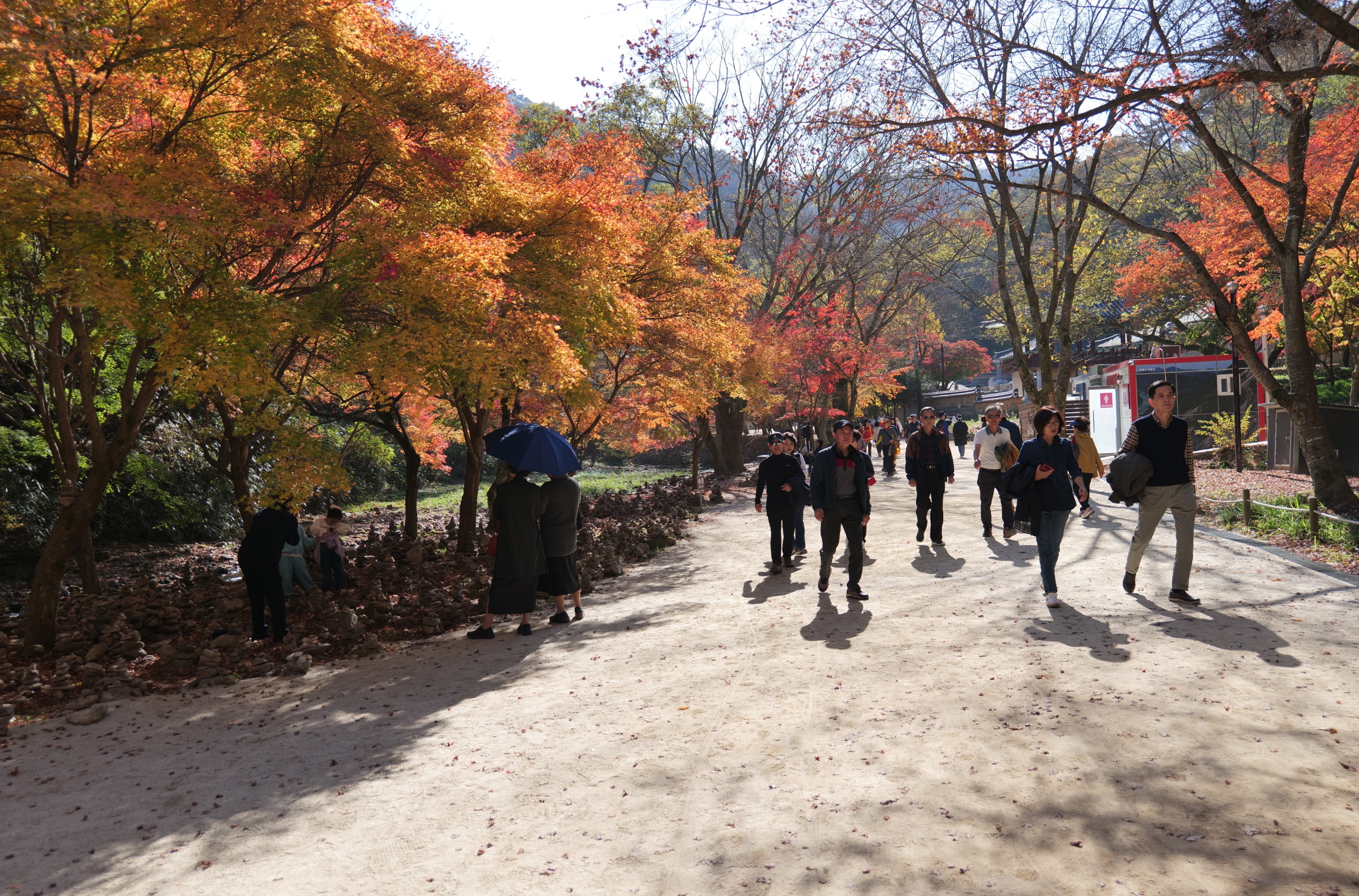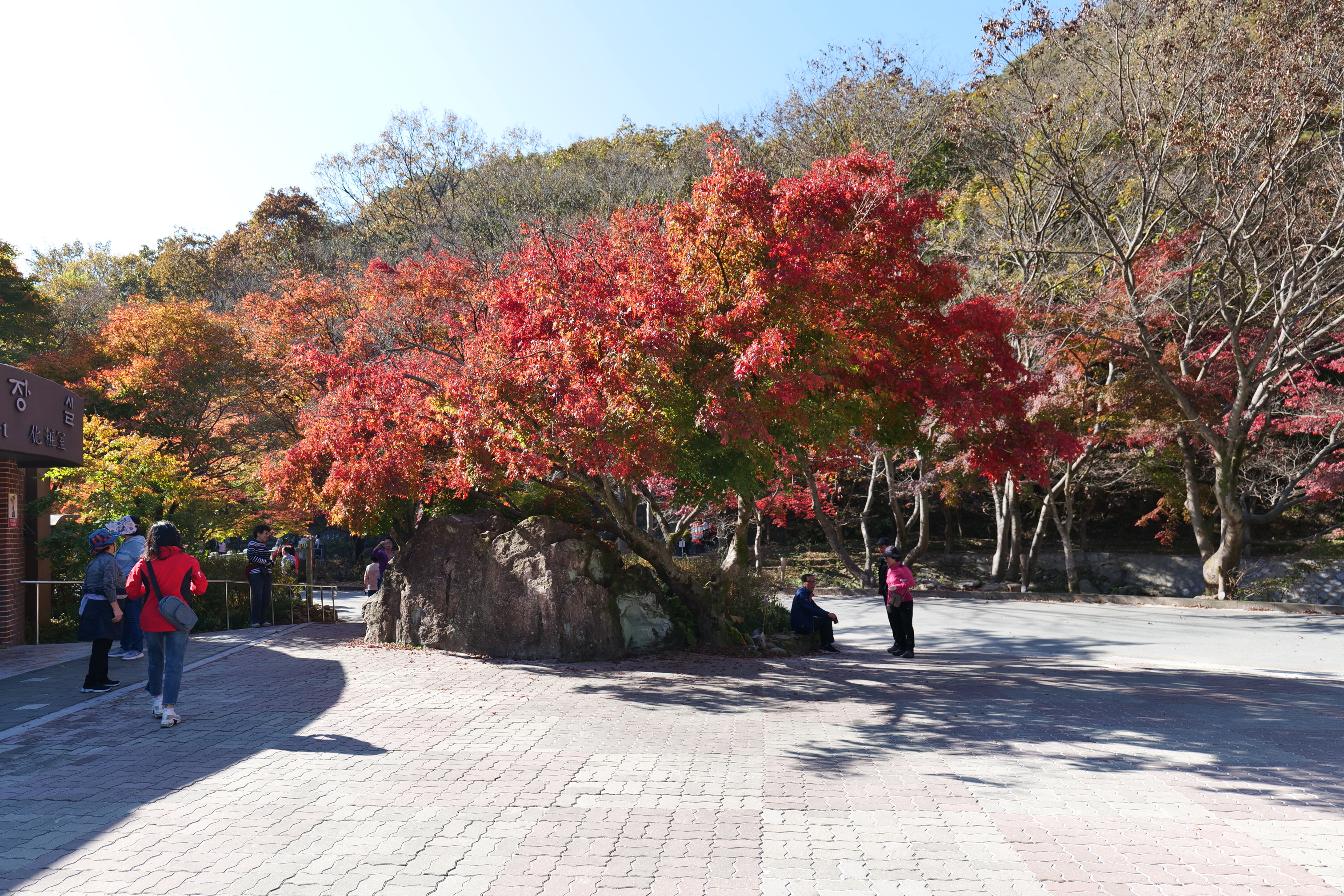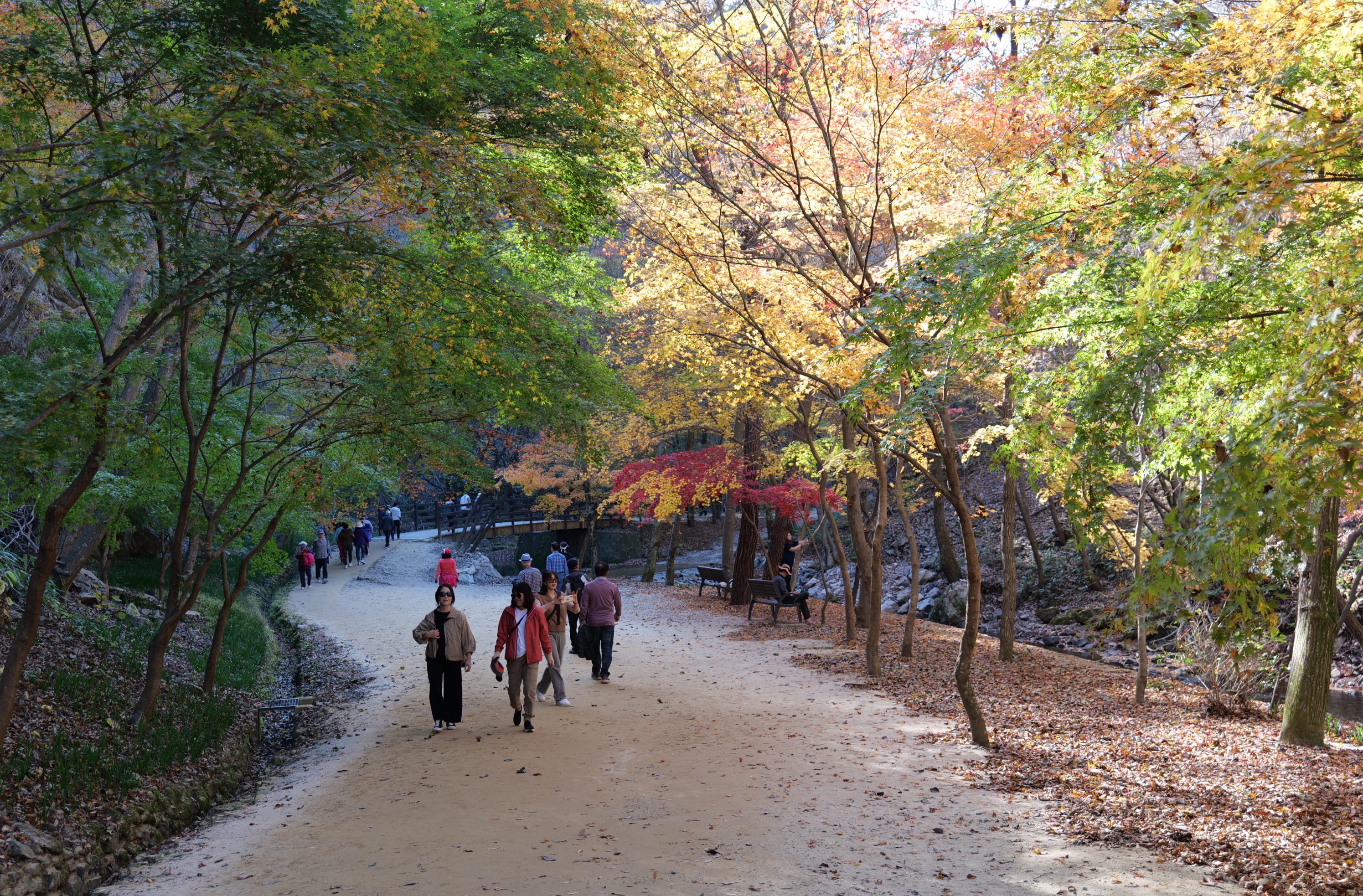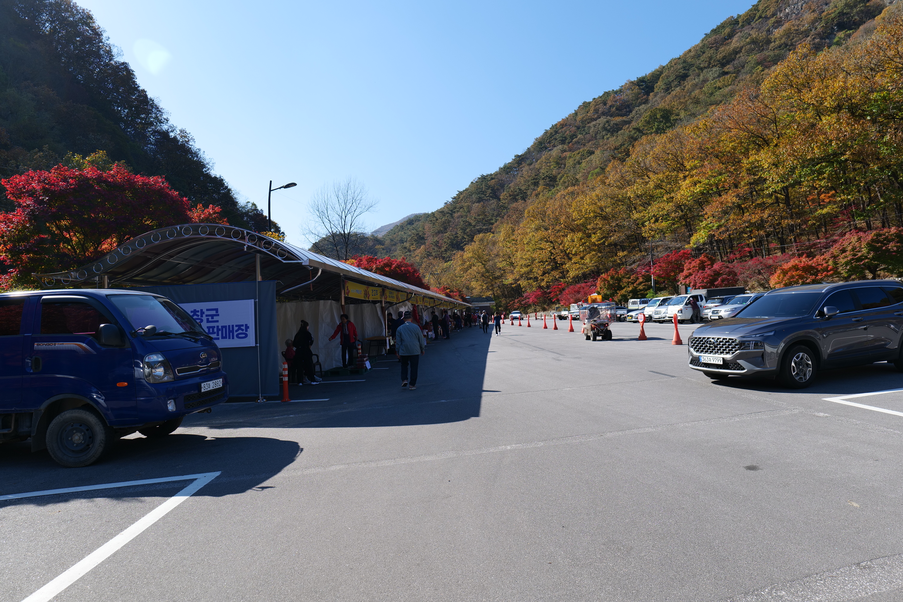 단풍철이라 도로변에 넓게 조성한 주차장에 주차한다,
