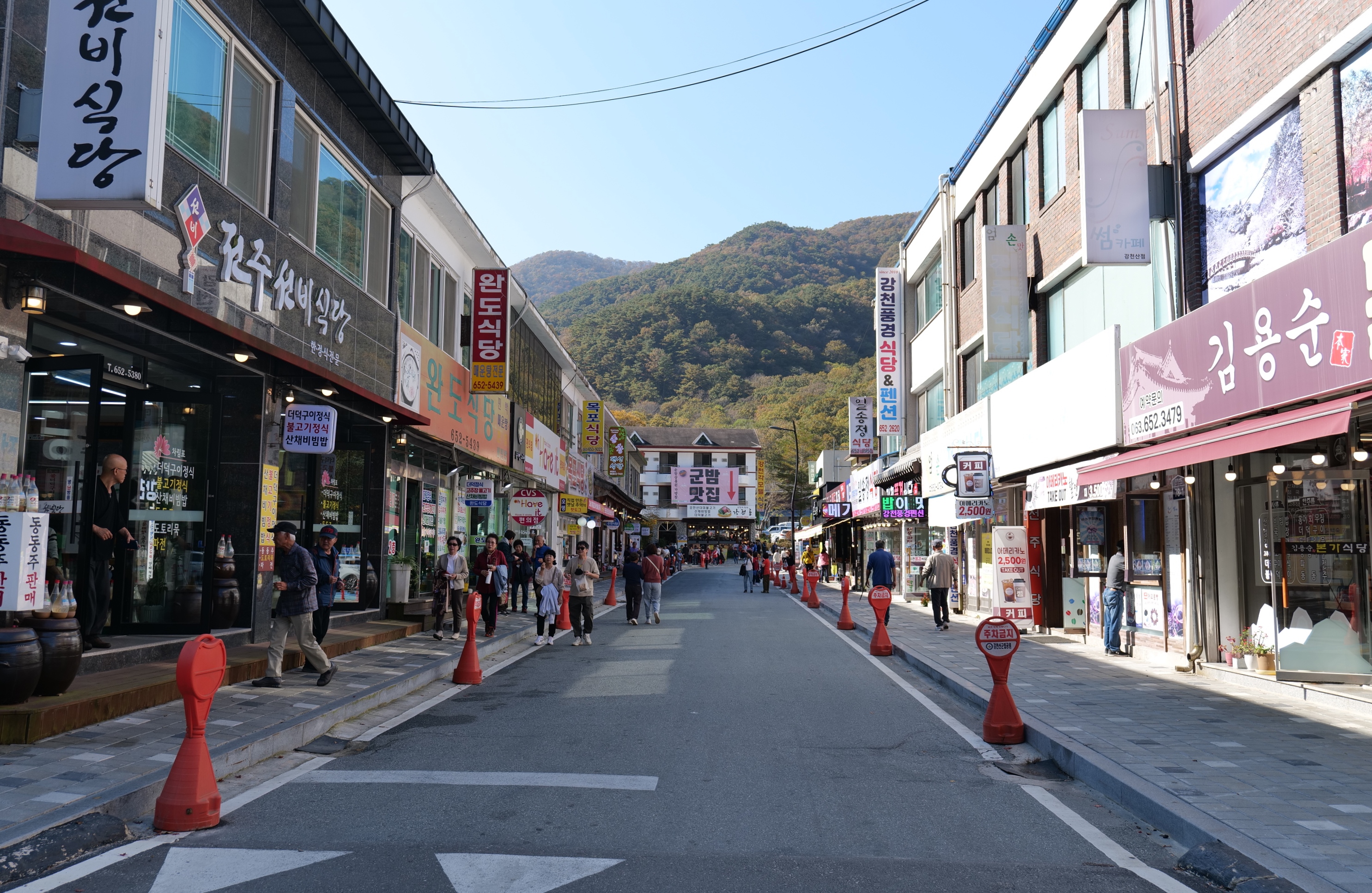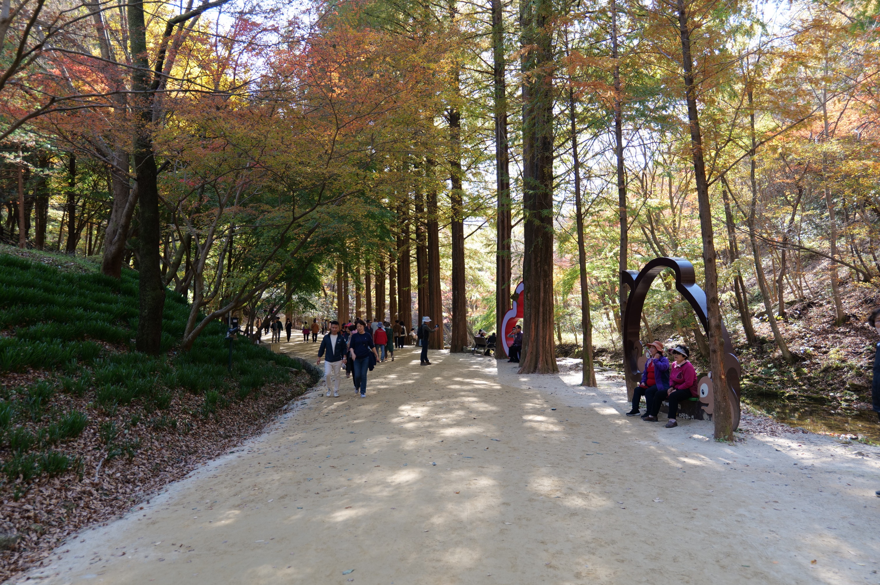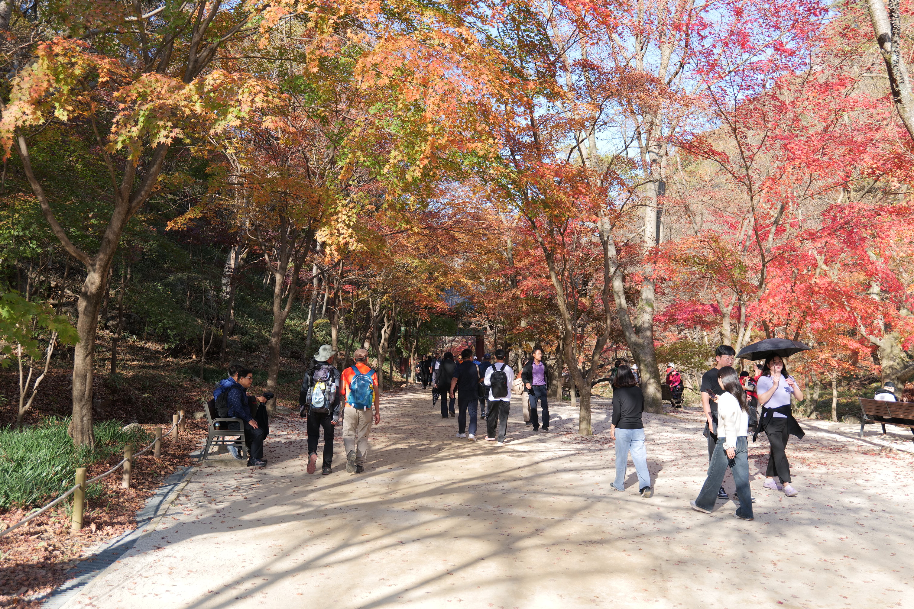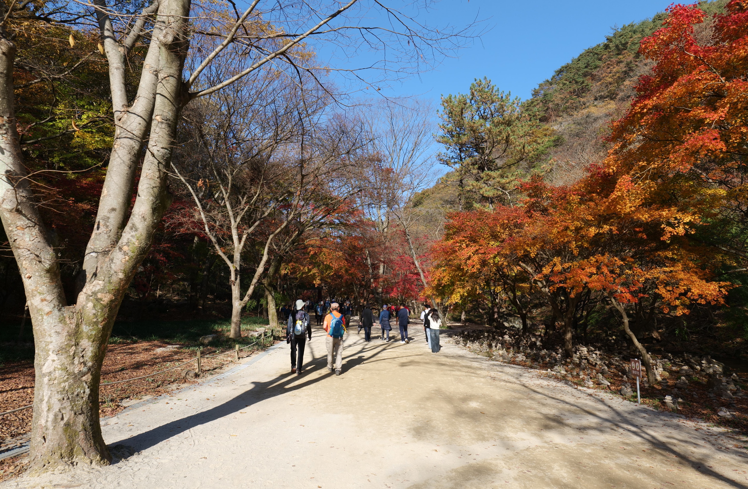 단풍철이라 도로변에 넓게 조성한 주차장에 주차한다,