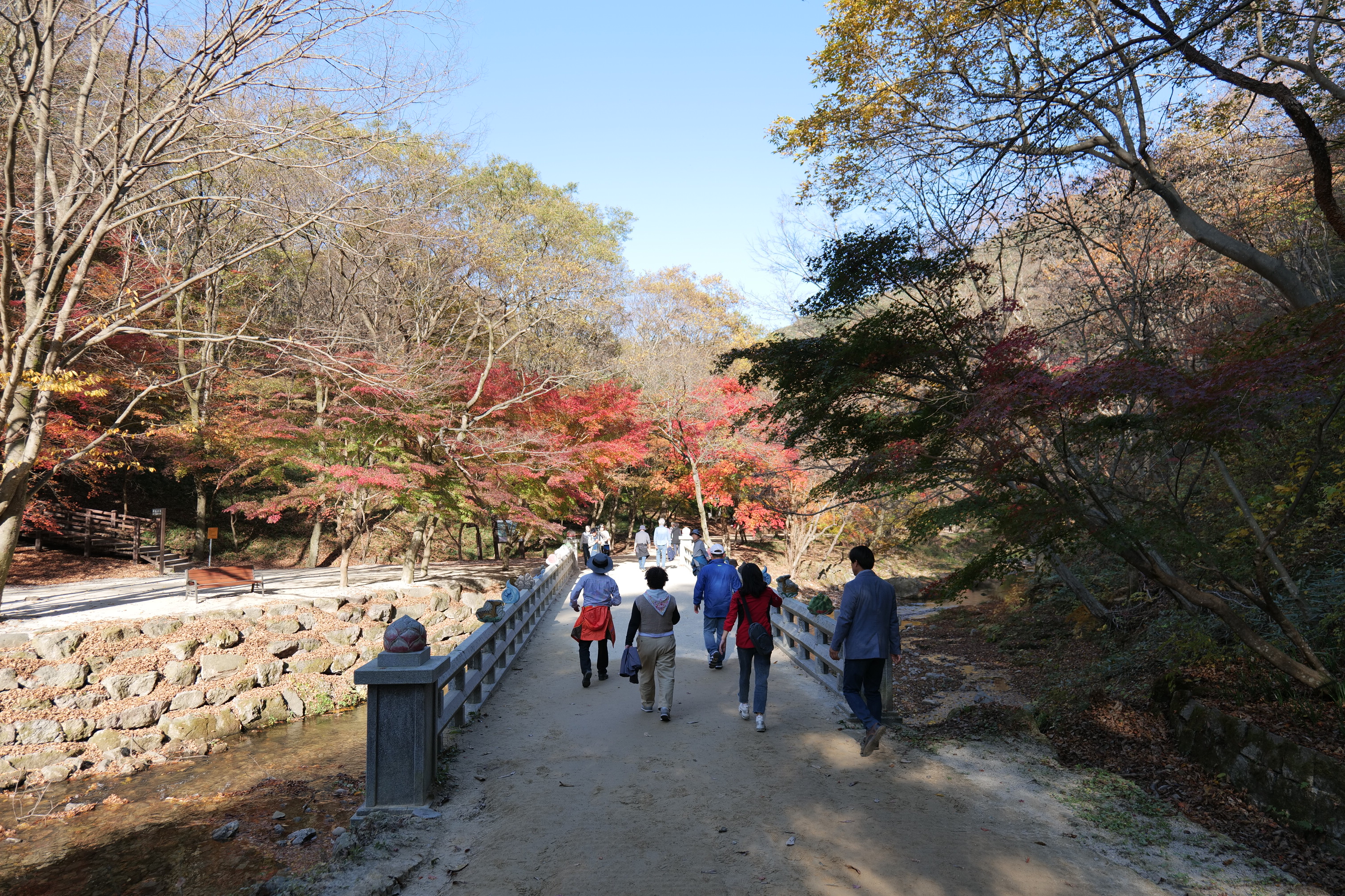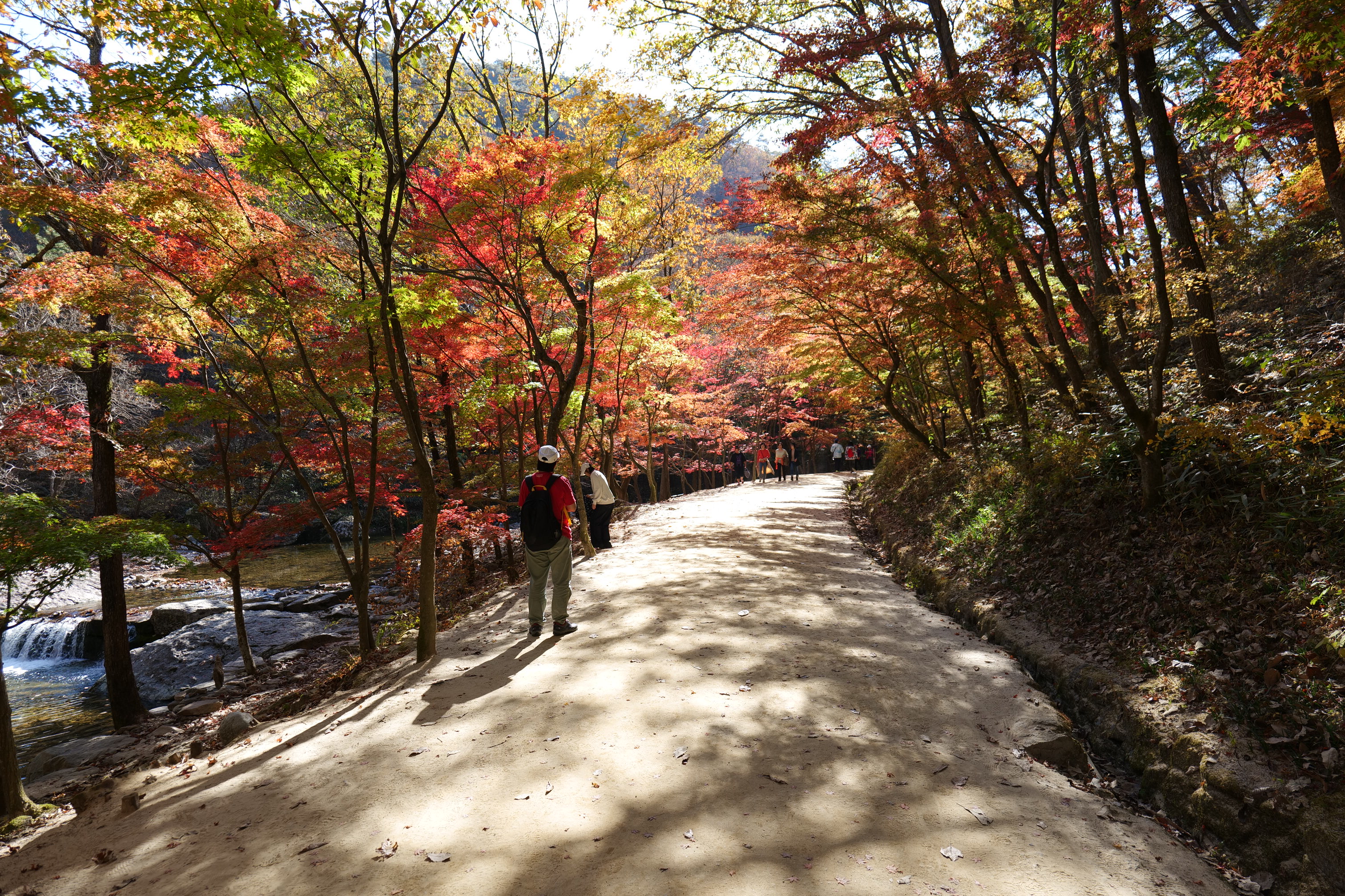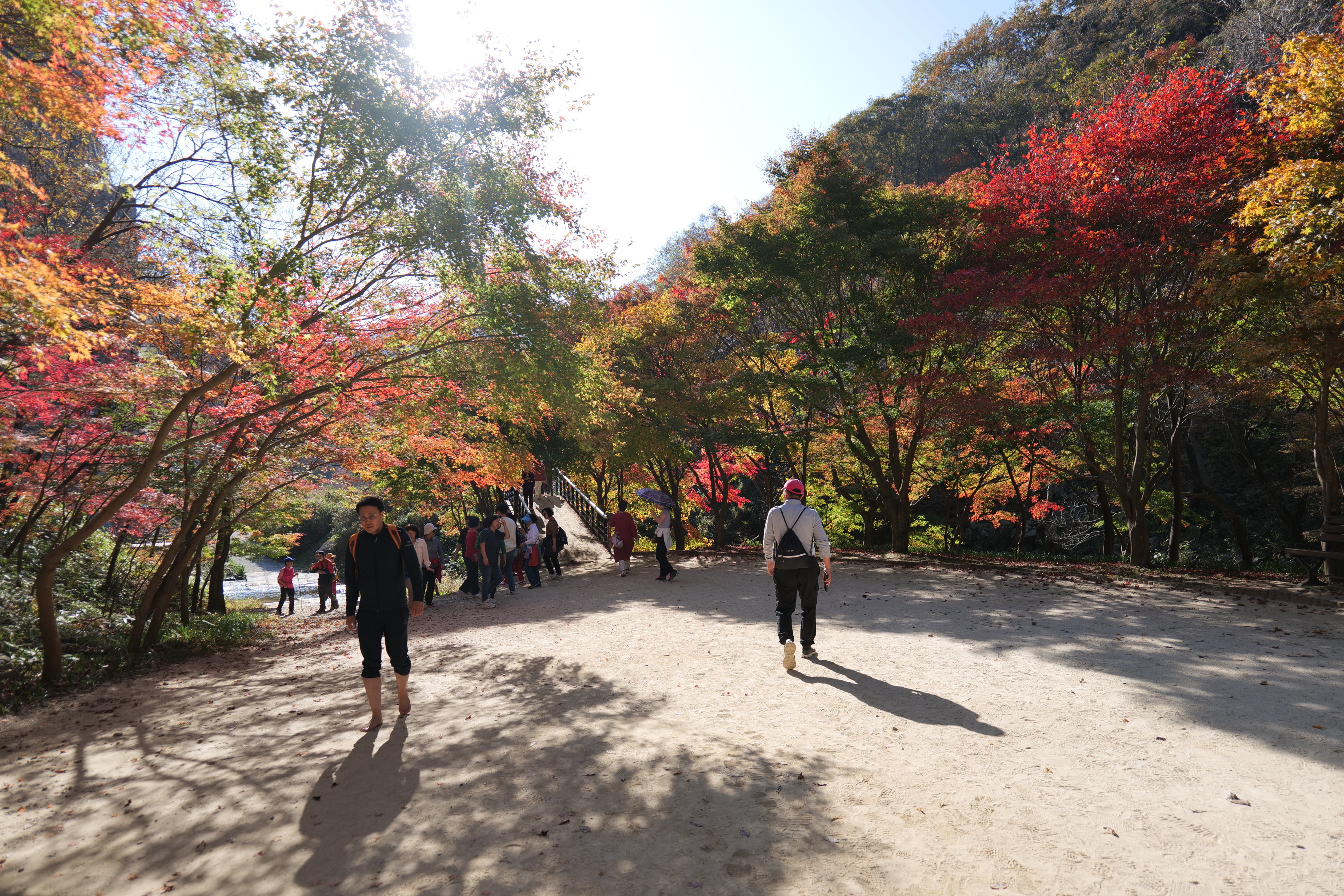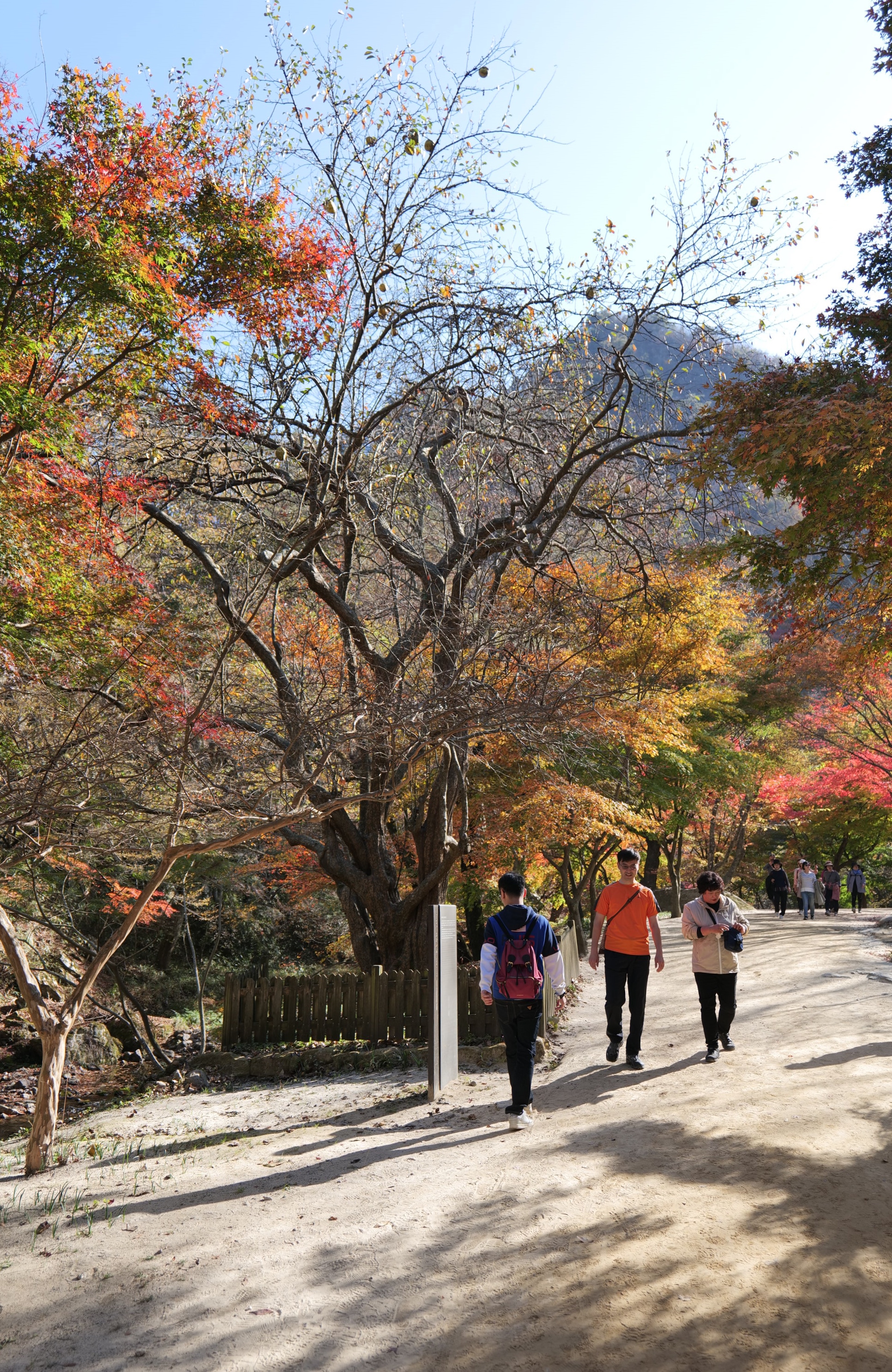순창 강천산은 단풍으로 유명한 산이다. 입구에서 구장군폭포까지 편도 약3~4km구간이 편안한 길이어서 사철 많은 사람들이 찾는 곳이다. 입구 도로변 주차장에서 구장군폭포까지 가는데 약1시간, 되돌아 오는데 1시간, 합해서 2시간쯤 계산잡으면 된다.