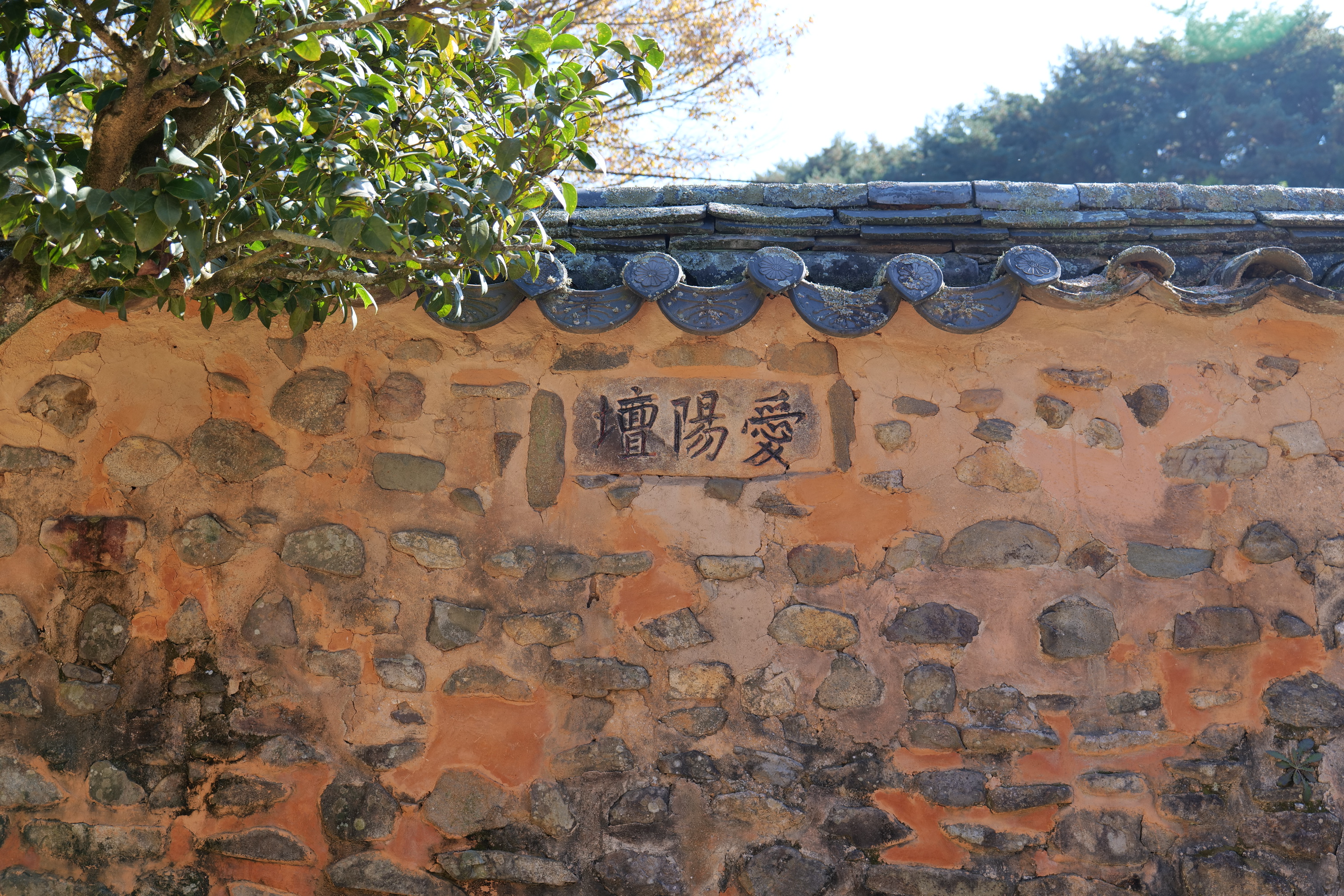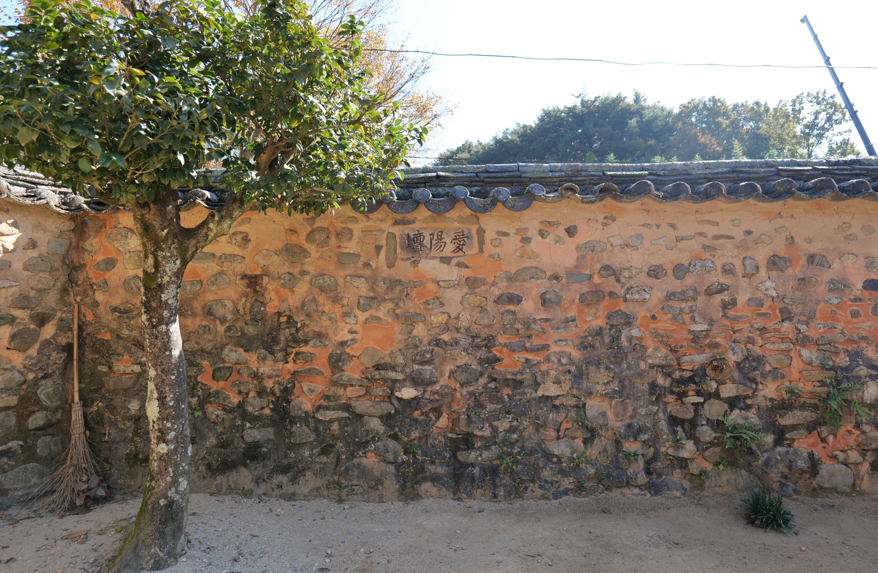 길이 약 33m의 담벼락이 꺽이는 곳에 애양단이란 글자를 석판에 새겼다.