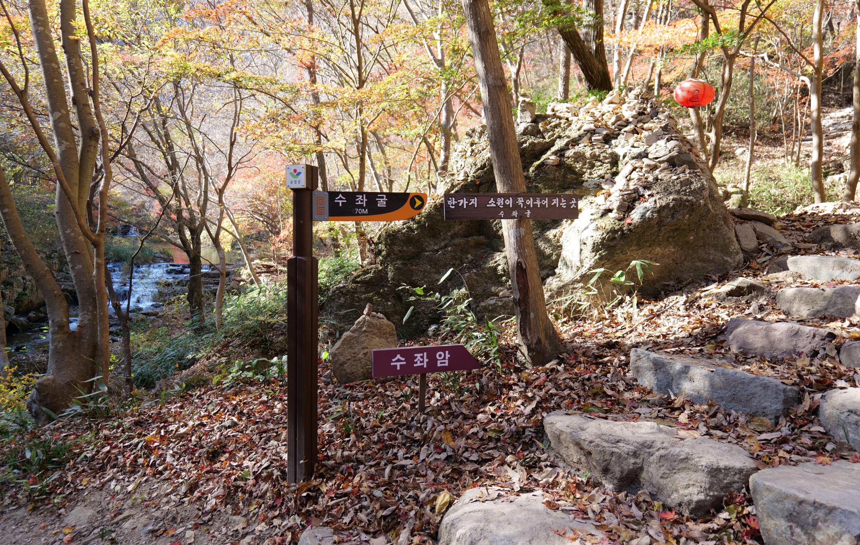 수좌굴은 비교적 근년에 탐방로를 개설했다. 구장군 폭포까지 갔다가 되돌아 오면서 둘러볼 것이다.