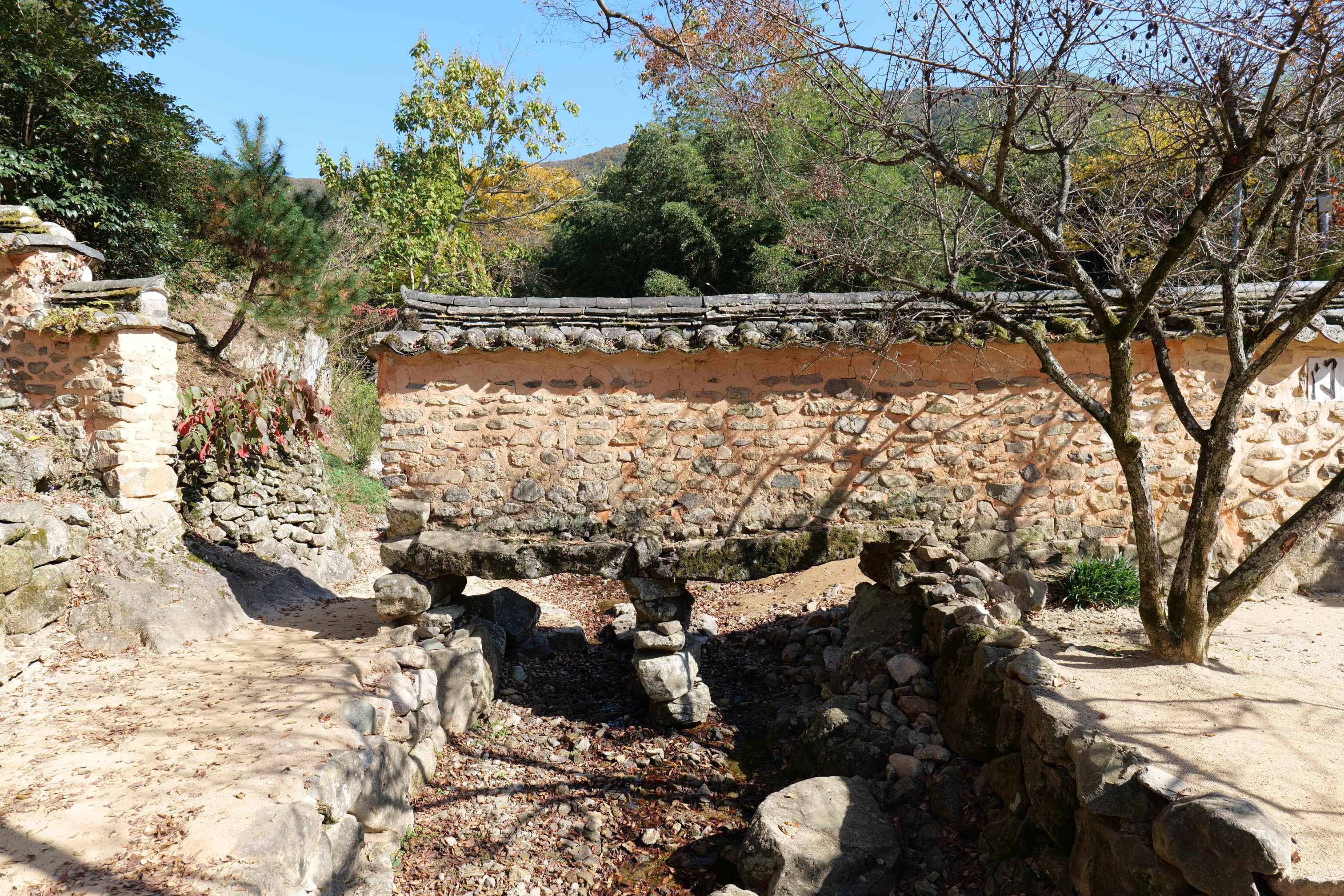 물길이 흐르는 저곳을 오곡문이라 할 수는 없고, 사람이 다닐 수 있는 좌측의 빈 담장을 오곡문이라 하는것 같은데 현 대문은 없다.
