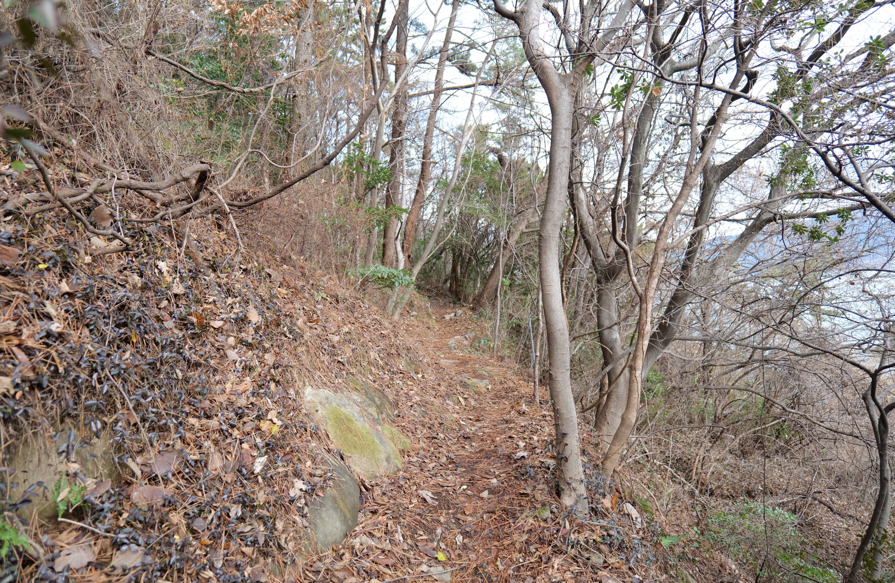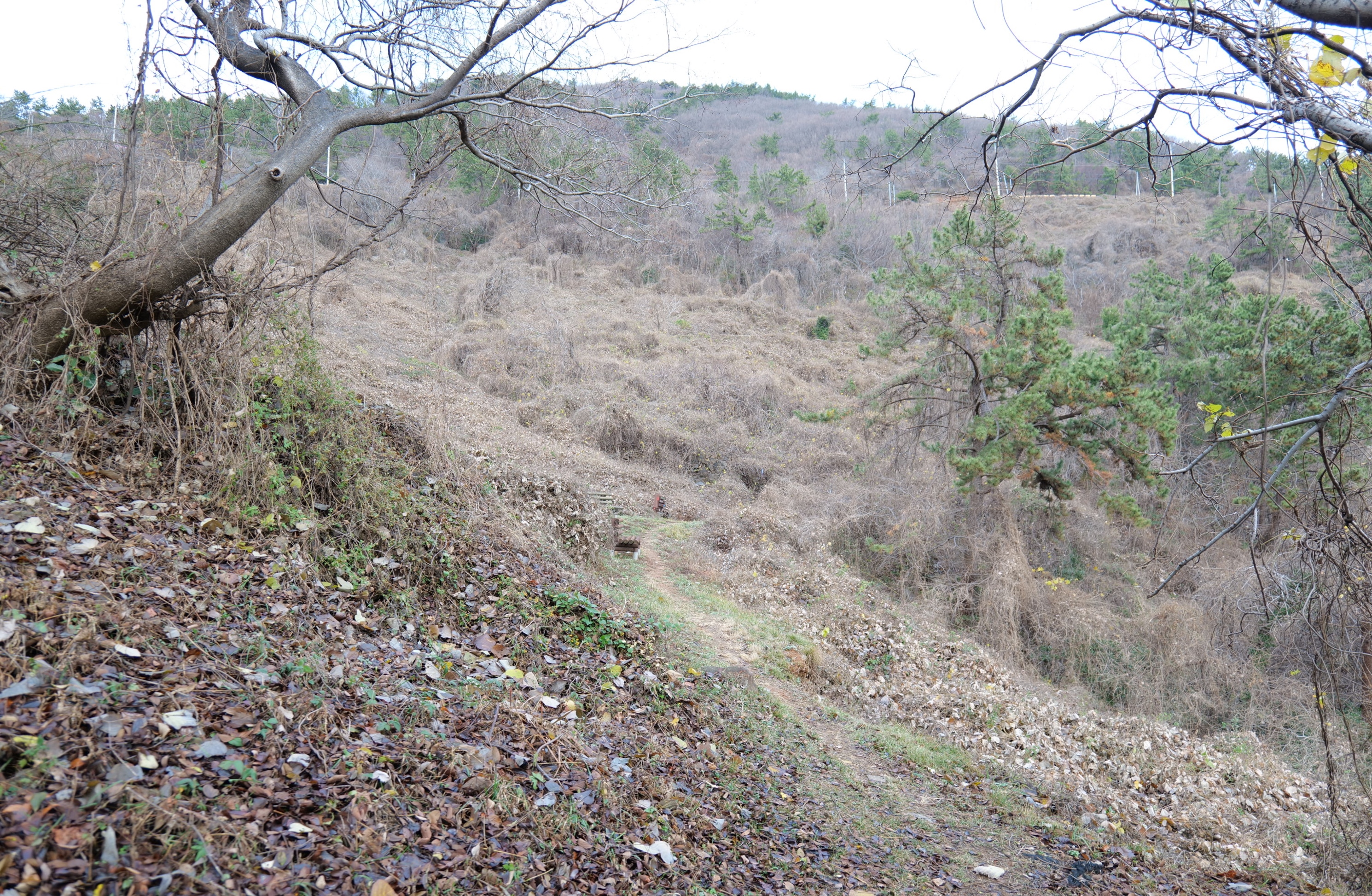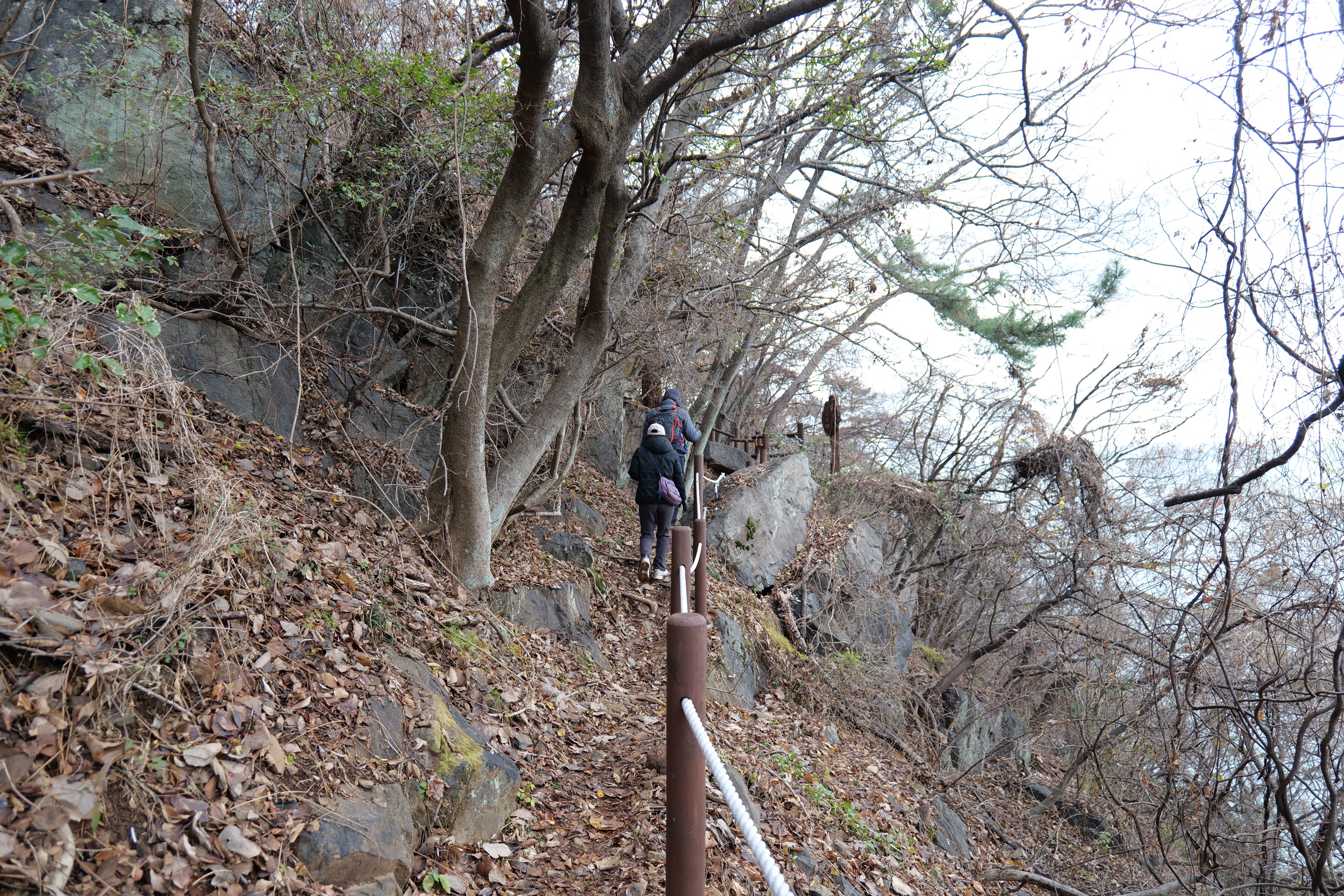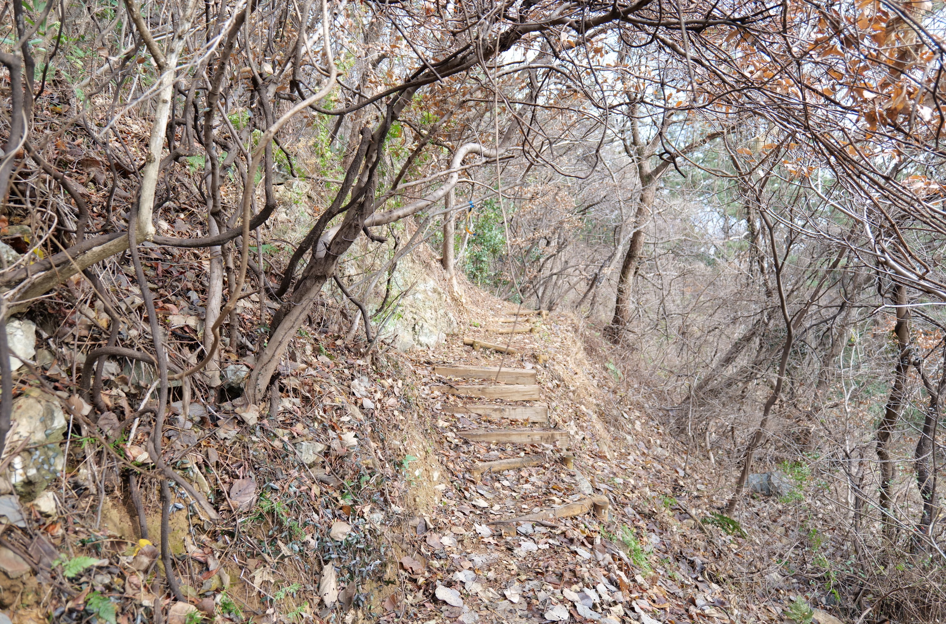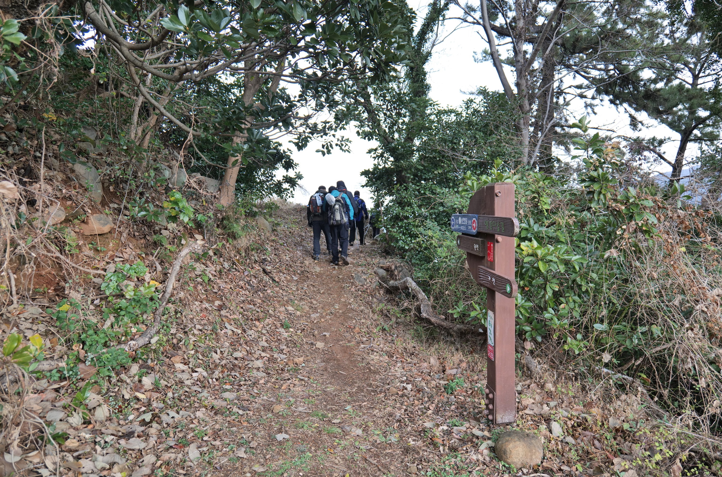 고개 정상 직전에 갈림길이 있으나 이정표, 안내 리본을 참고하여 직진한다.