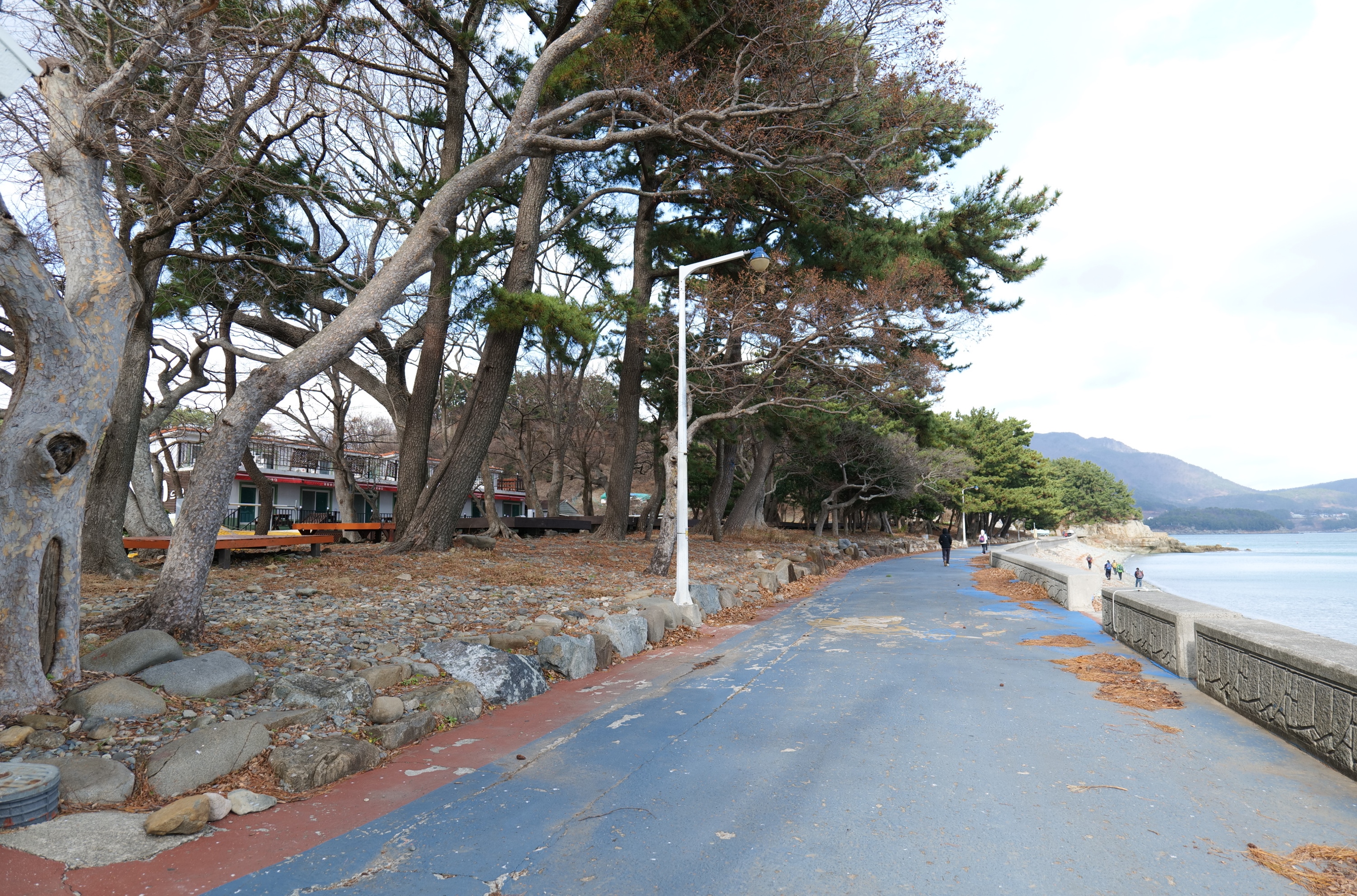 우측으로보이는 해안산책로는 출입금지 상태다.
