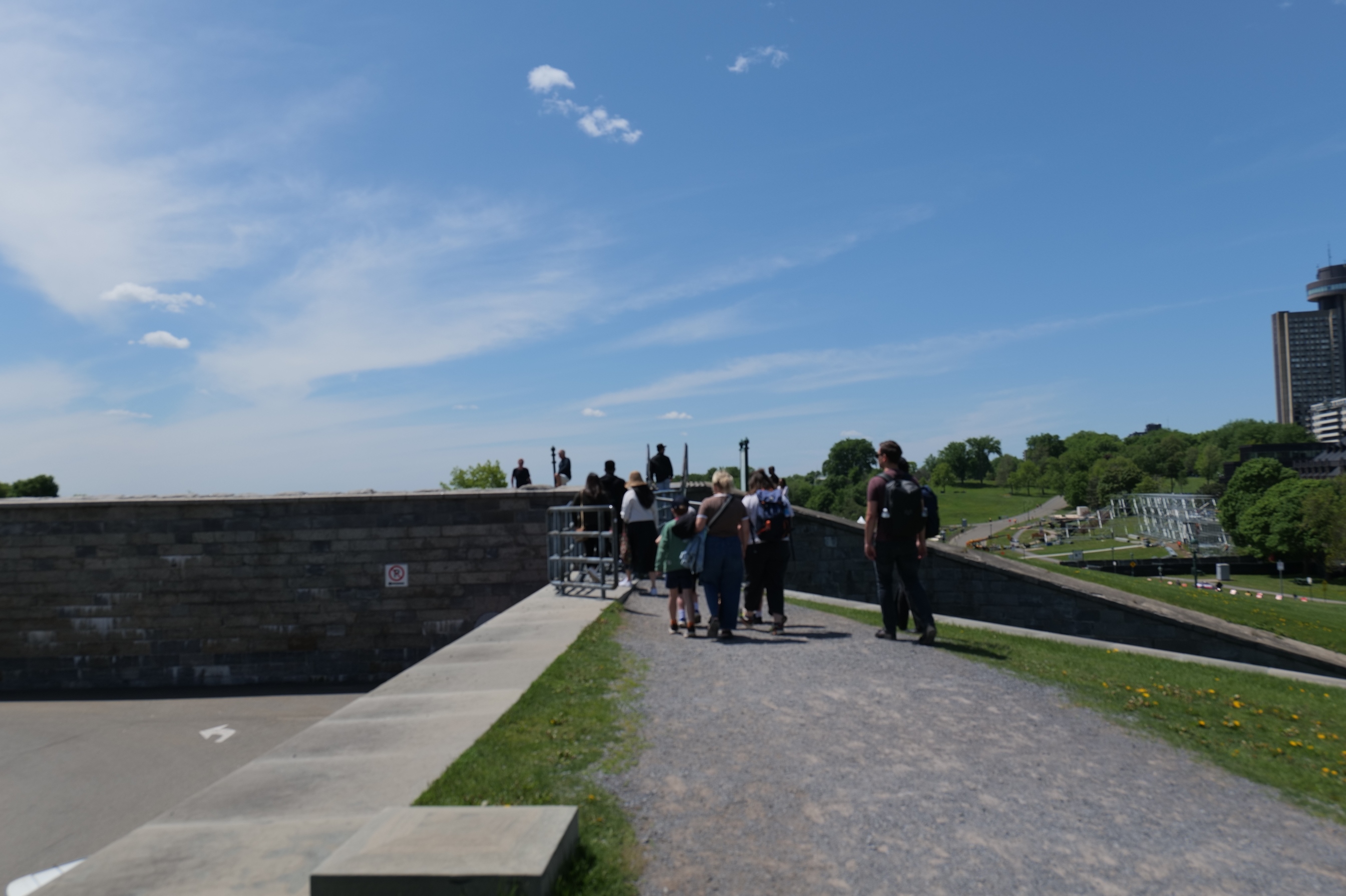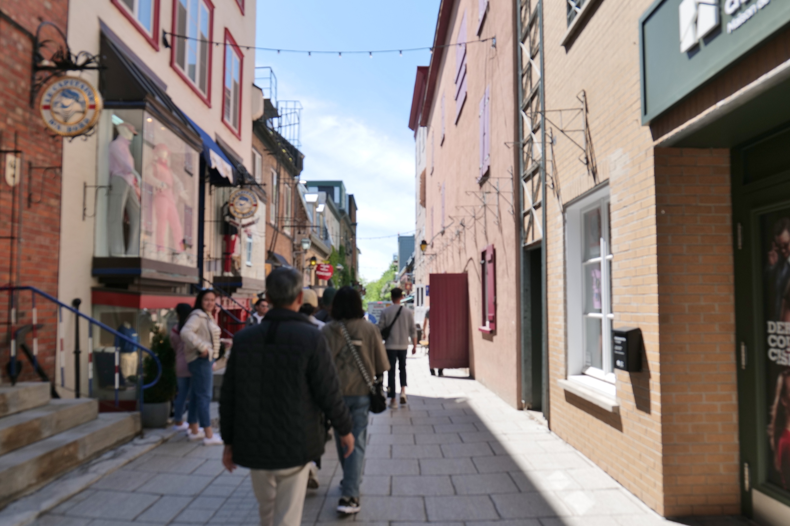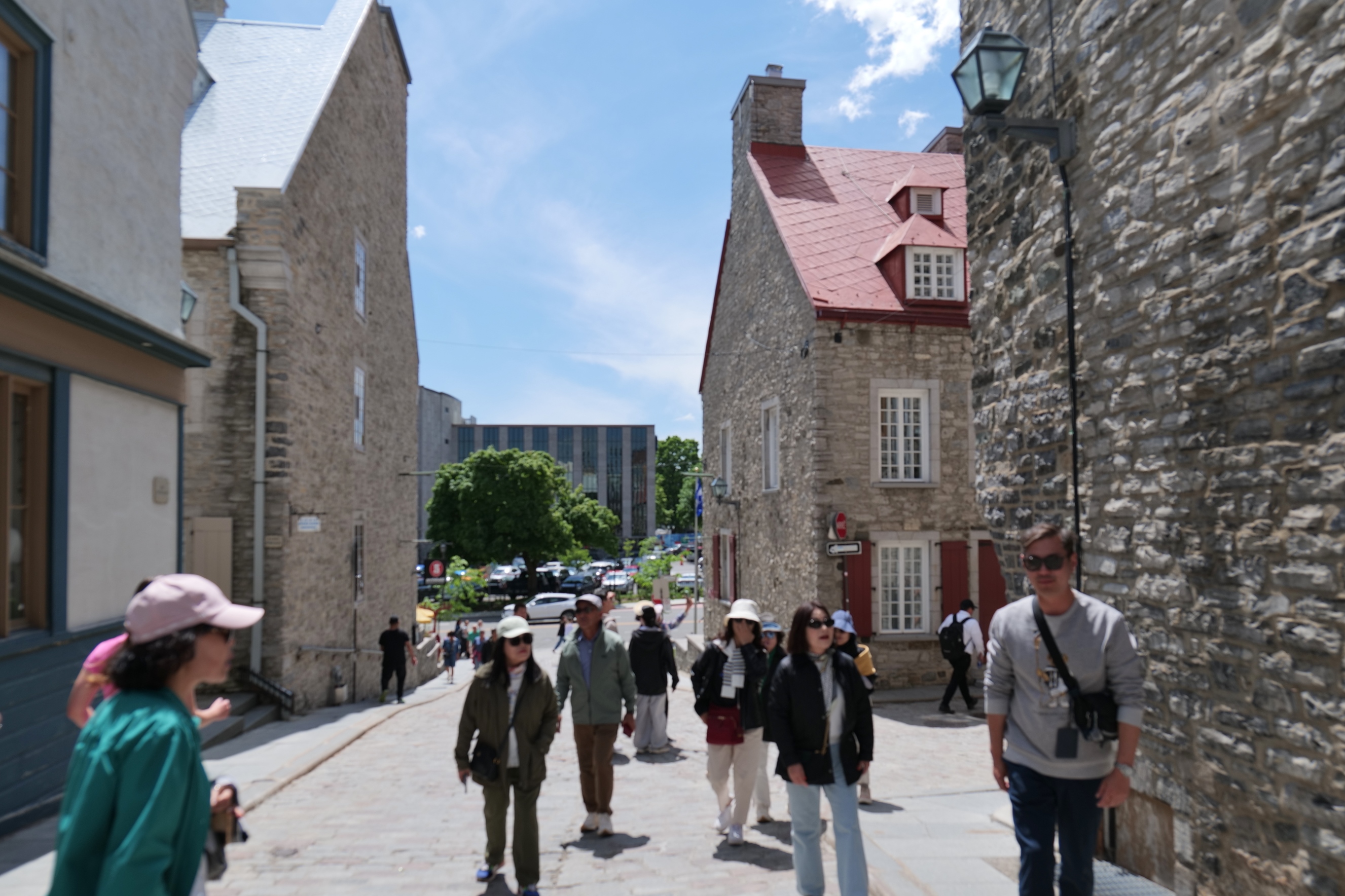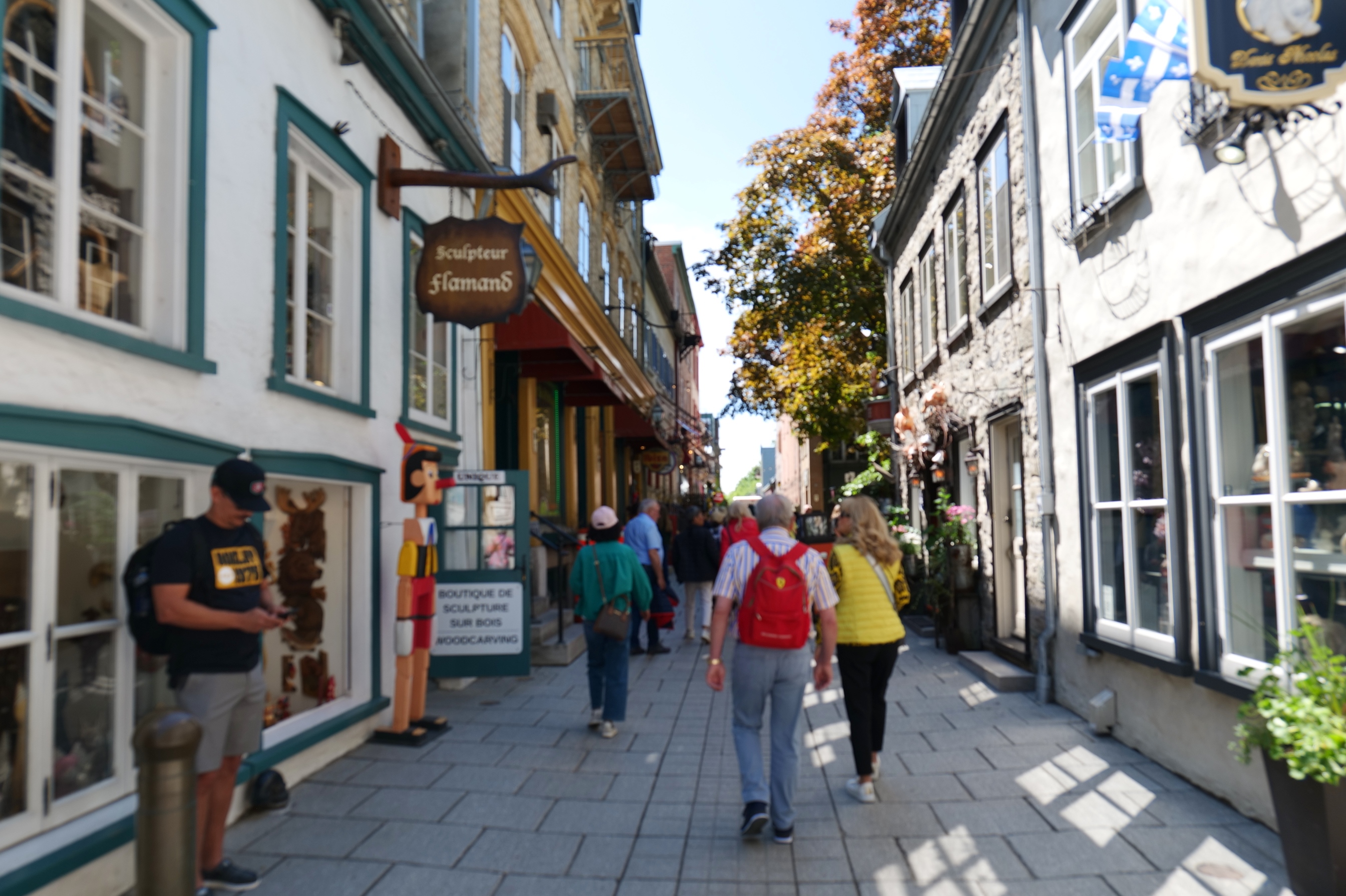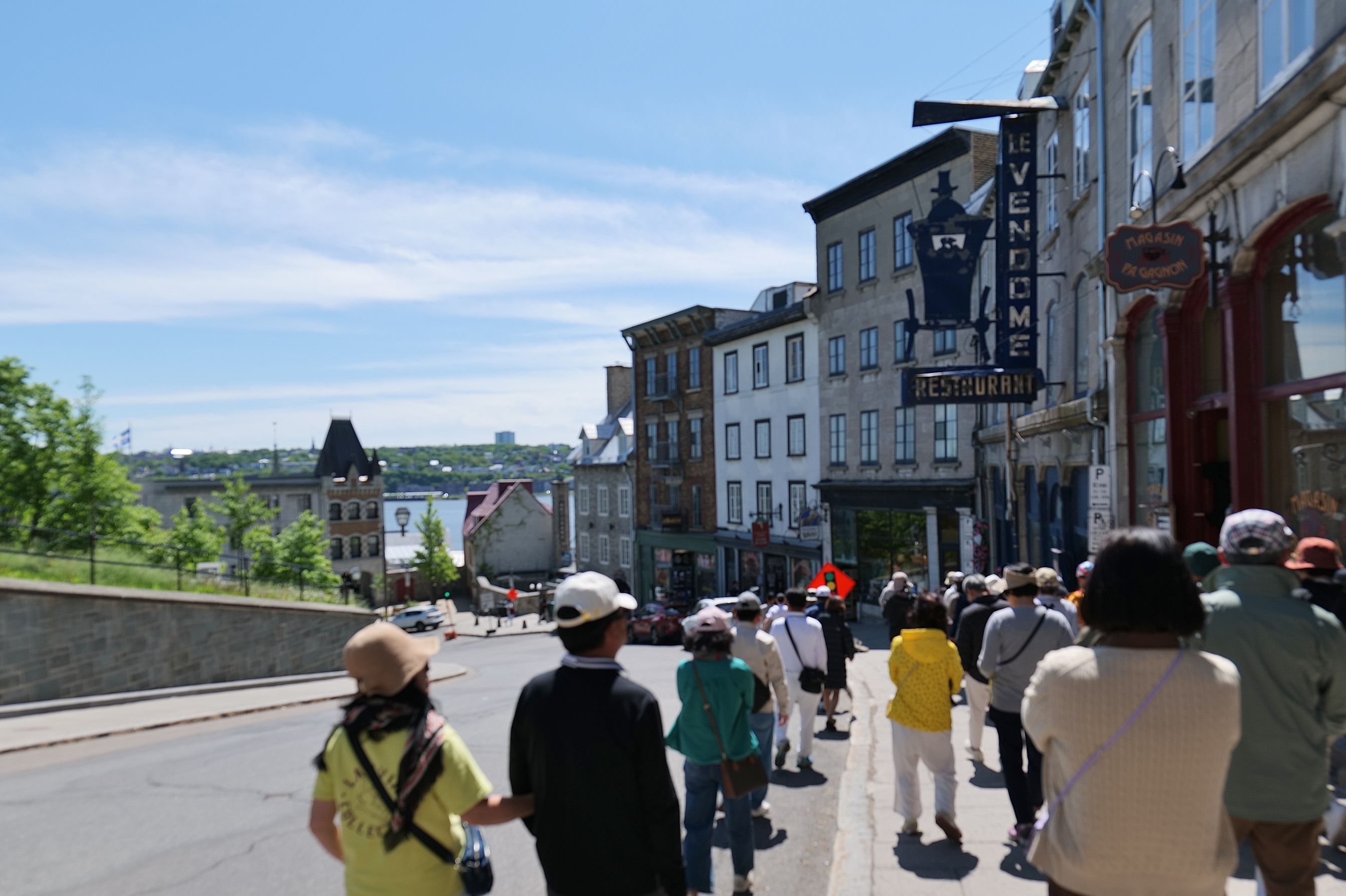 퀘백 시내에서의 주요 관광은 어퍼타운(Upper Town)과 로워 타운(Lower Town)이다. 샤토 프롱트낙 호텔을 중심으로 한 성 안쪽을 어퍼 타운, 세인트로렌스강변쪽 성 밖(아래)을 로워 타운이라 부른다. 성을 한바퀴 둘러보는 것은 시간이 부족하여 대충 성을 반바퀴 둘러보는 것으로 시간을 보내고 아래 타운에서 피자 등으로 점심을 먹었다.