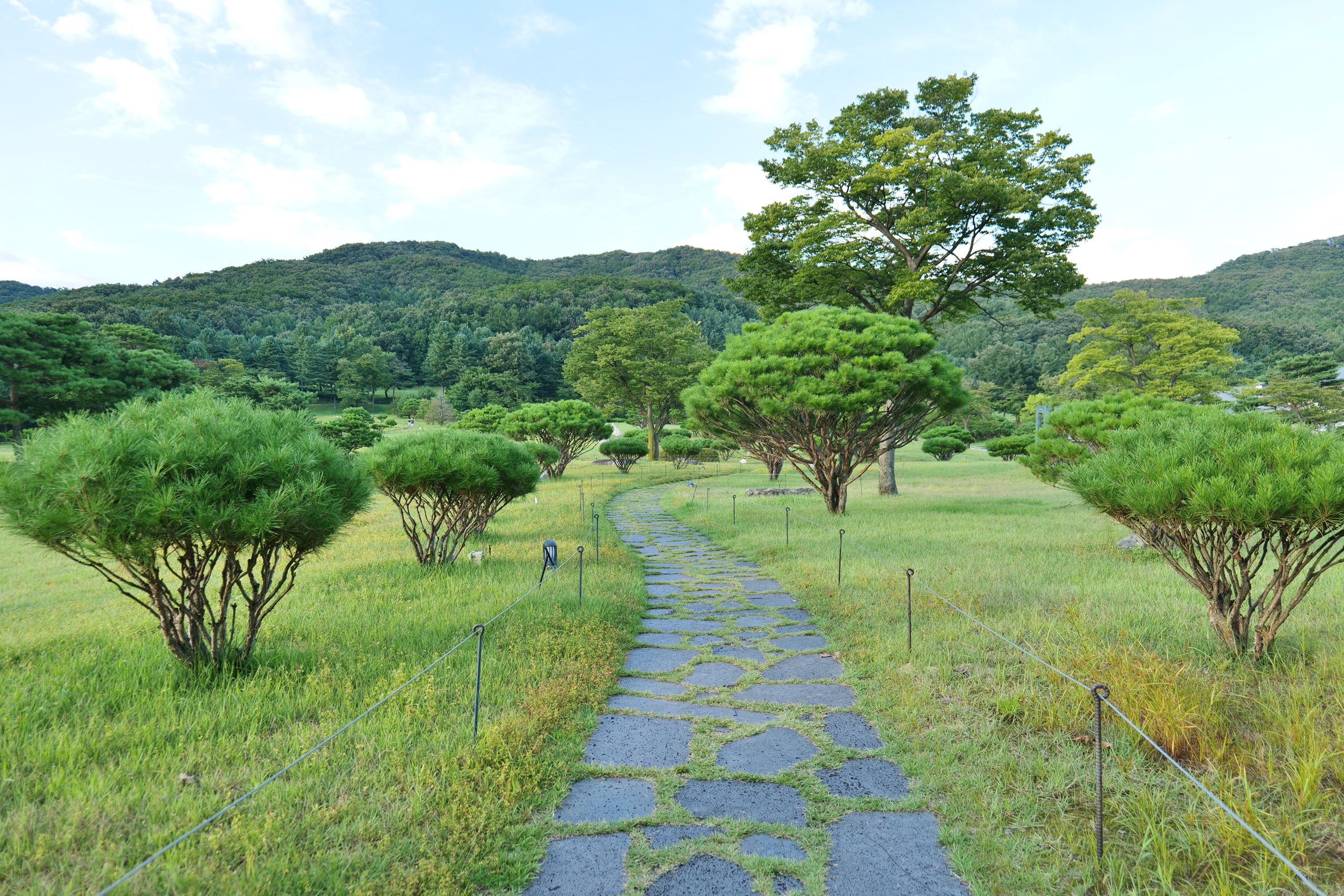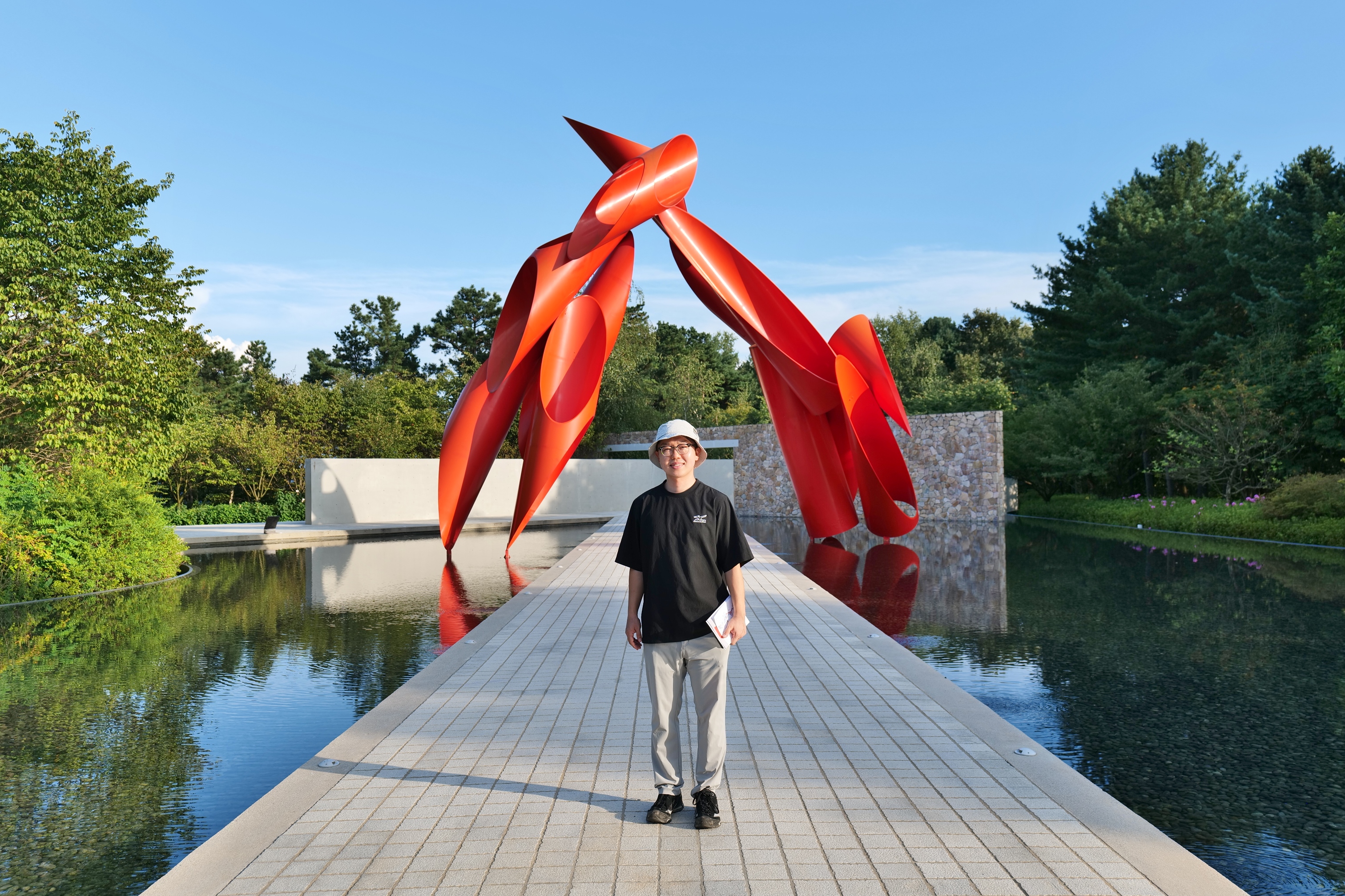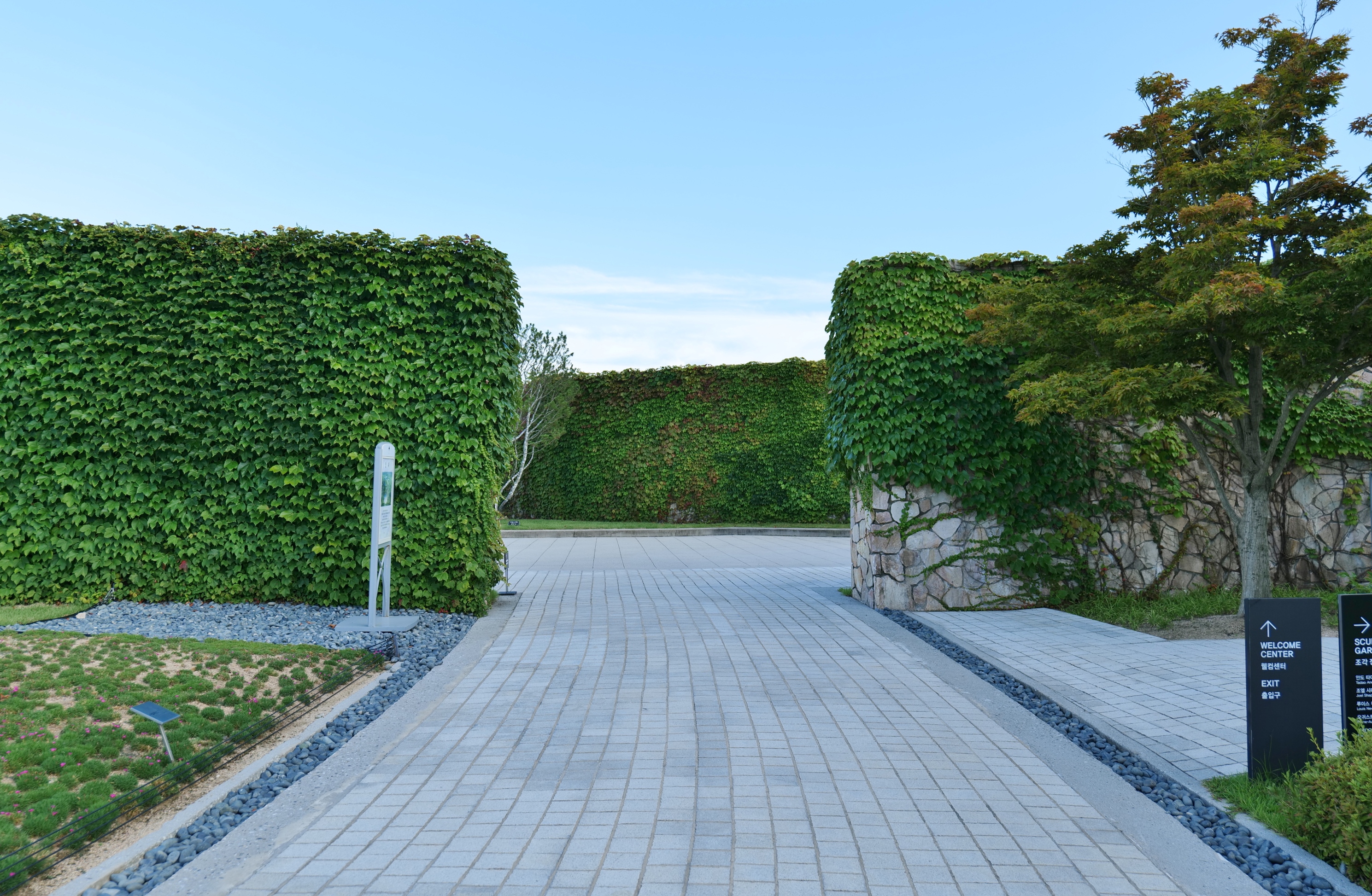 약간 경사진 넓은 잔디밭에 반송과 상대적으로 크기가 작은 여러 조각작품이 전시되어 있다.