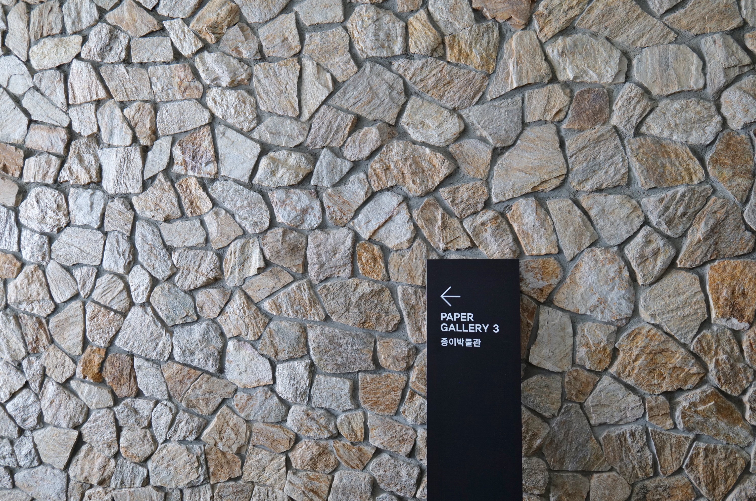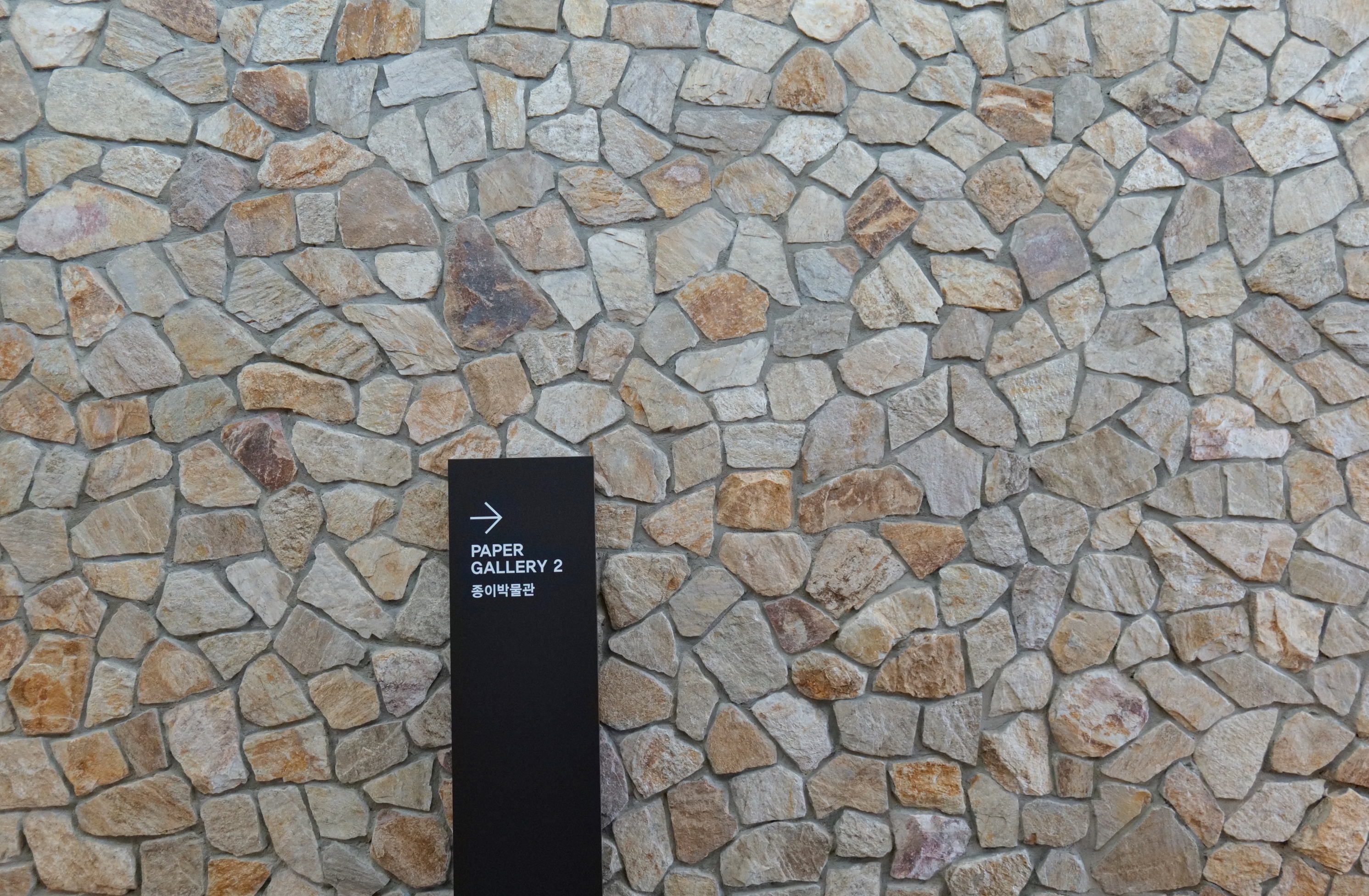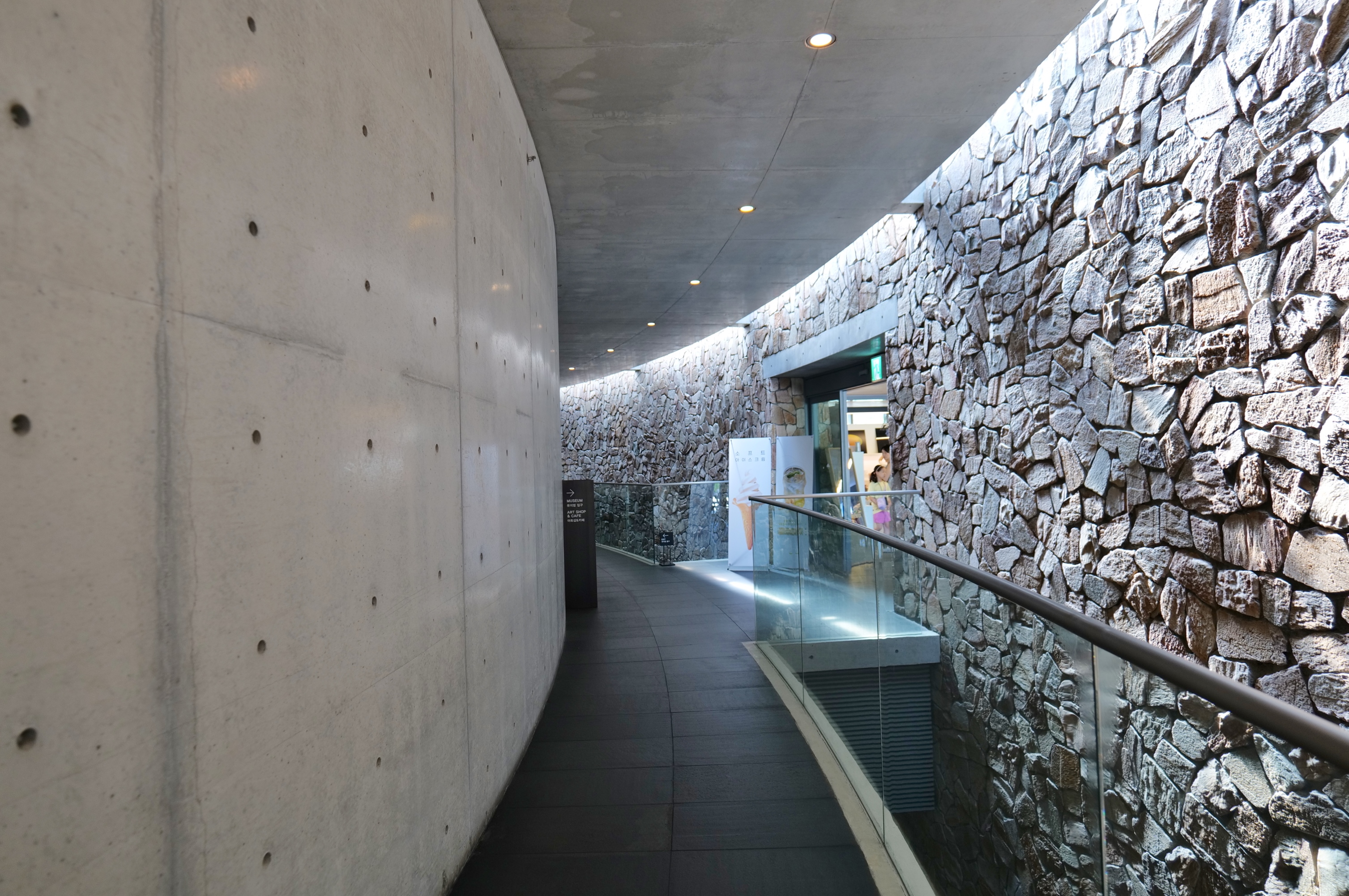 뮤지엄 본관부터는 안도 다다오 건축이 주인공이다. 건물의 외부는 파주석(파주에서 나는 돌)을 쌓아 만들었다. 안도 다다오를 아는 사람이라면 그의 특징인 노출 콘크리트를 찾으며 고개를 갸웃거릴 것이다. 파주석 건물 안으로 들어가면 그제야 노출 콘크리트 건물이 나온다. 'Box in Box ' 콘셉트로 파주석 건물안에 노출 콘크리트 건물이 있는 셈이다.