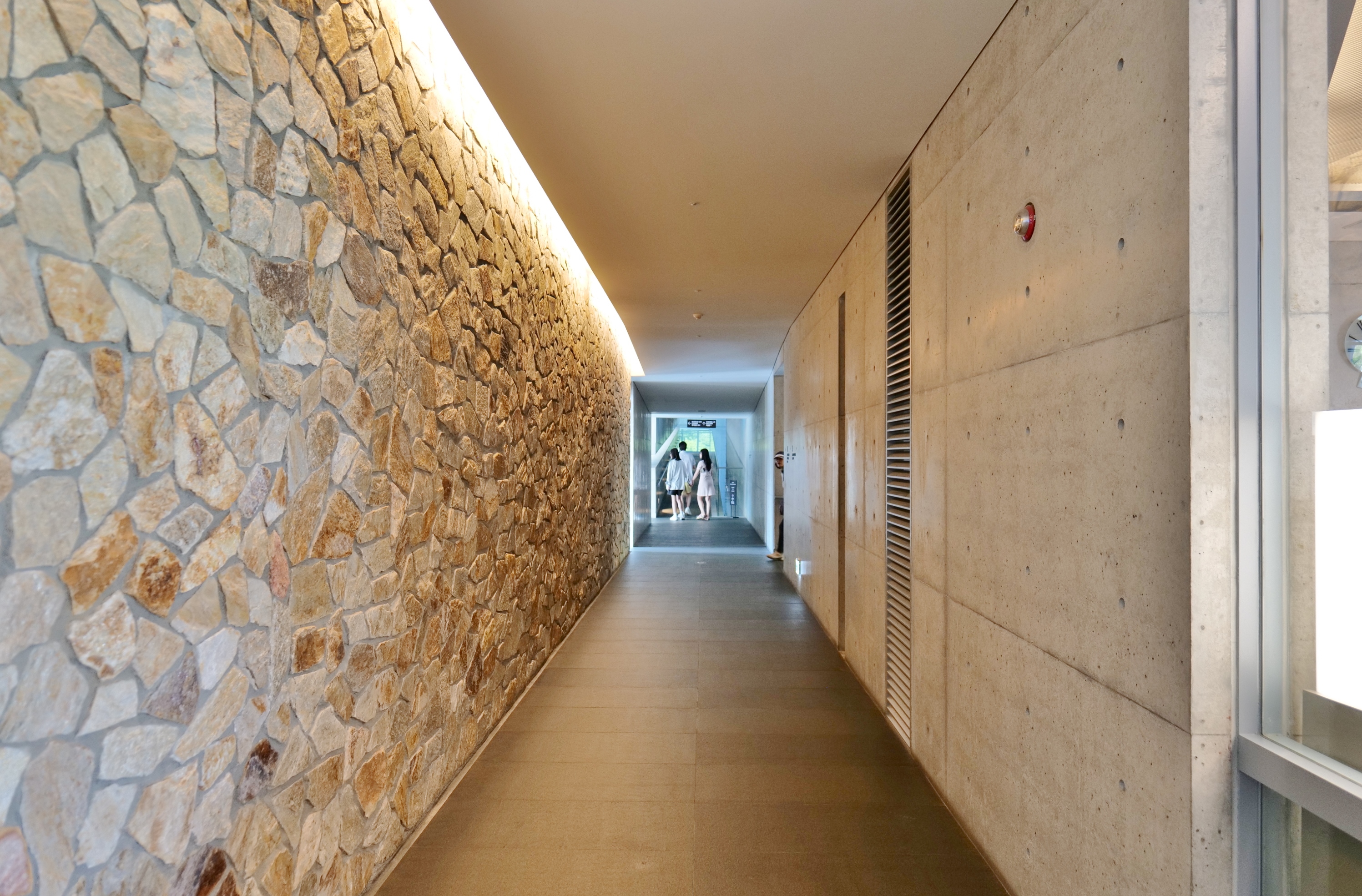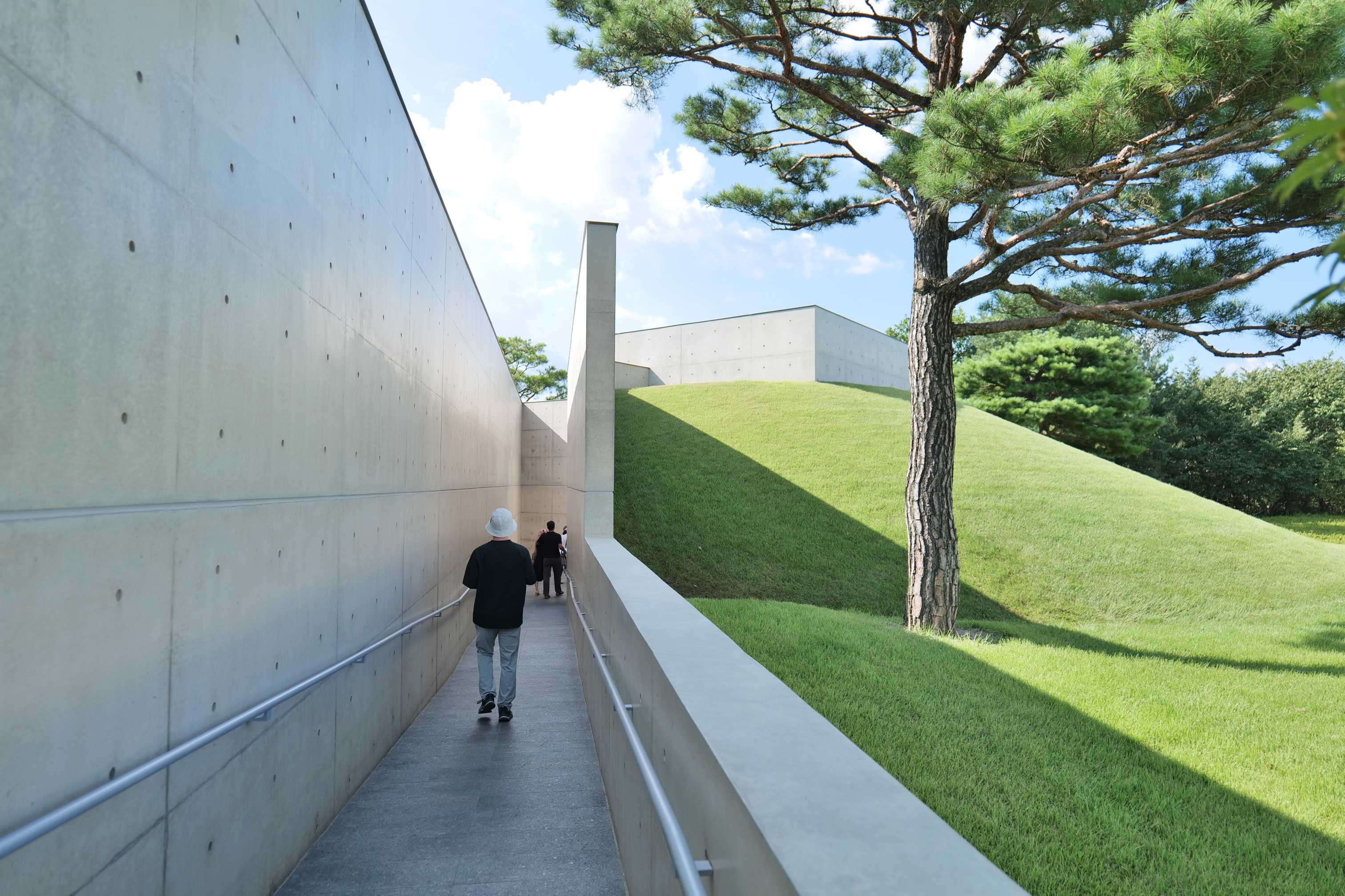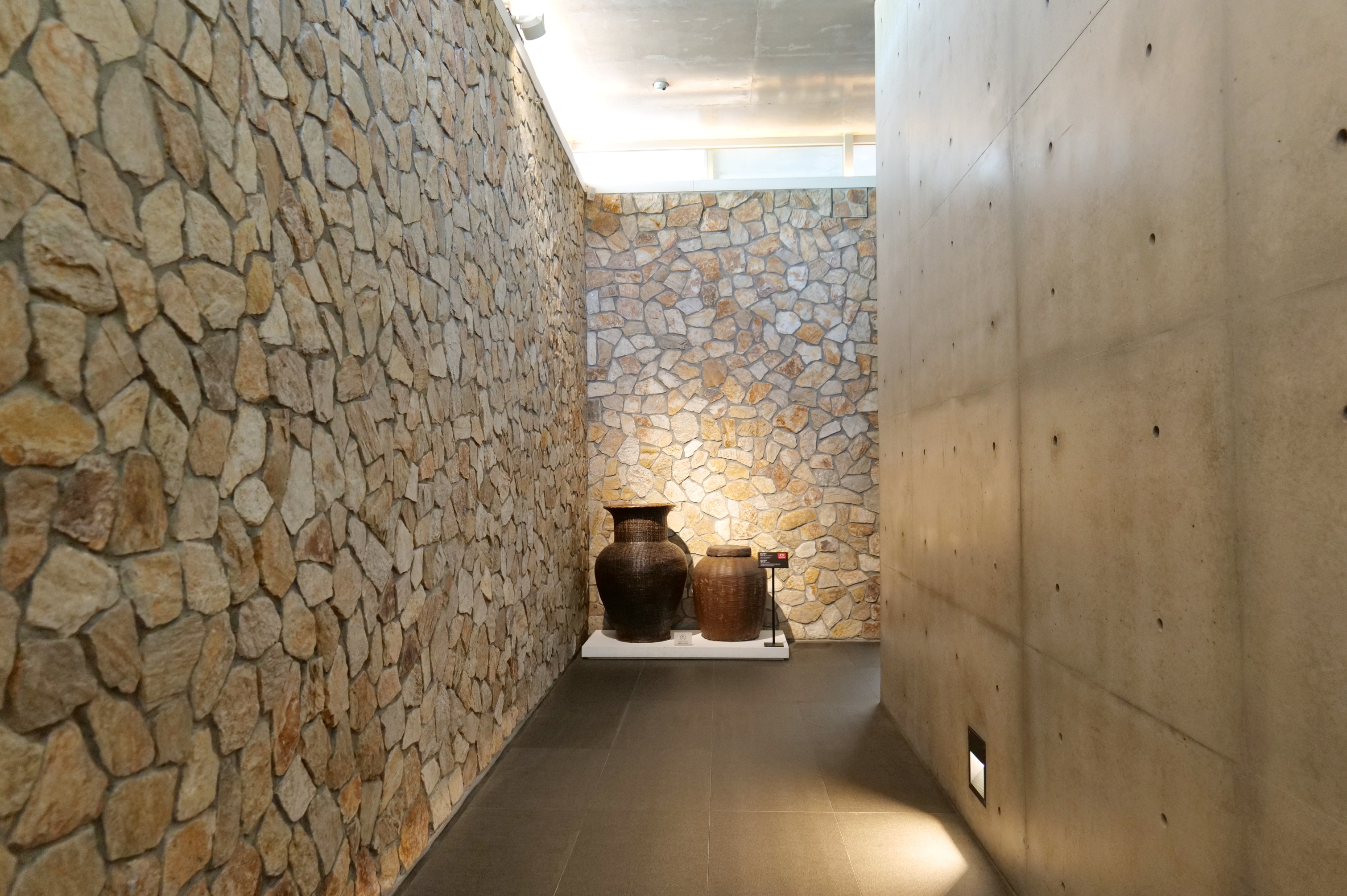 뮤지엄 본관부터는 안도 다다오 건축이 주인공이다. 건물의 외부는 파주석(파주에서 나는 돌)을 쌓아 만들었다. 안도 다다오를 아는 사람이라면 그의 특징인 노출 콘크리트를 찾으며 고개를 갸웃거릴 것이다. 파주석 건물 안으로 들어가면 그제야 노출 콘크리트 건물이 나온다. 'Box in Box ' 콘셉트로 파주석 건물안에 노출 콘크리트 건물이 있는 셈이다.