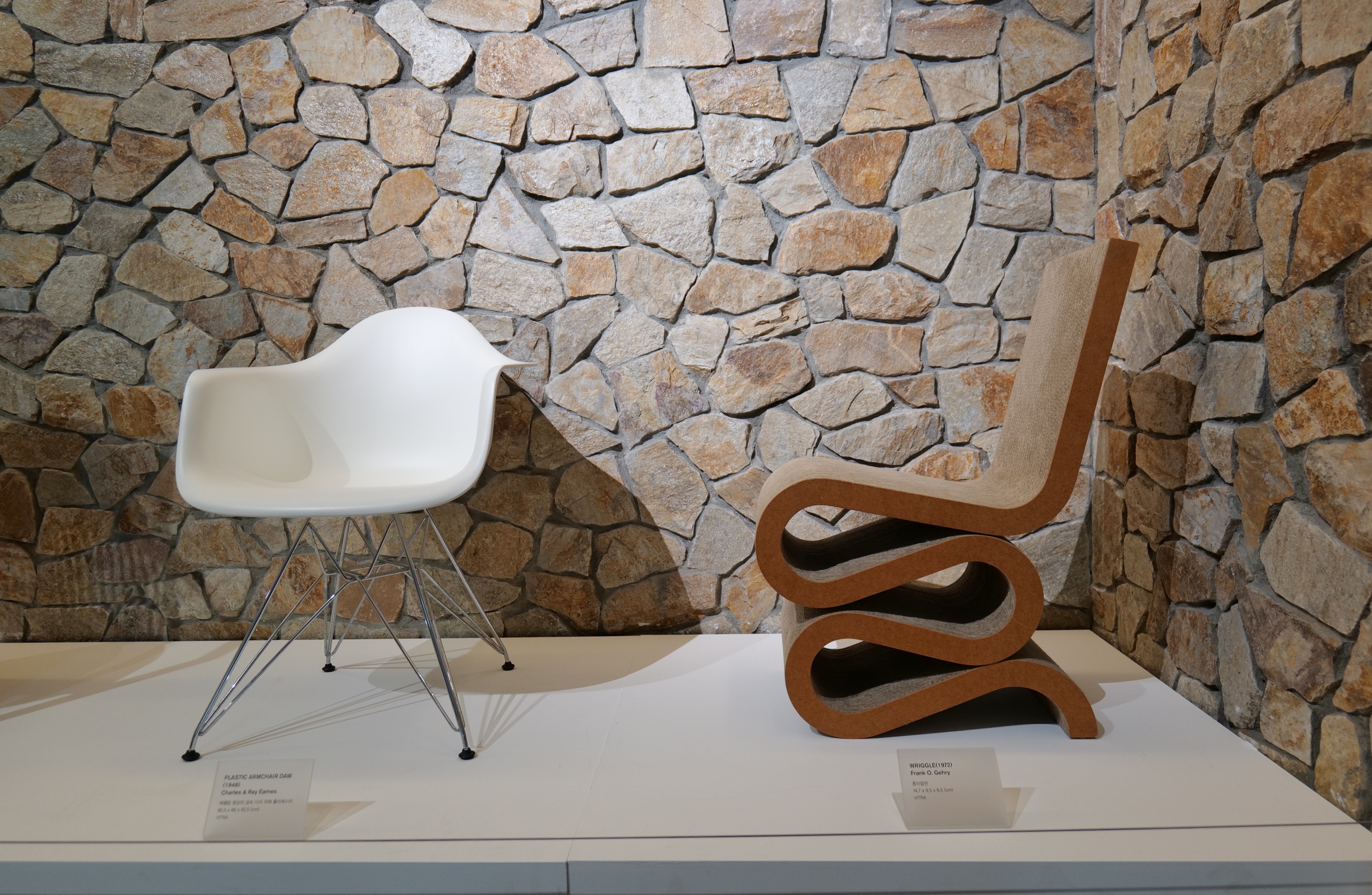 찰스 임스부부는 당시로서는 신소재인 섬유유리 연구를 통해 금형으로 사출성형되어 대량 생산이 가능한 의자를 디자인했다. 프랭크 게리는 골판지라는 실험적 재료를 압축성형하여 종이임에도 견고함과 내구성을 가진 의자를 디자인했다. 이는 지금까지도 종이의 한계를 뛰어넘었다는 평가를 받고있다.