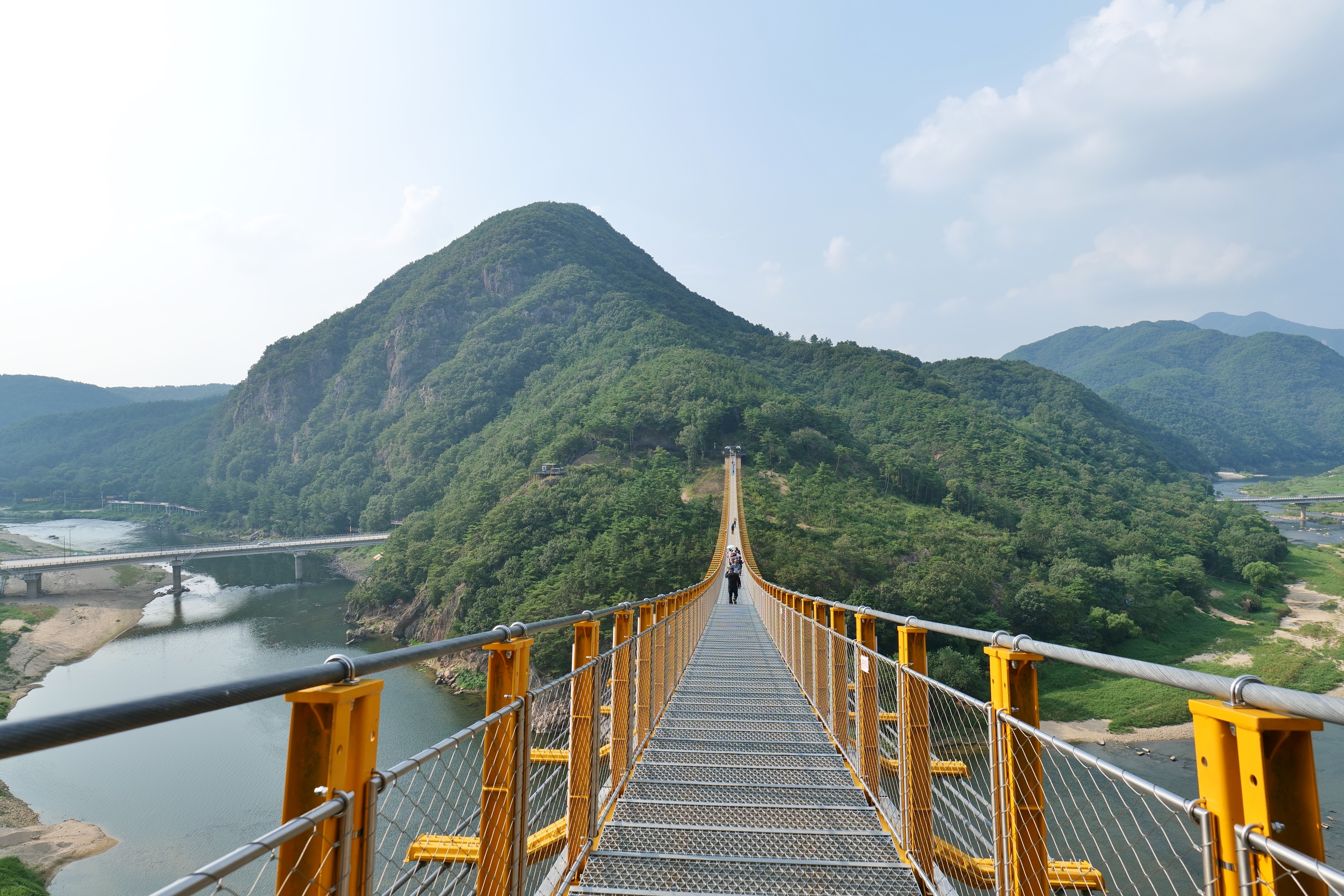 출렁다리를 건너 보이는 천북교를 거쳐 되돌아 올 것이다.