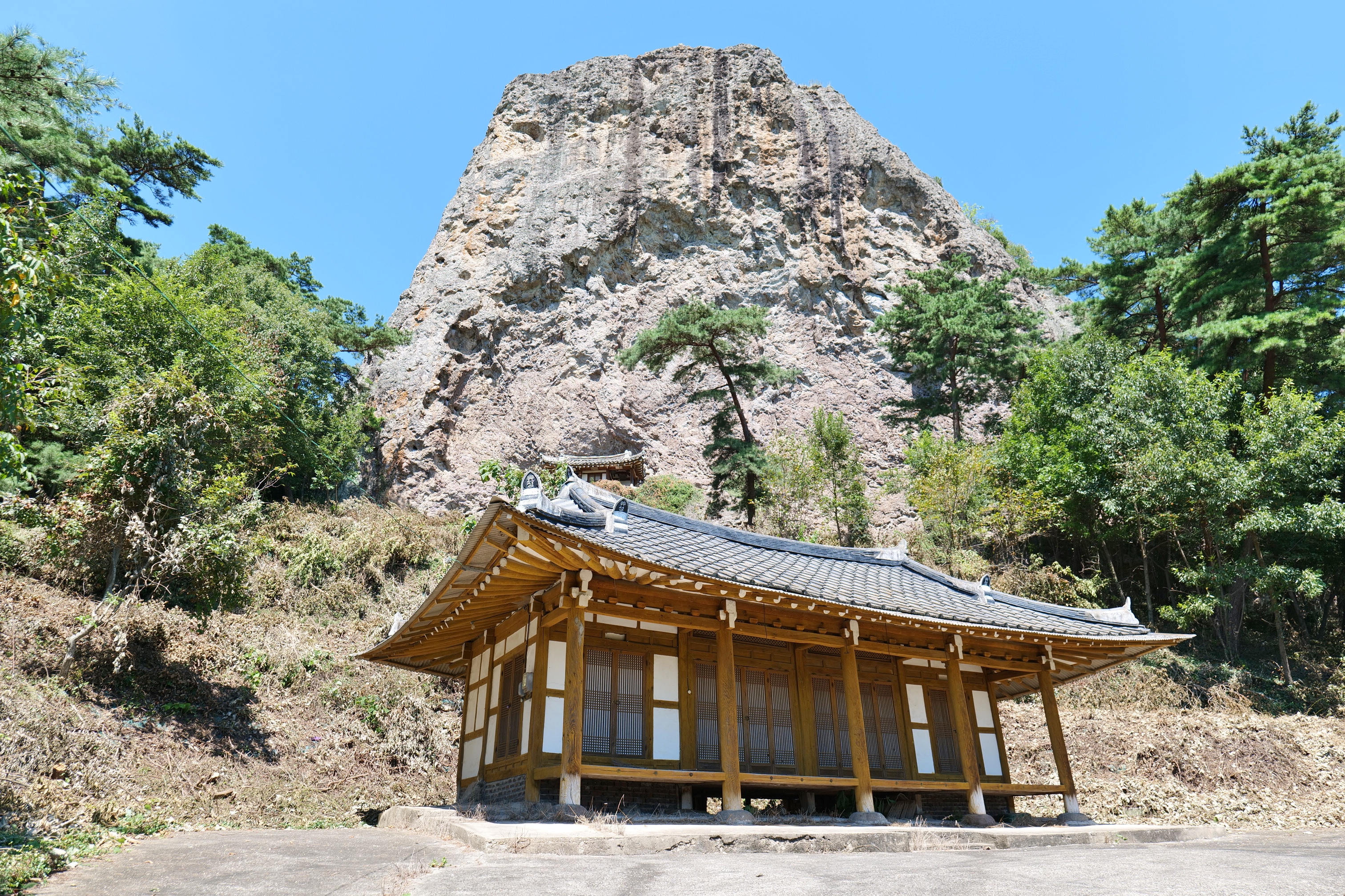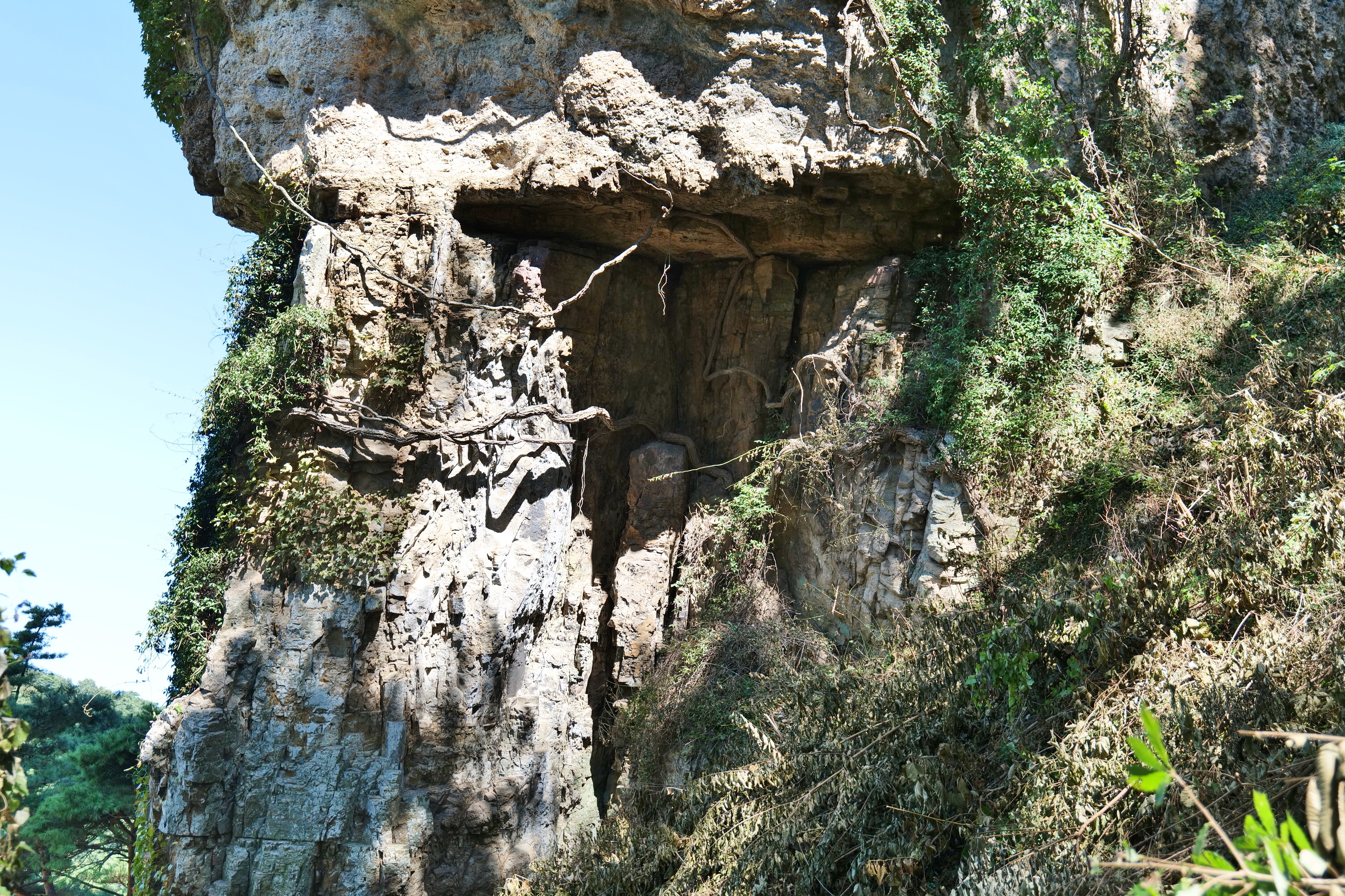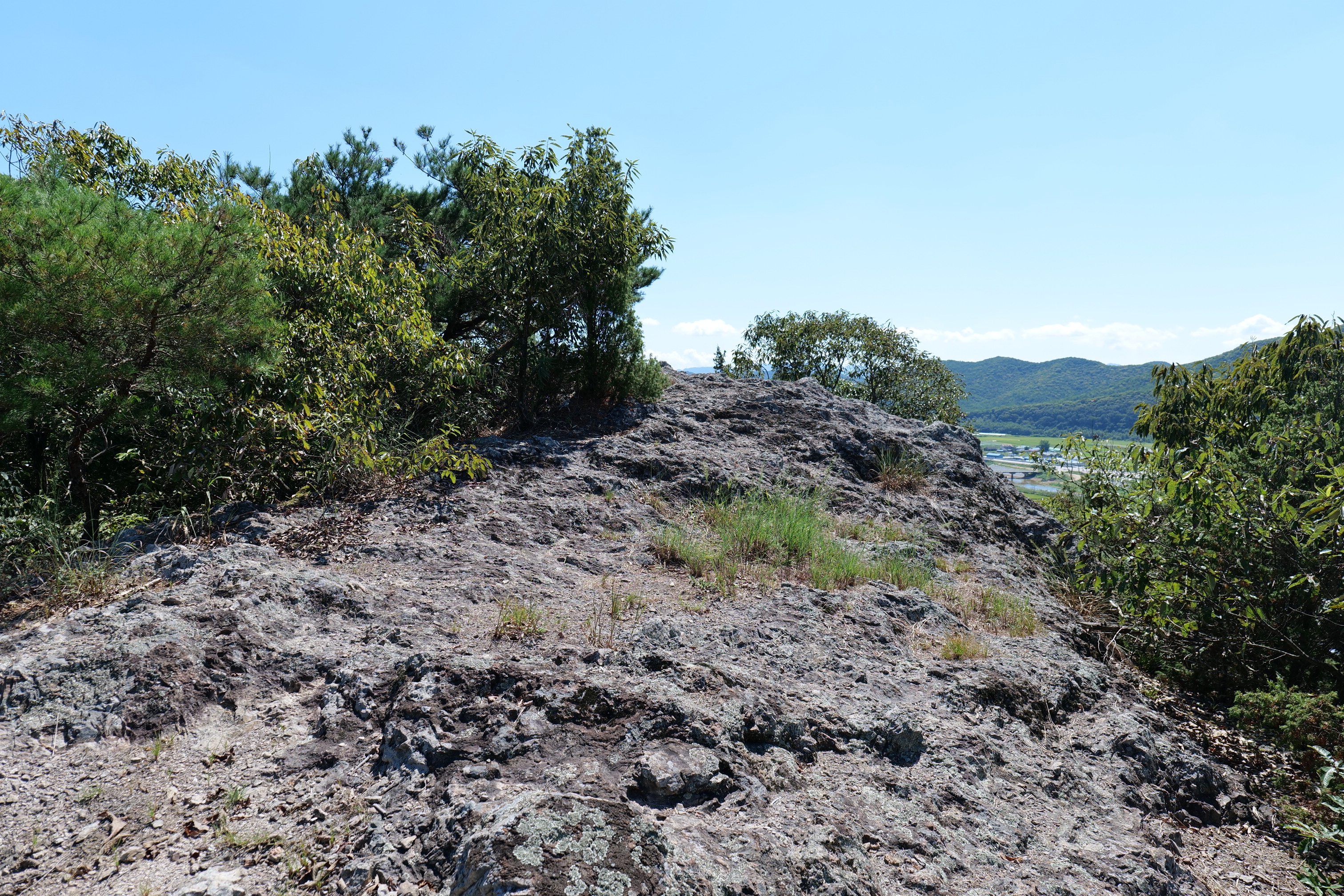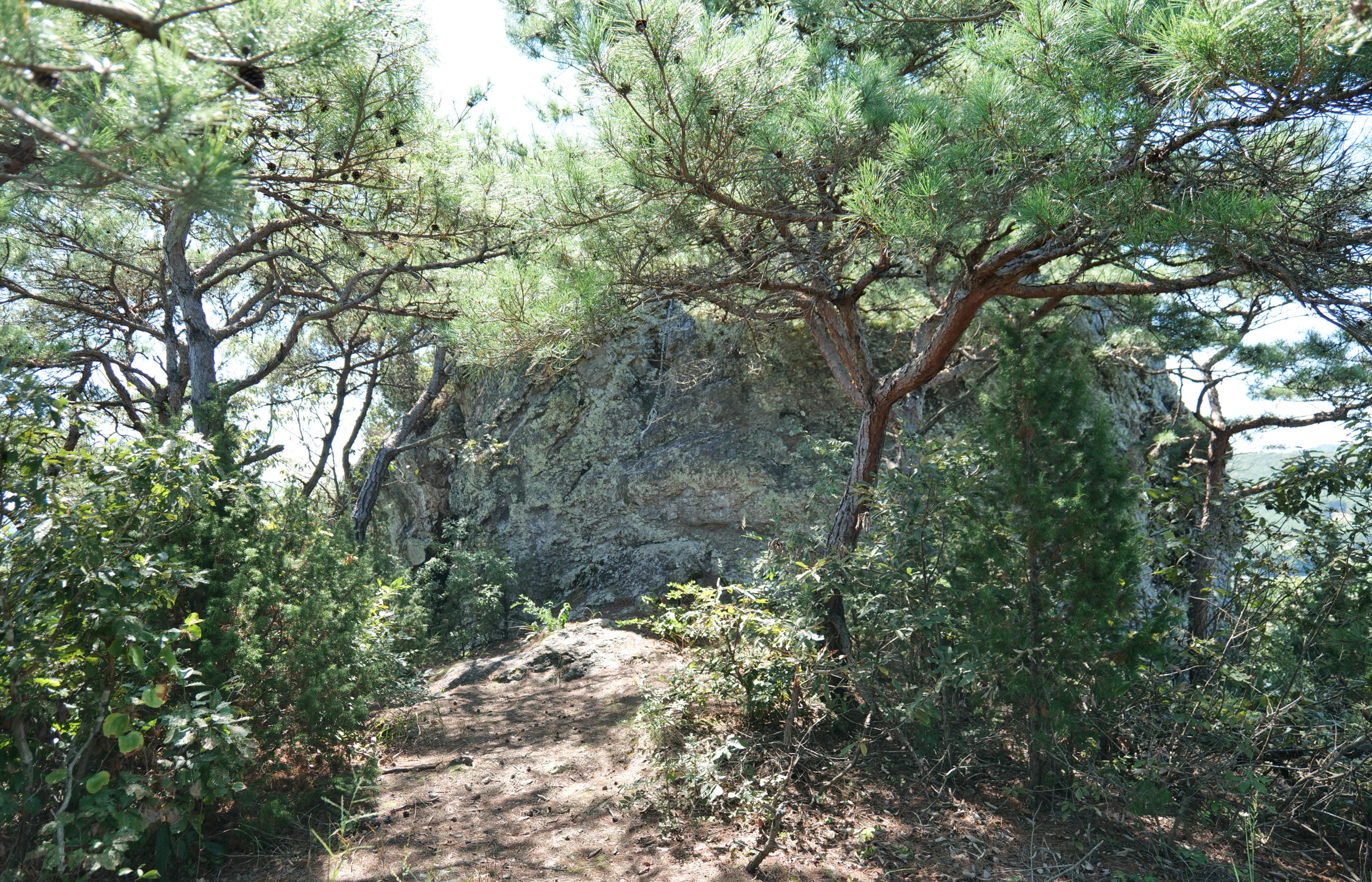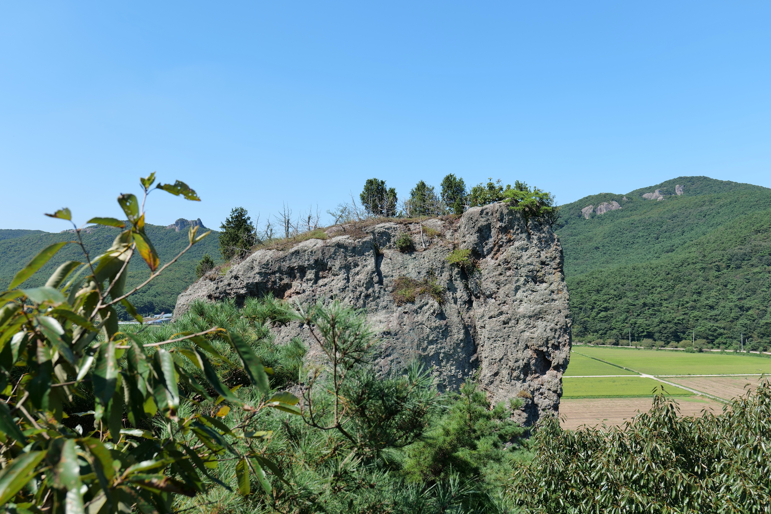 전좌바위는 거대함 바위덩어리이지만 상부에는 초목이 자라고 있다.