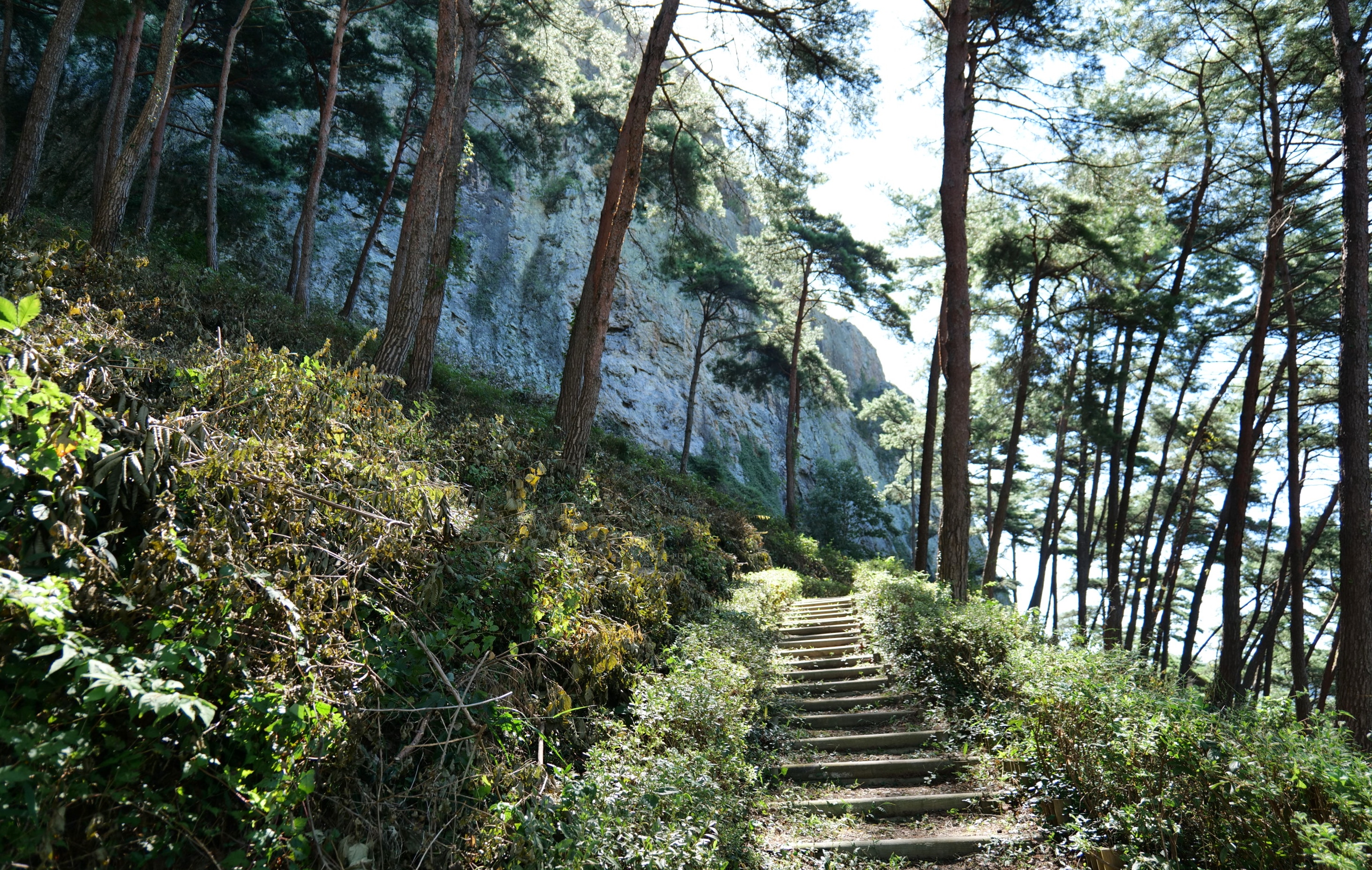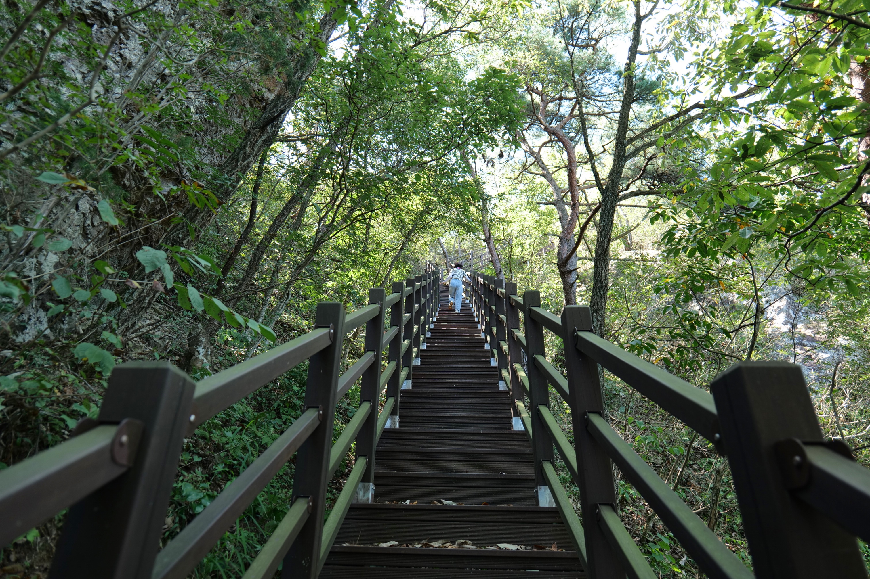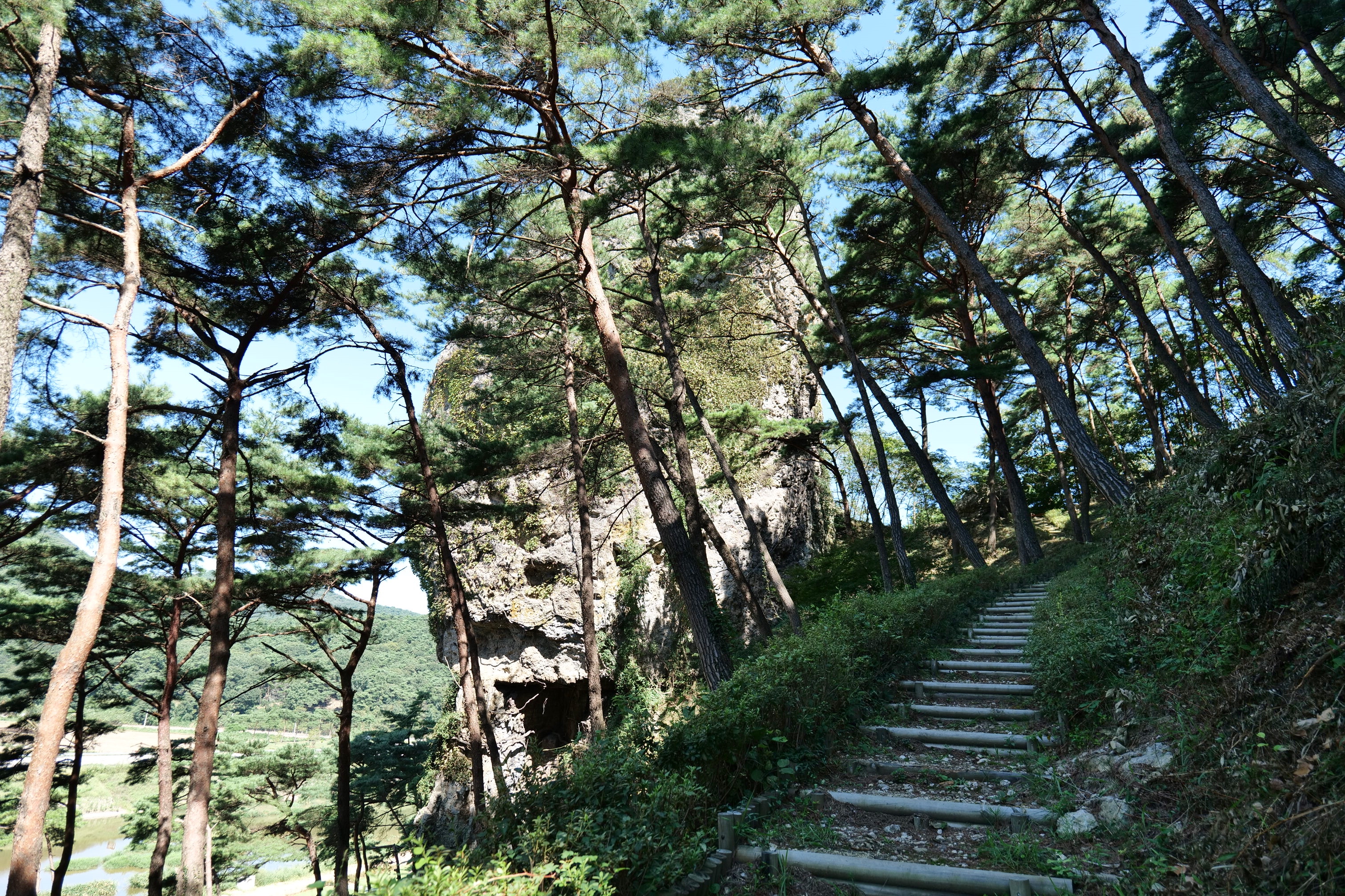 쉬엄쉬엄 계단길을 오르면 옥단바위? 상부에 오르게 된다.