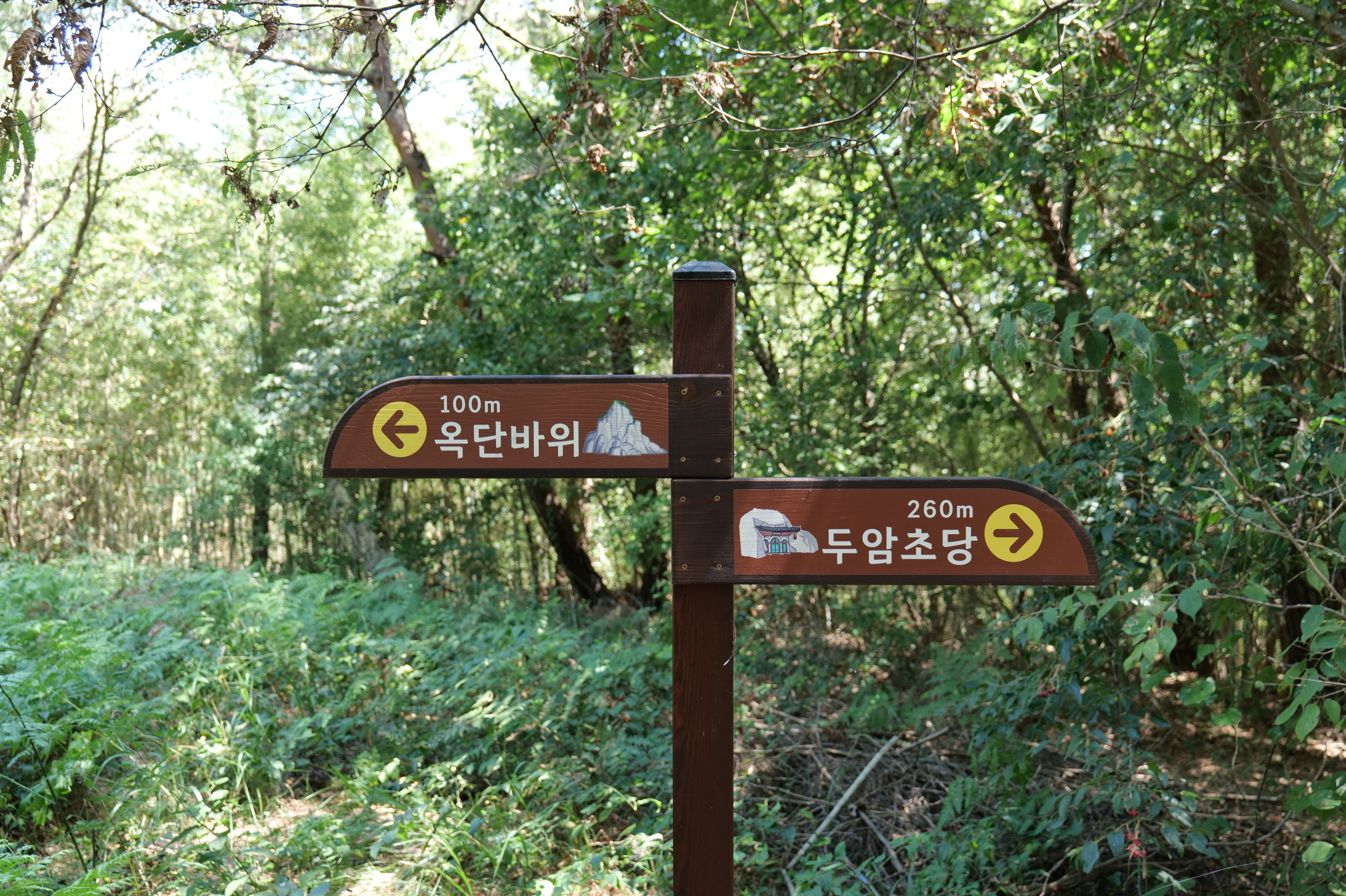 아곳 안부에서 두암초당으로 바로 내려가는 지름길이 있지만 지나온 능선으로 되돌아 올라 제대로 된 탐방로를 따른다.