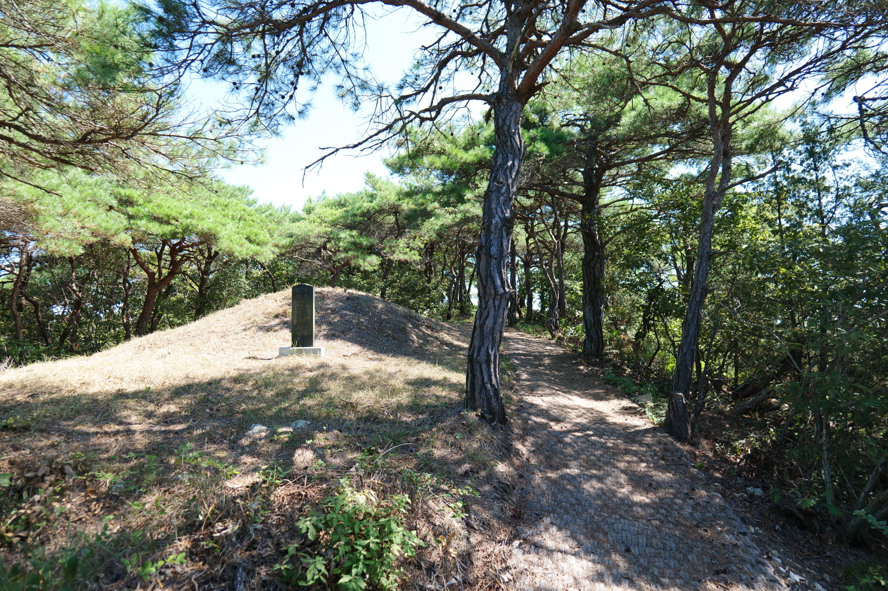 옥단바위 이정표 뒷편에 묘지가 있다,
