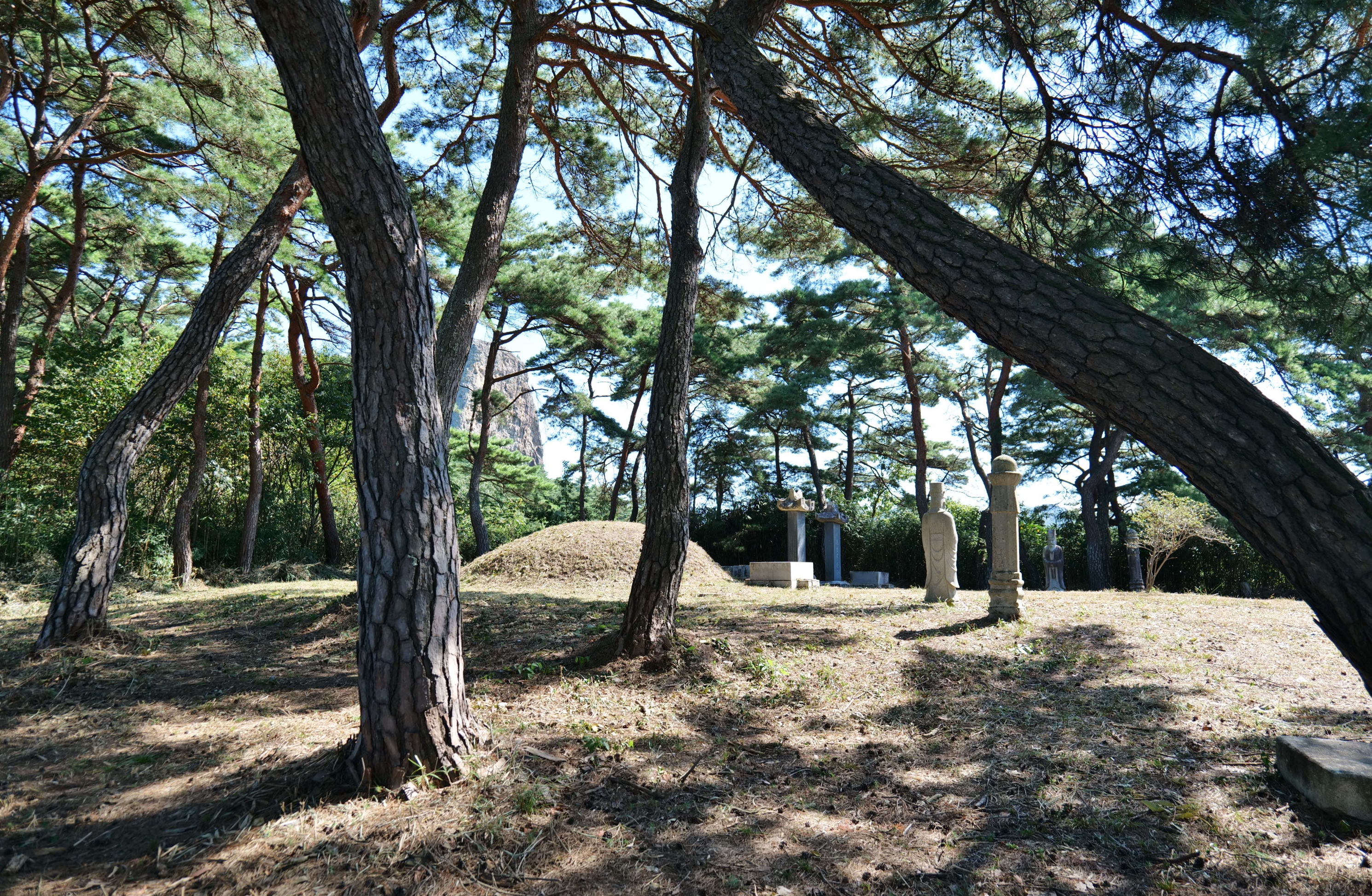 묘지 앞쪽에 병바위를 조망할 수 있는 길이 있다.