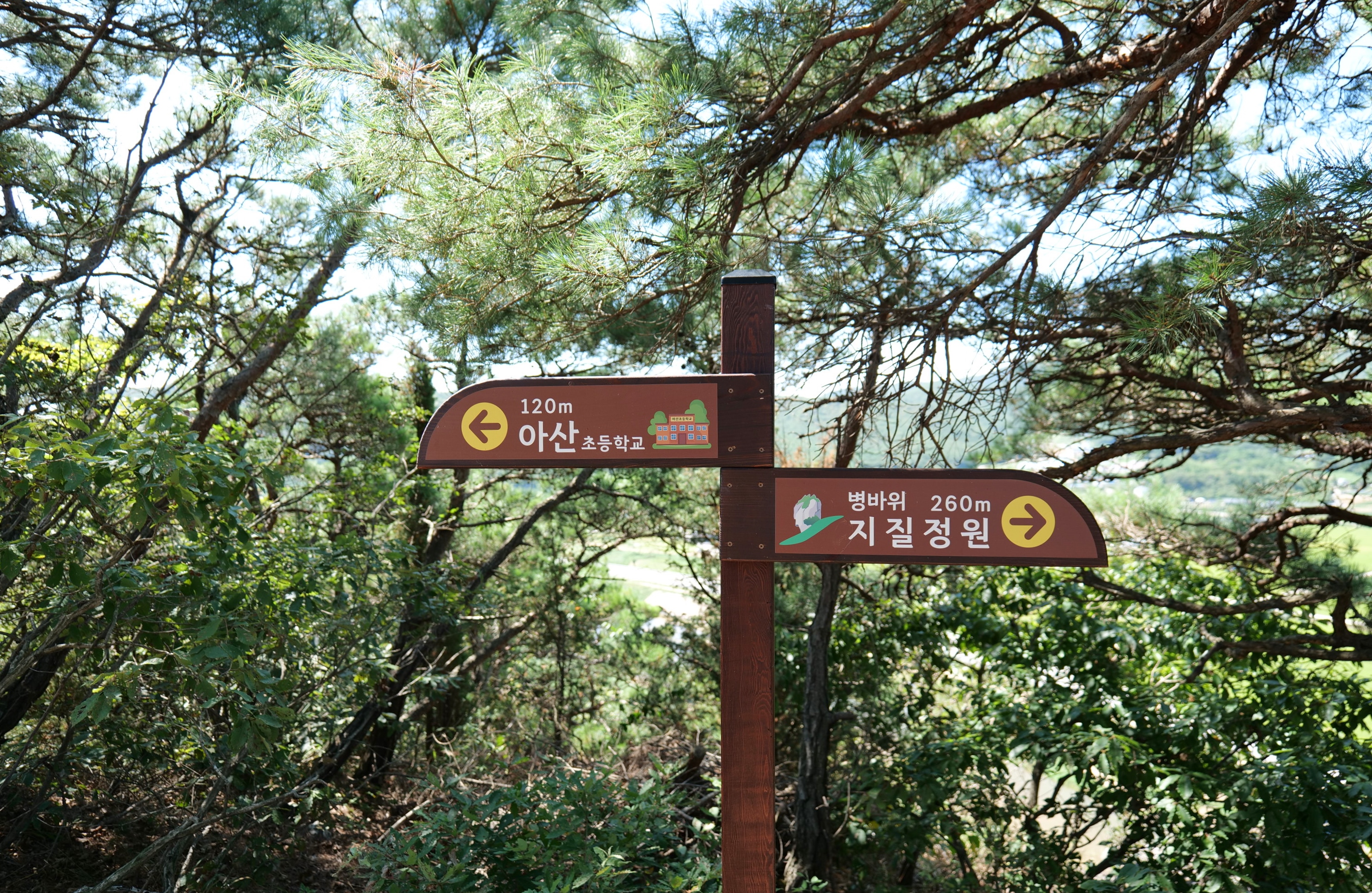아산초등학교 120m / 아마 거리가 틀린 것 같다. 전좌바위 옆으로난 지름길을 택한다고 하더라도 이보다는 좀더 될 것 같다.