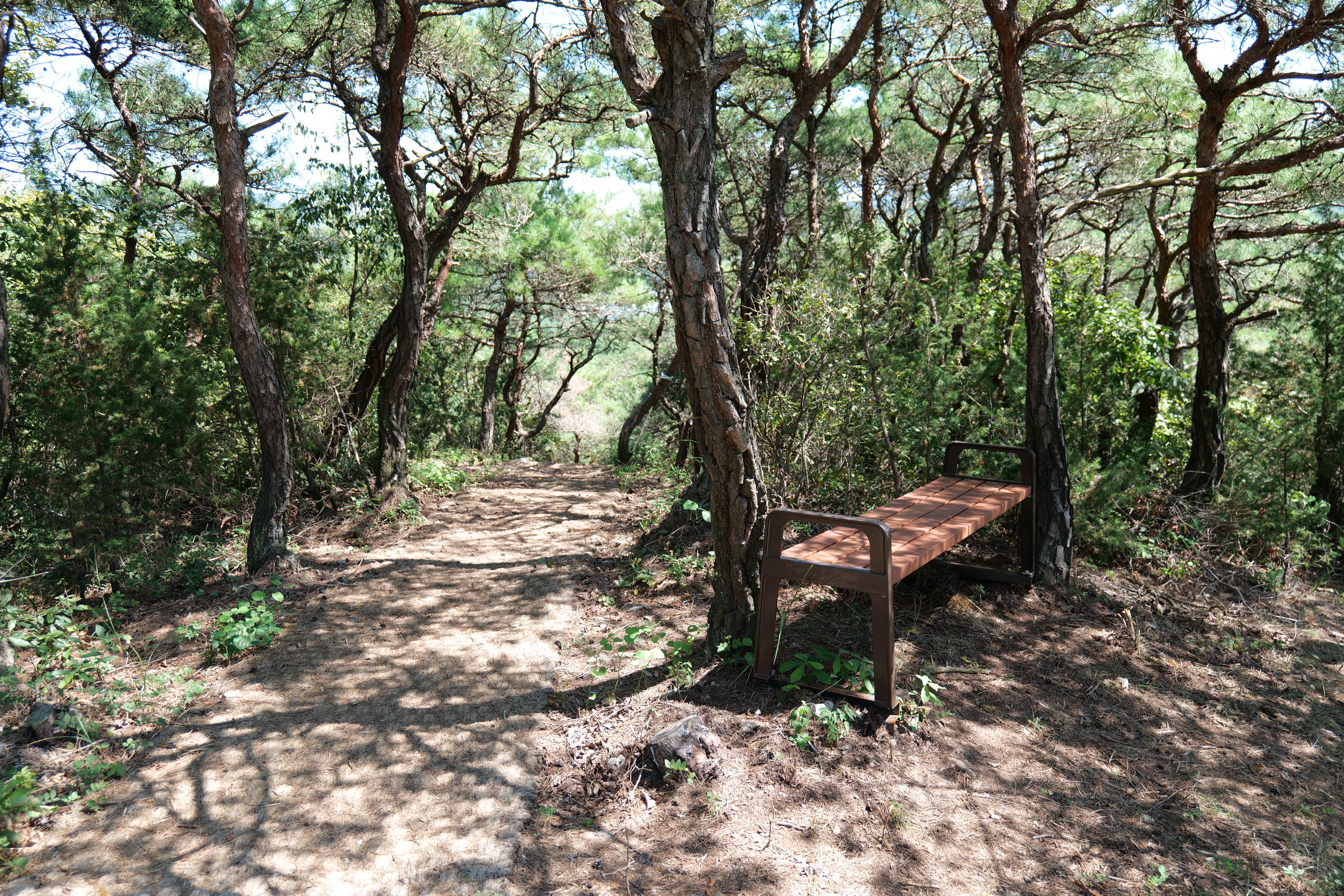 일련의 암반지대를 지나면 살짝 갈림길 같은 곳에 벤치하나가 놓여 있다.