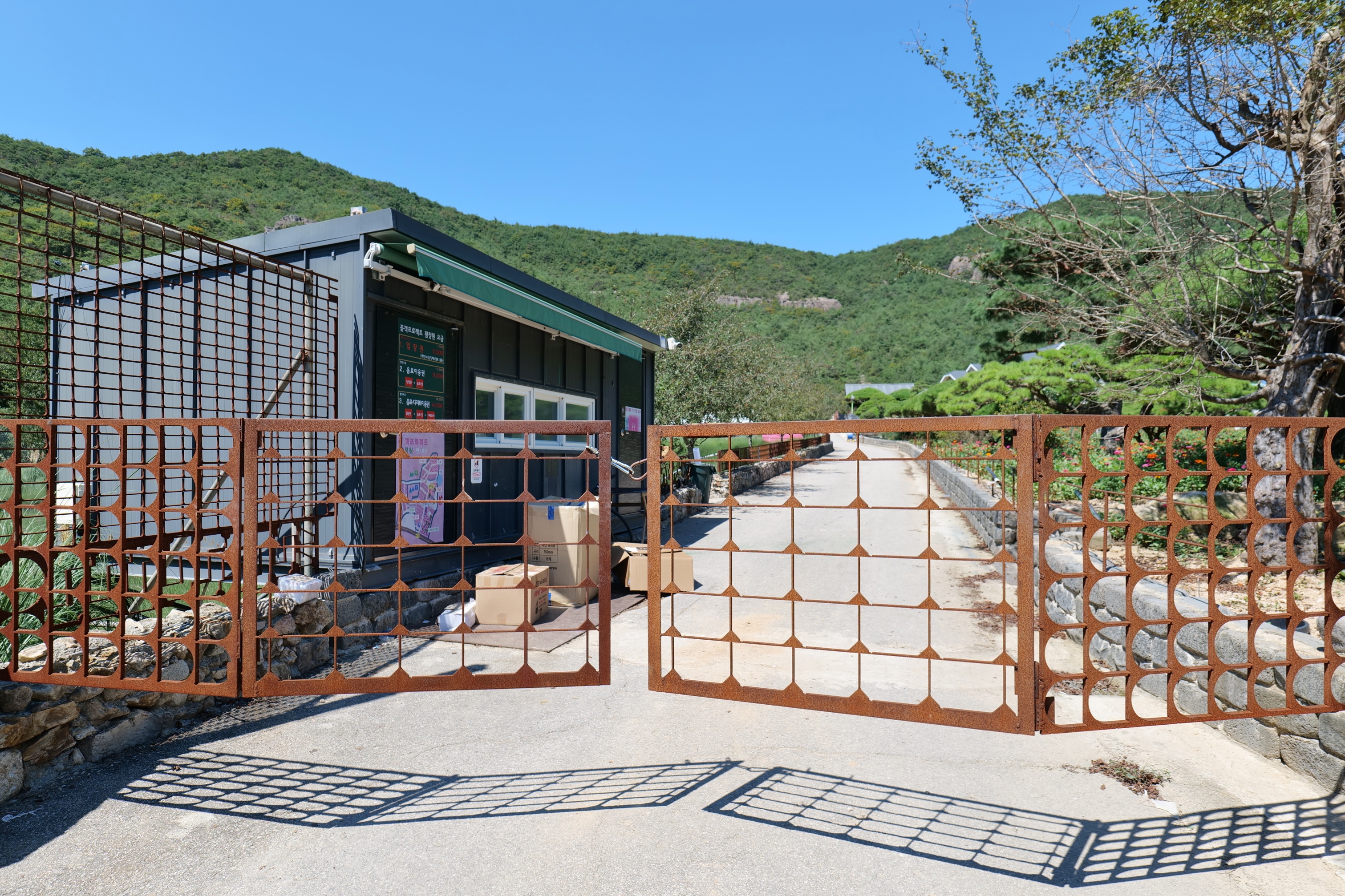 입구에 나무로 된 울을 조성하여 안으로의 진입을 막고 있다.