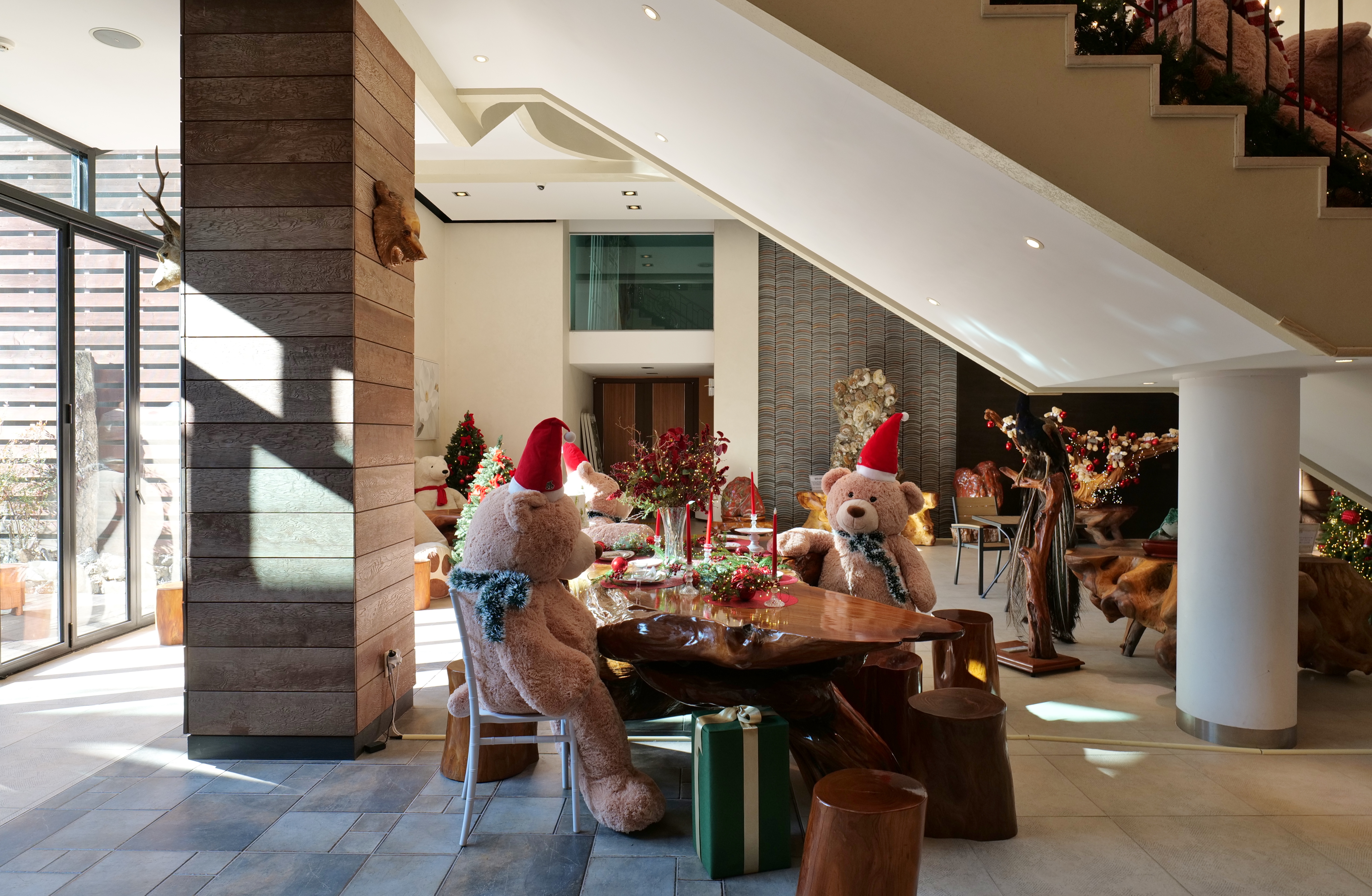 1층 로비엔 곰을 테마로 한 소품들로 장식되어 있고, 홀은 창고 내지는 비어있다.