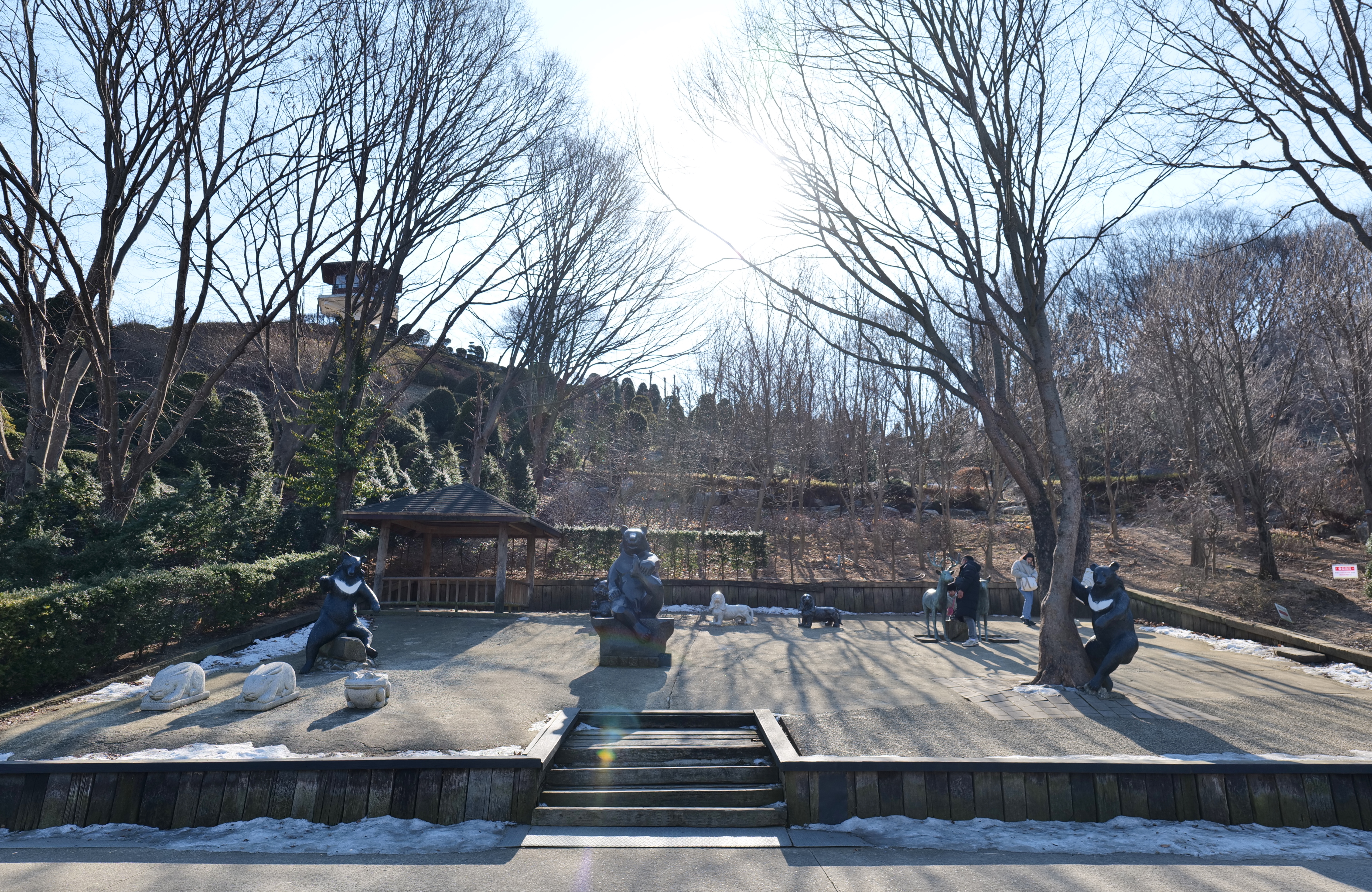 곰 사육장 윗쪽에 모형의 곰 동산을 꾸몄다.