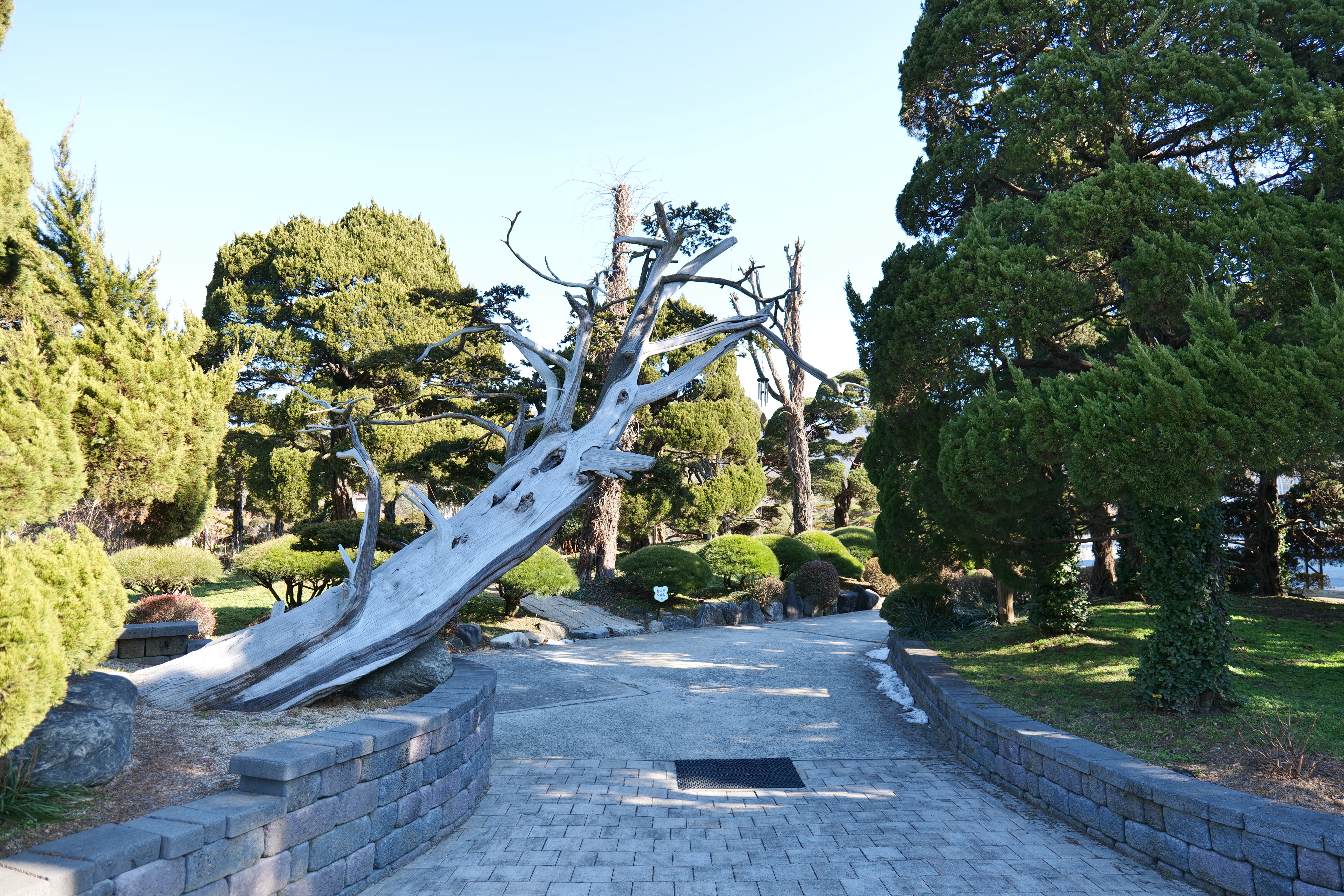 웰컴센터 내부를 둘러보고 밖으로 나오면 '신이 내린 나무'가 진열되어 있다.