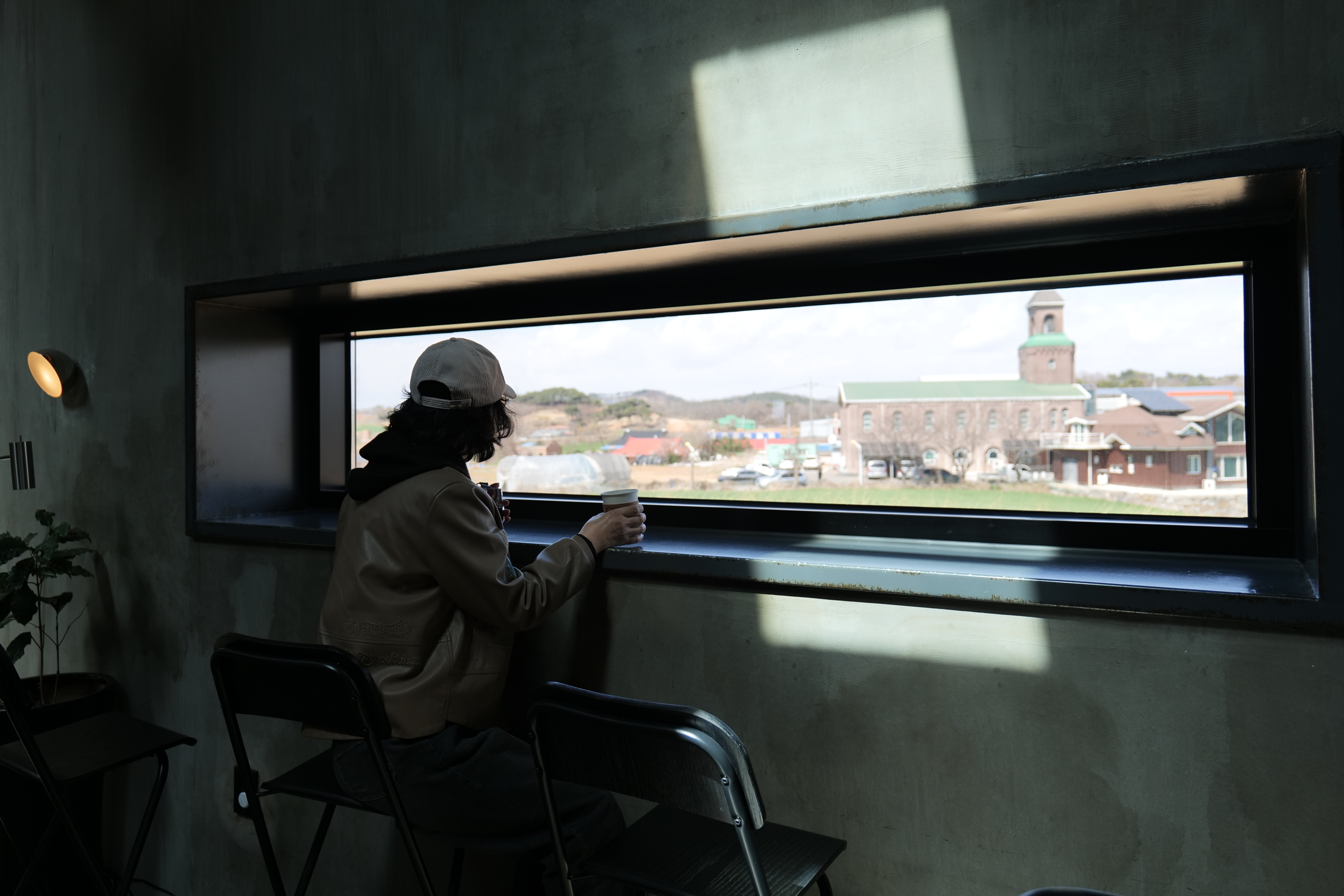 카페 입구쪽 창문을 통해 천북면소재지쪽을 봅니다.