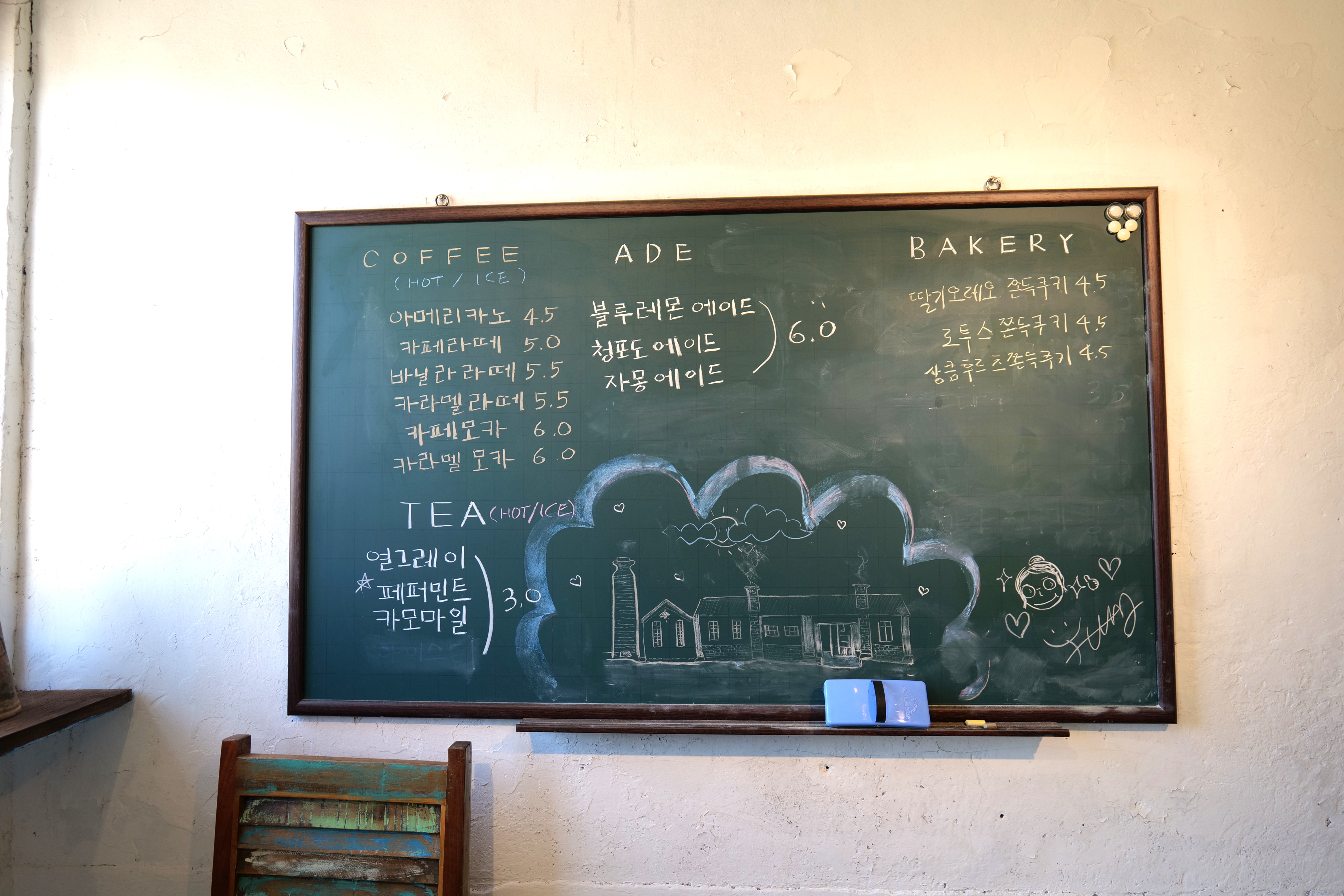 카페 입구로 들어서면 메모판으로 사용하던 칠판이 메뉴판이 되었습니다.